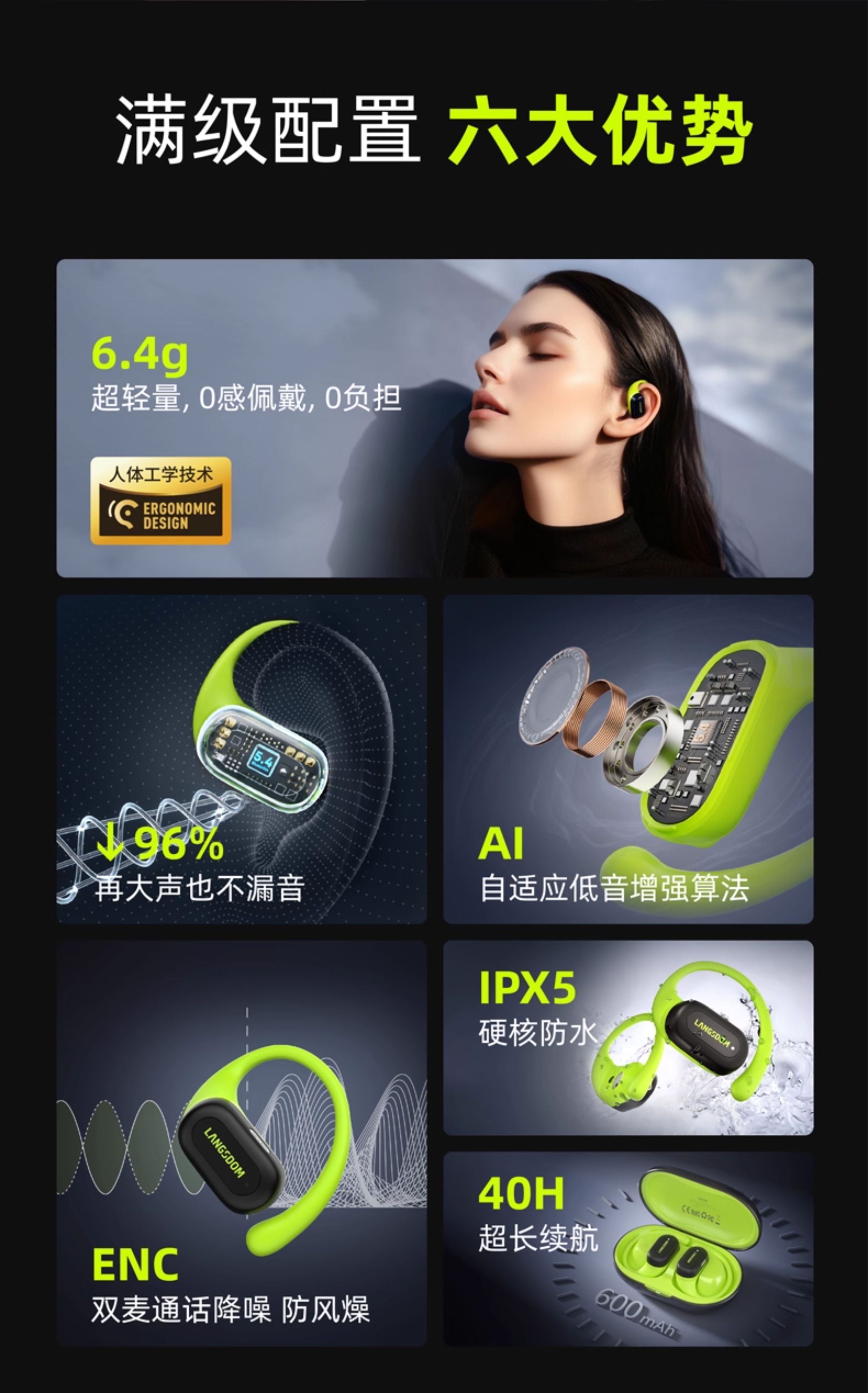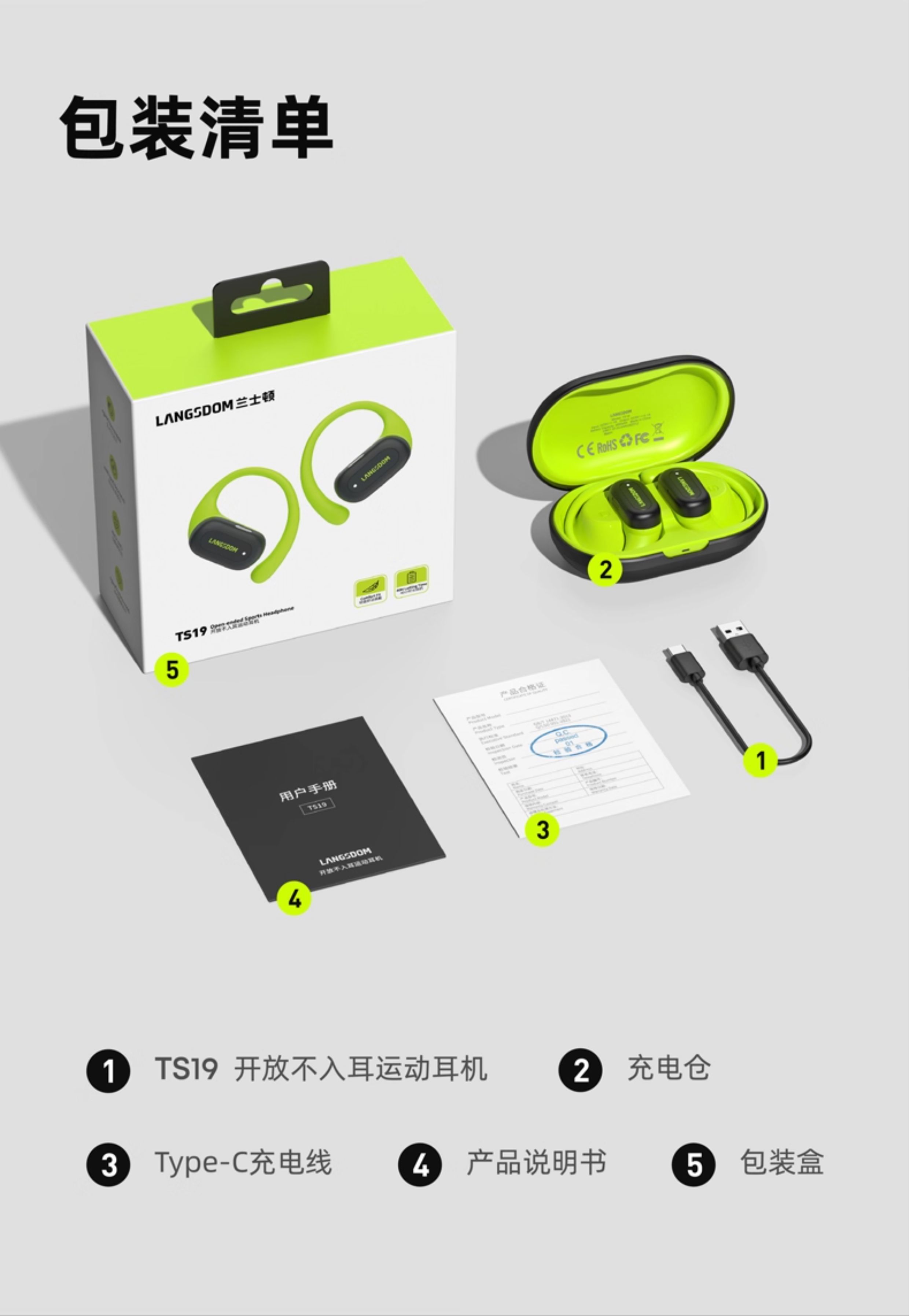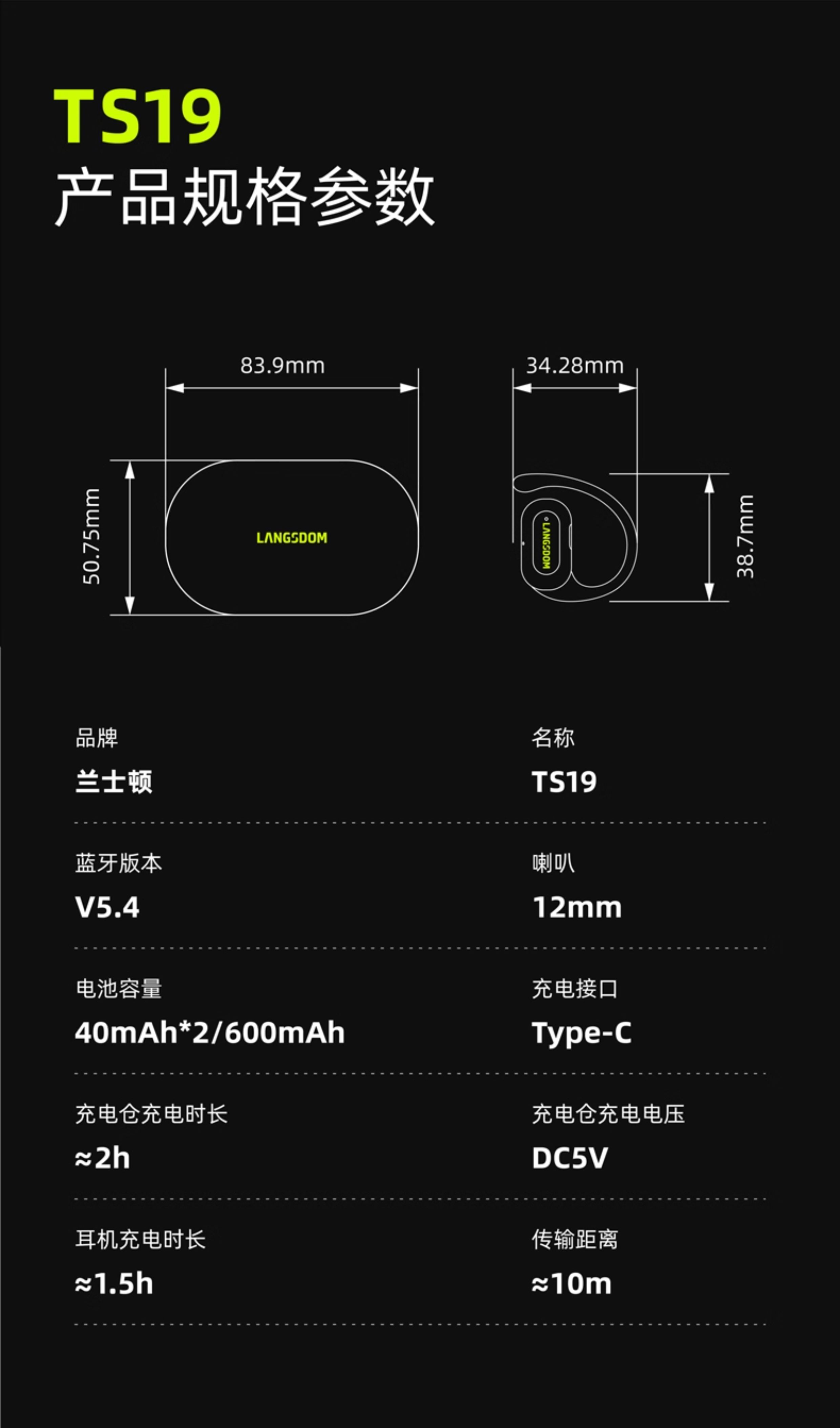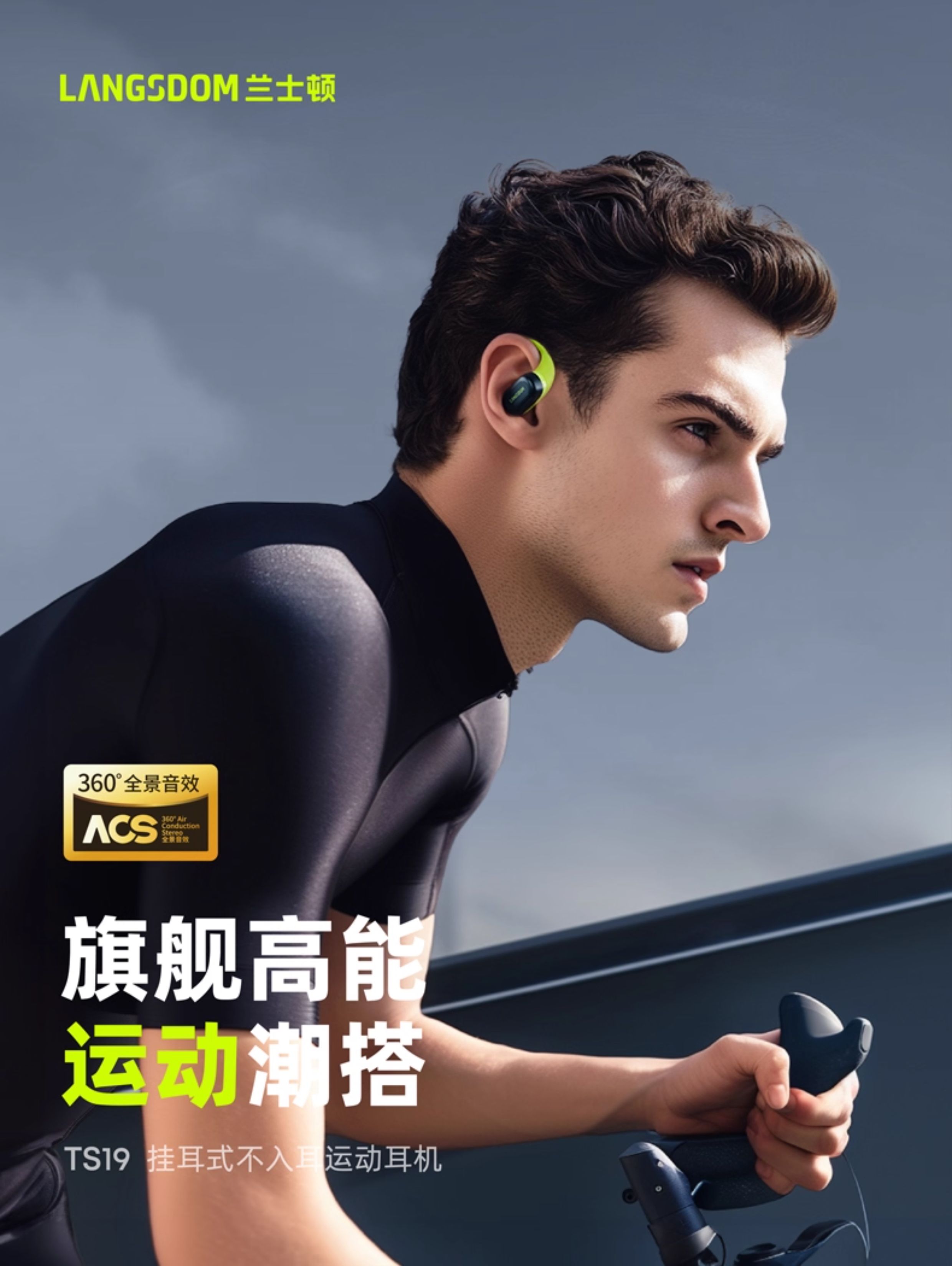 兰士顿TS19开放式运动耳机蓝牙挂耳式2025新款气骨传导无线不入耳跑步耳机