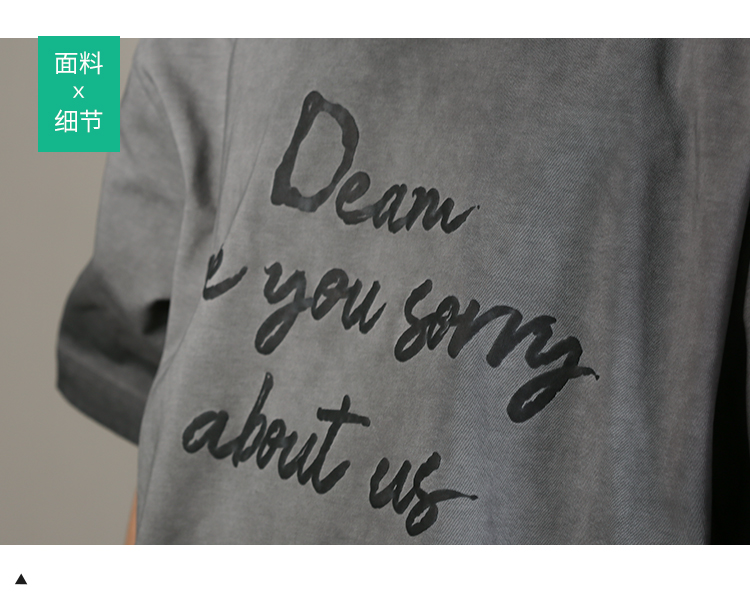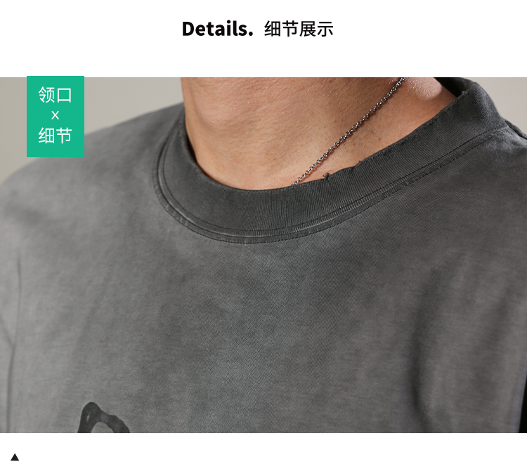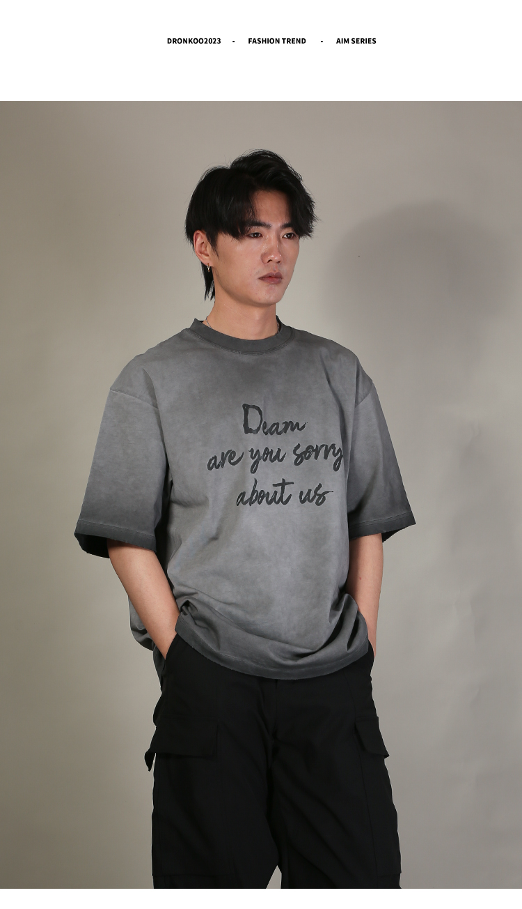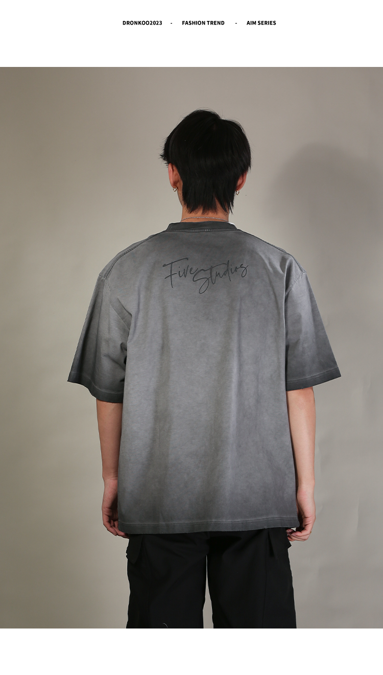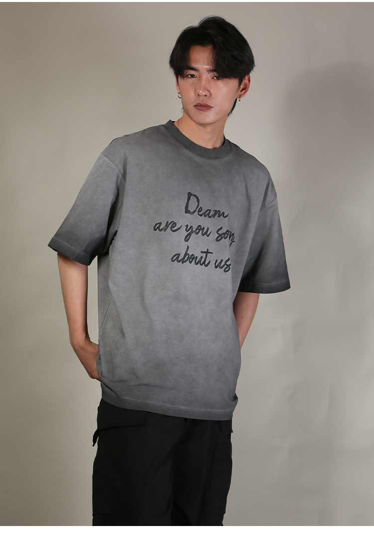 DRONKOO 2026 圆领前三排后一排字母印花做旧磨破阔短袖T恤