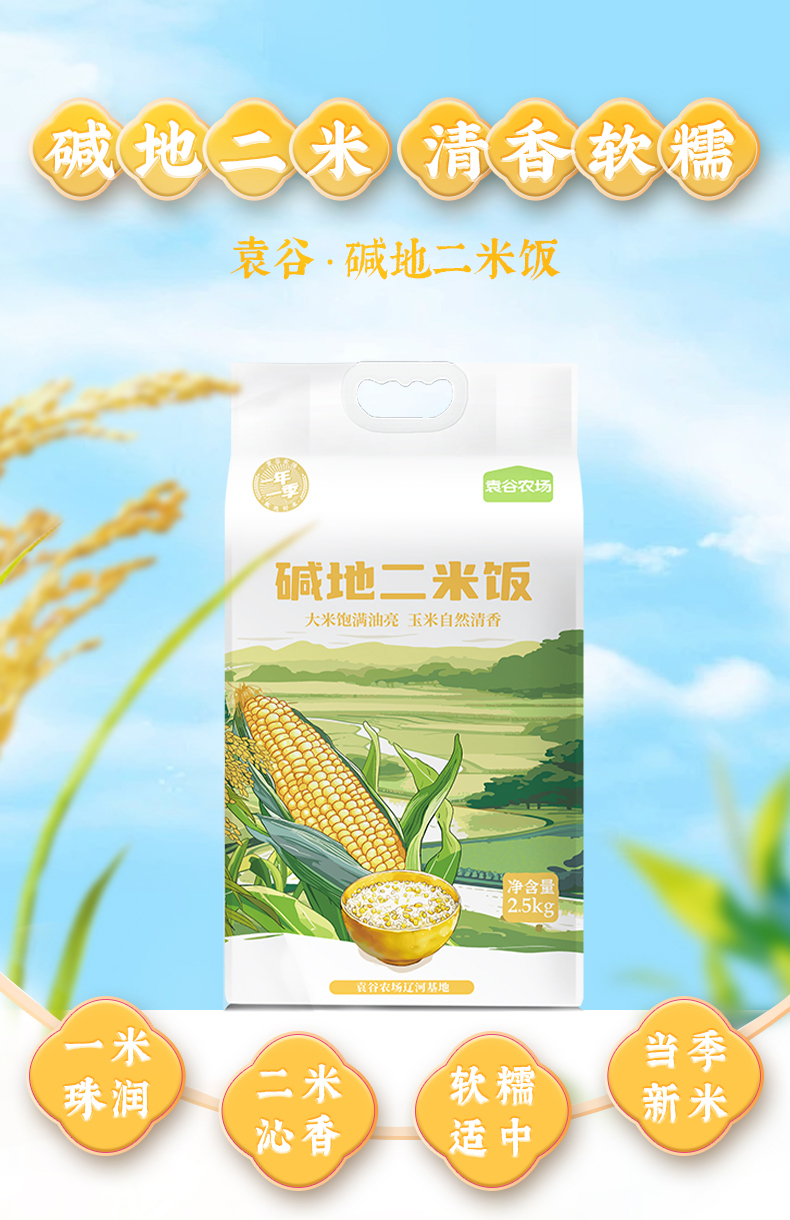 【走娃官方指定合作产品】袁谷碱地二米饭2.5kg盘锦圆粒米五常玉米糁二米饭软糯清香5斤装赠同款300g