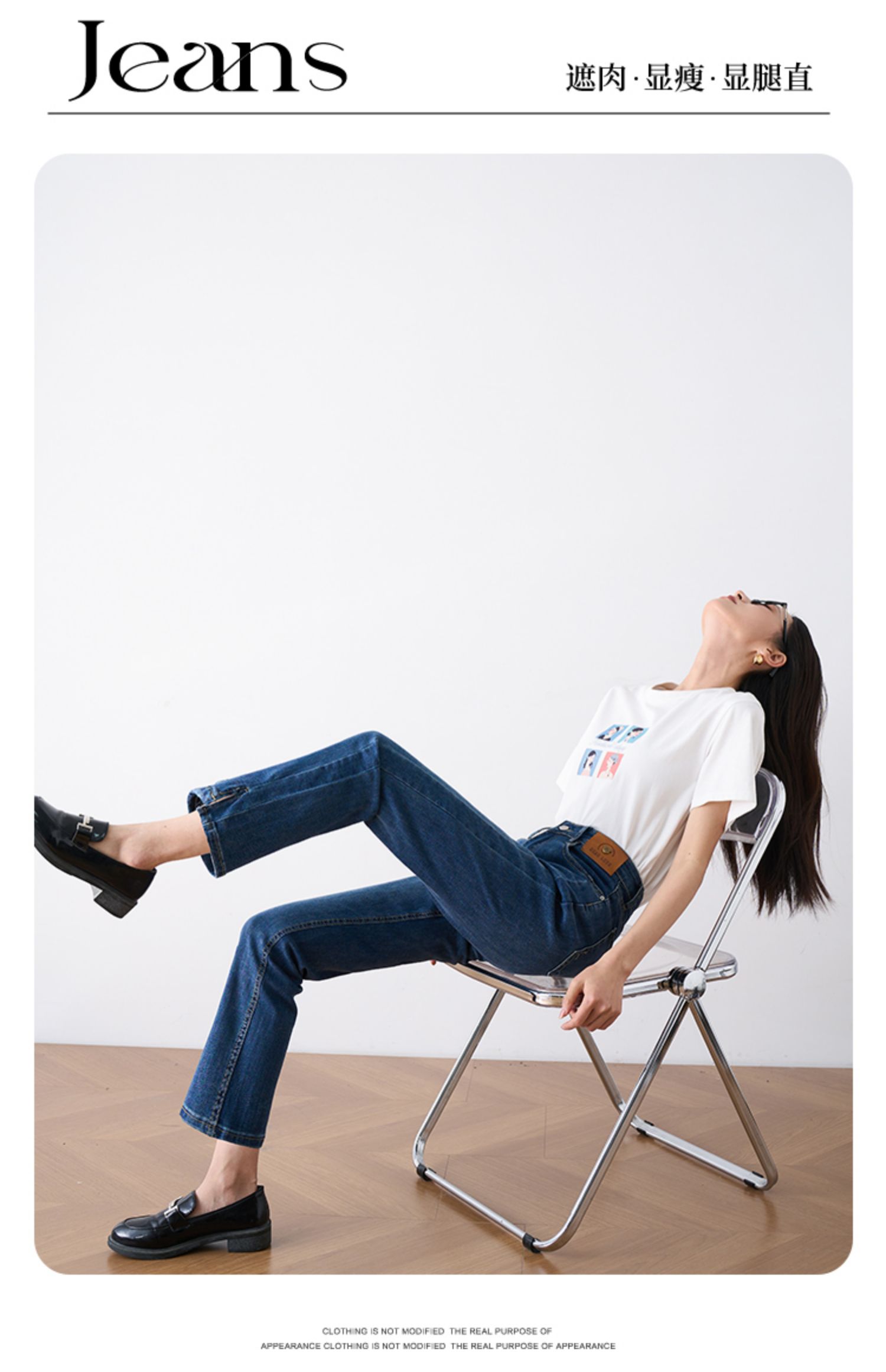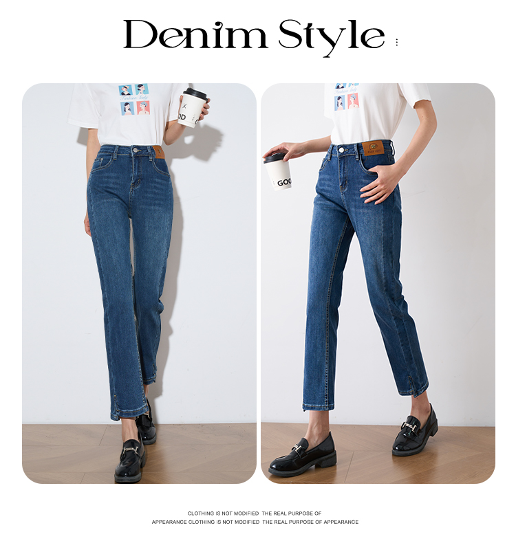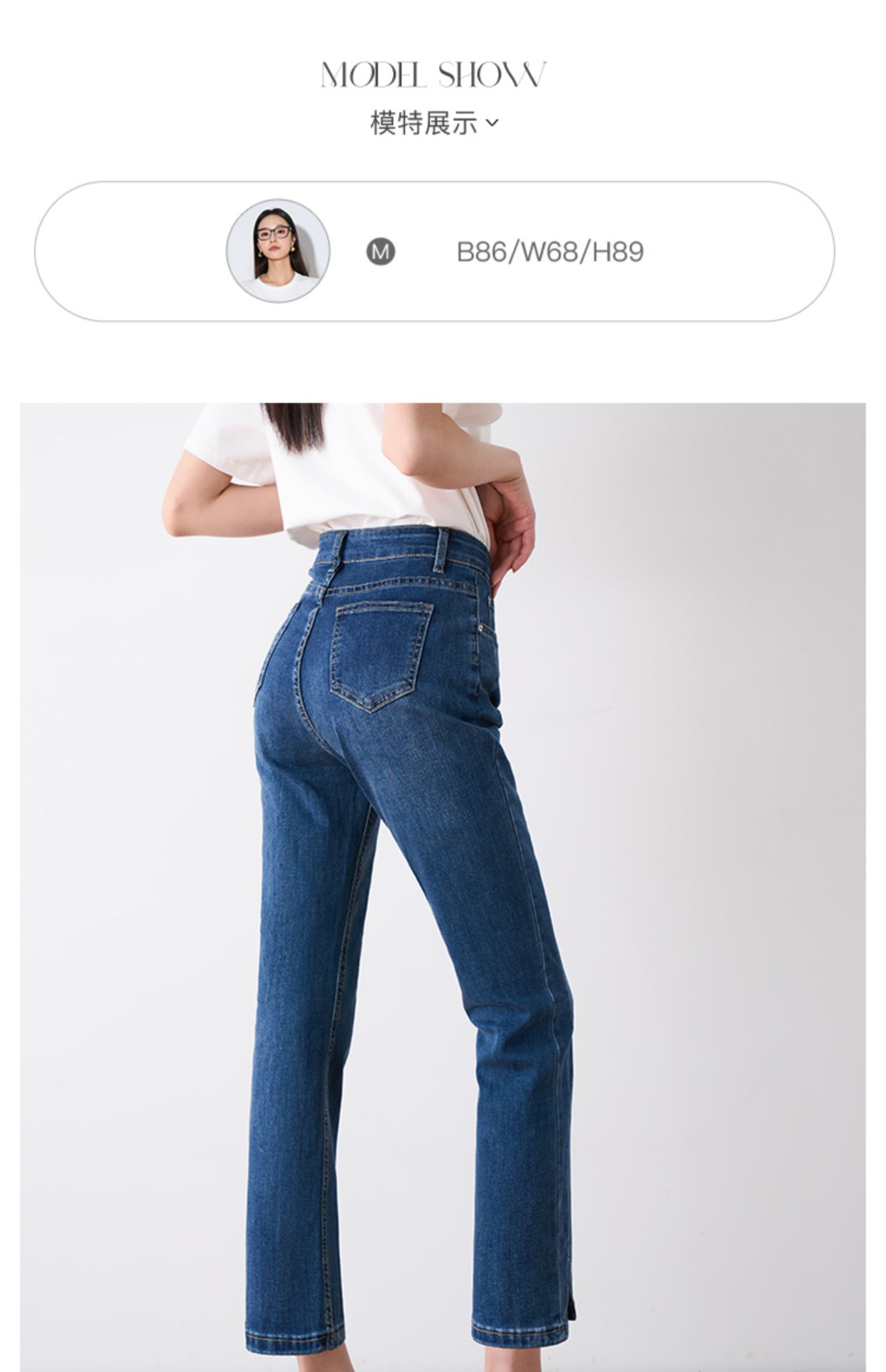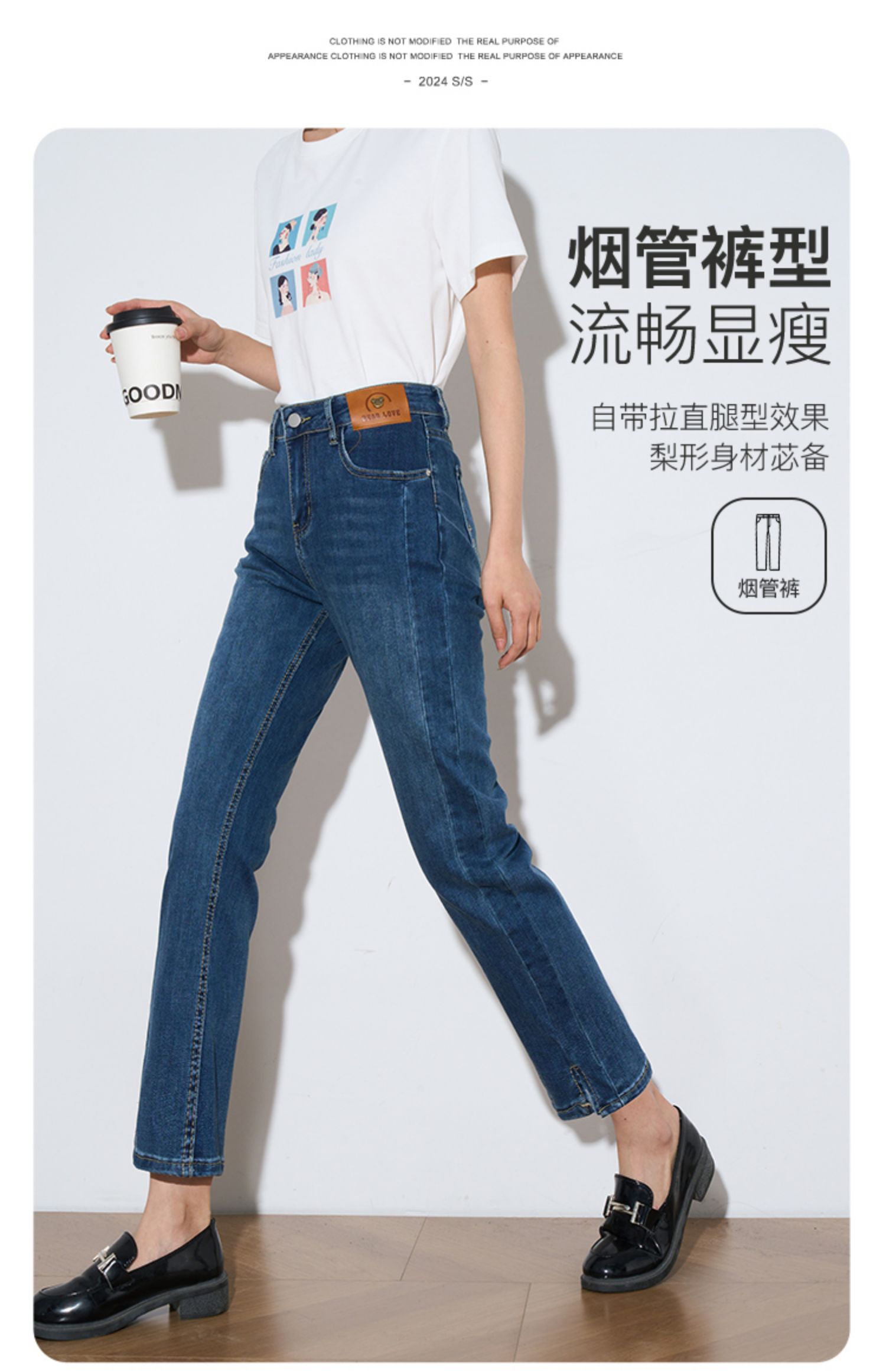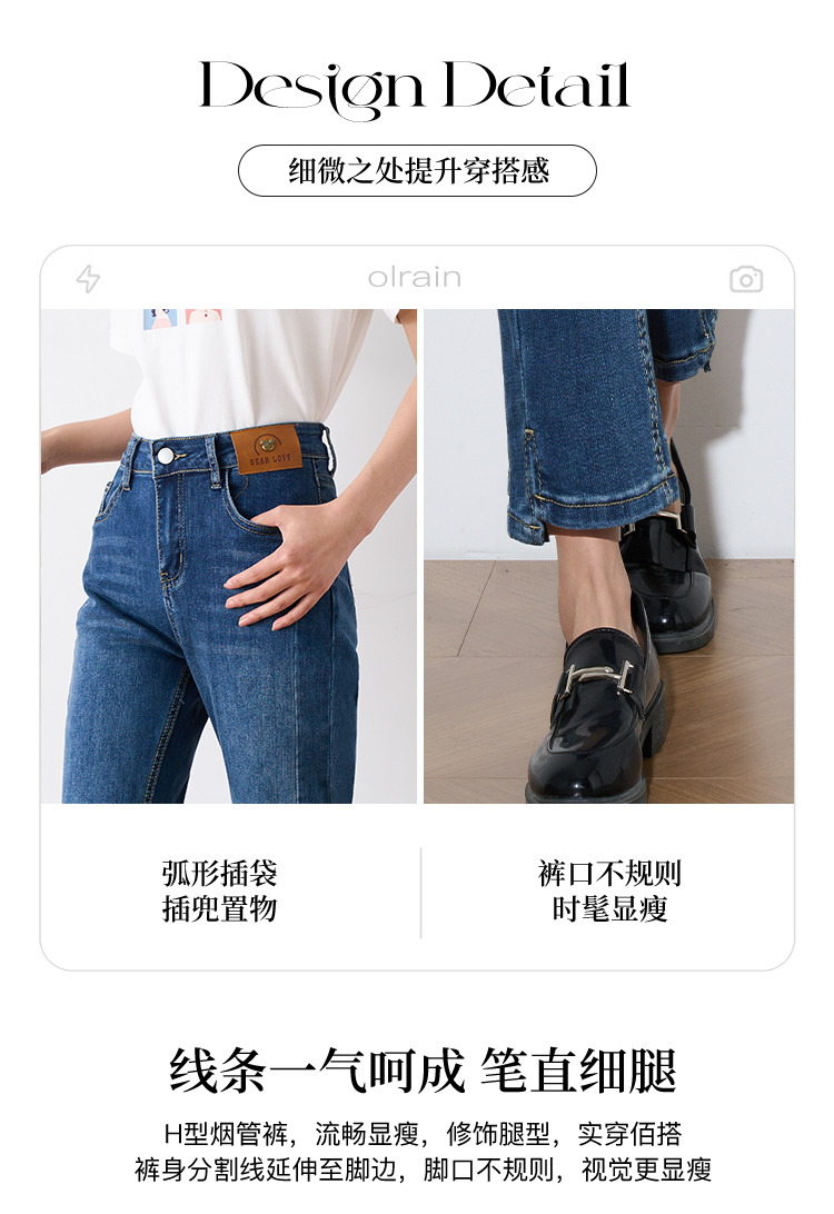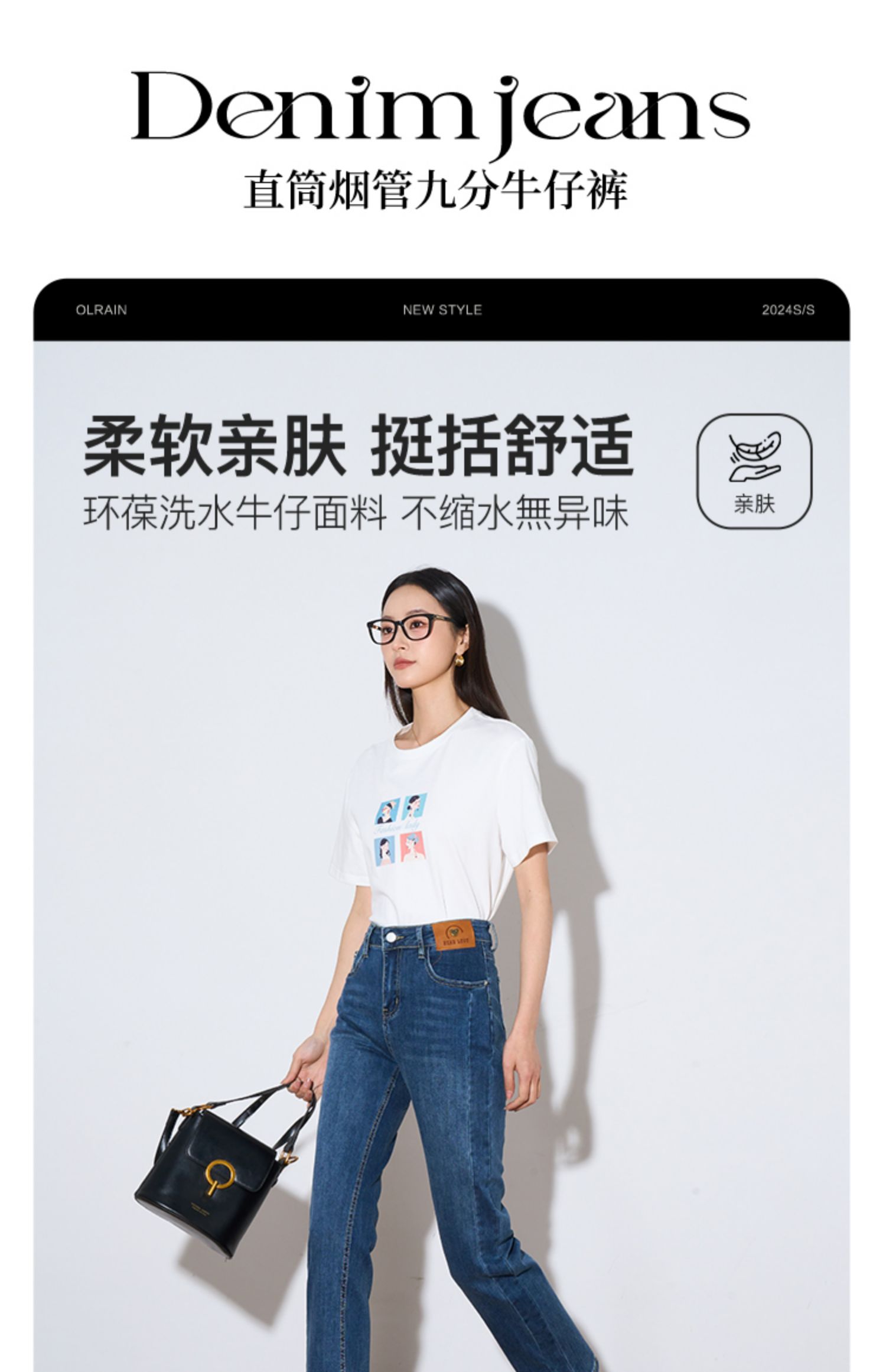 OLrain欧芮儿蓝色直筒牛仔裤女夏季2024年新款复古烟管九分裤