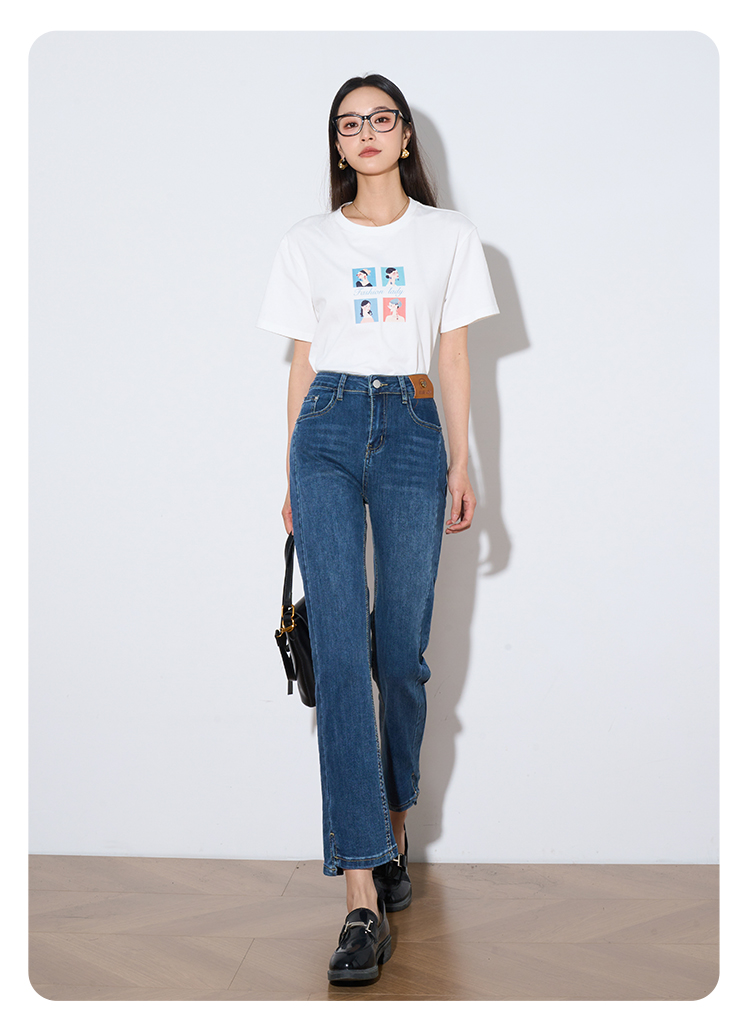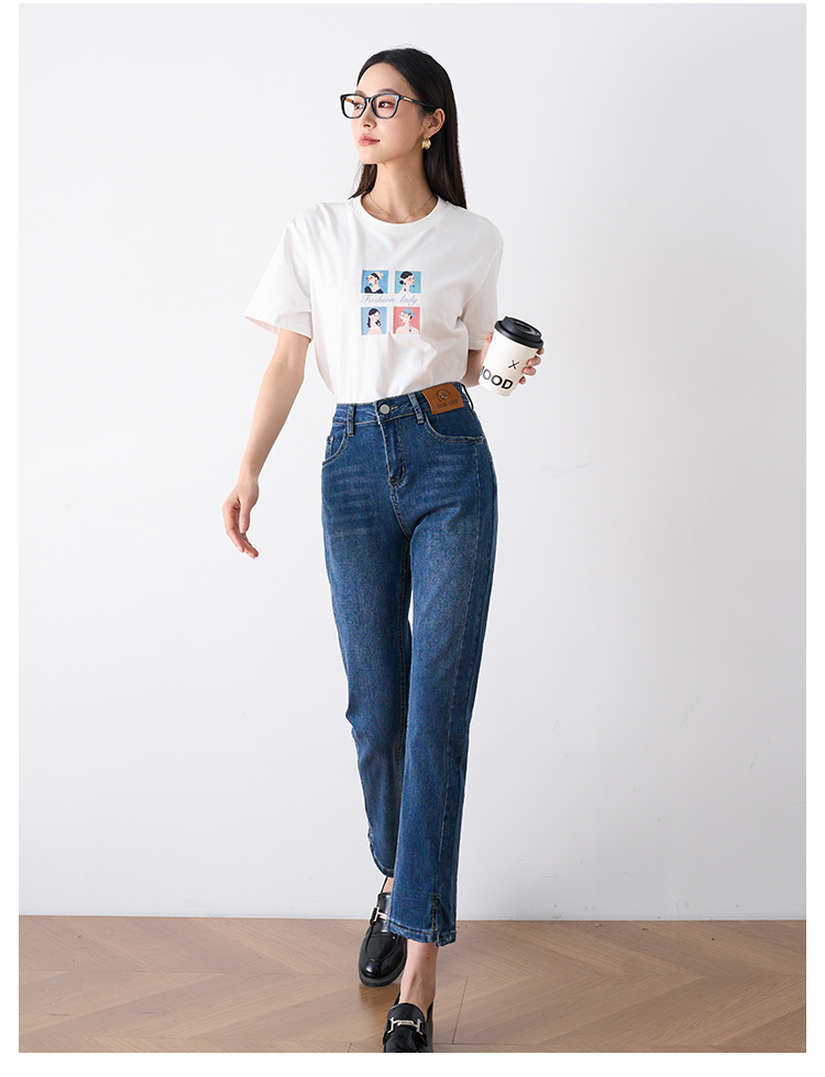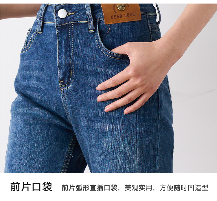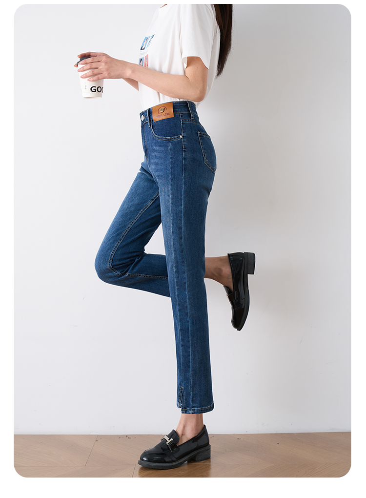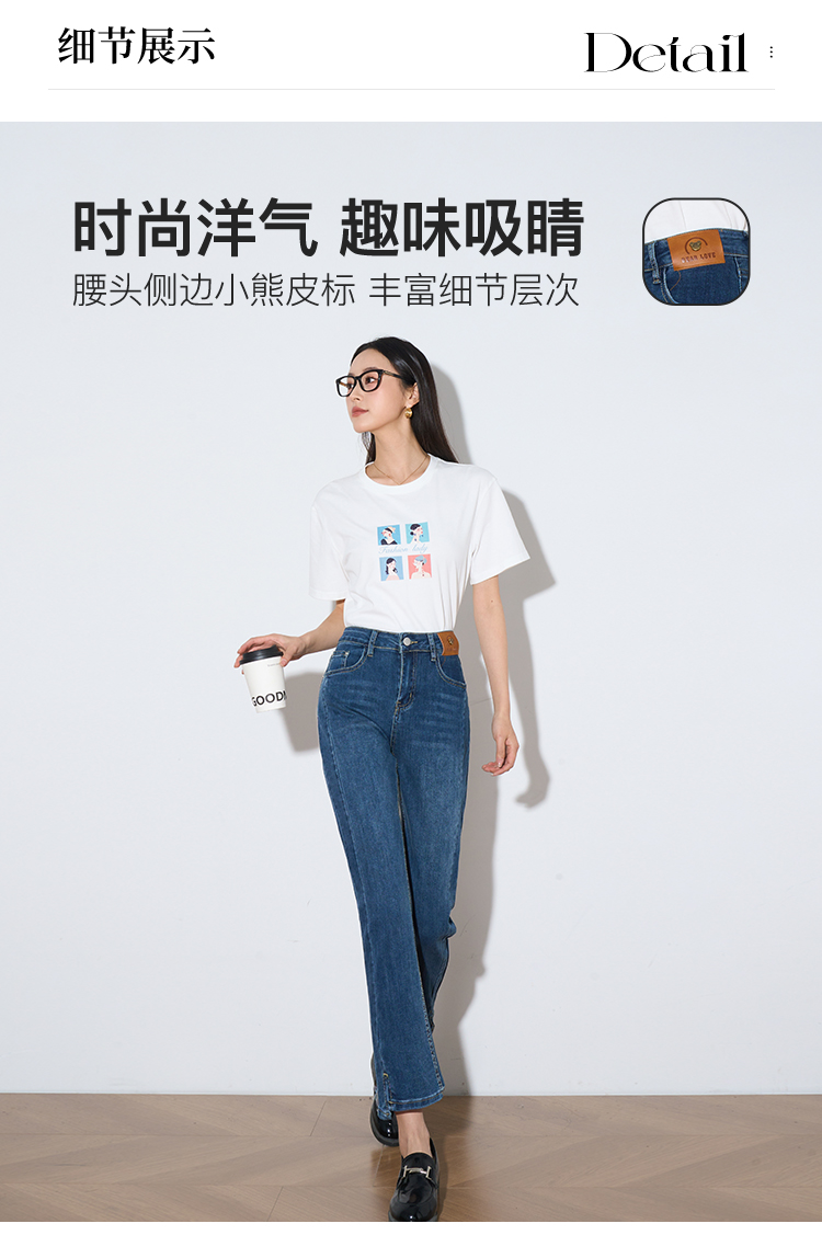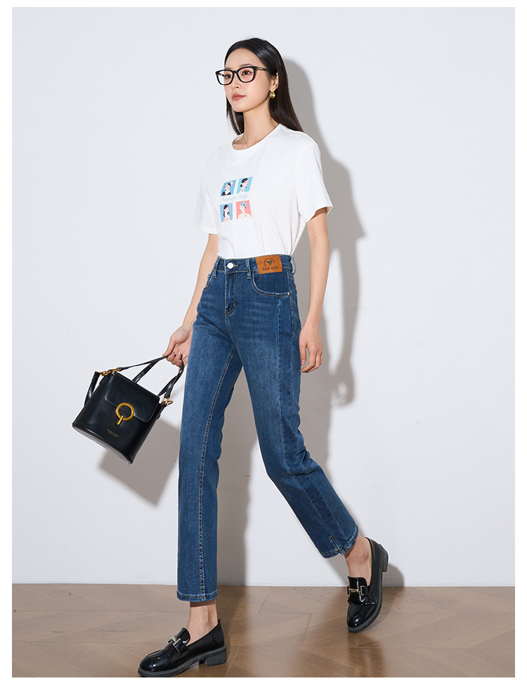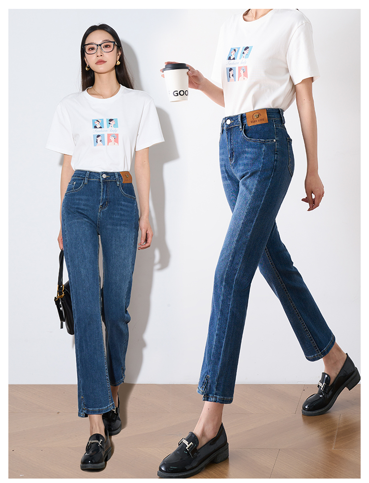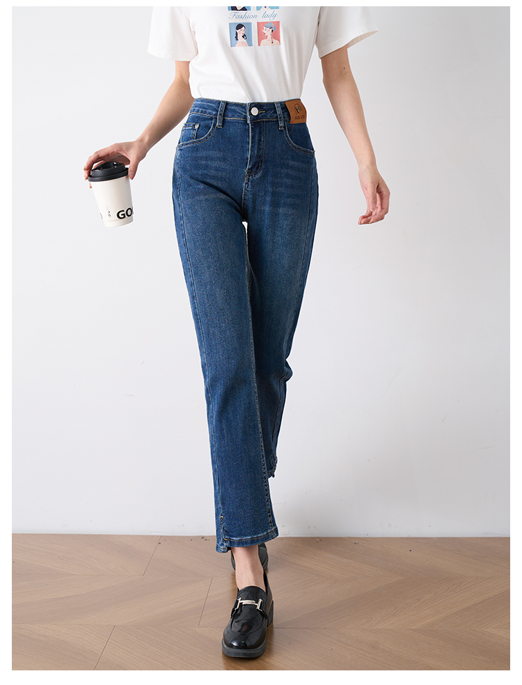 OLrain欧芮儿蓝色直筒牛仔裤女夏季2024年新款复古烟管九分裤