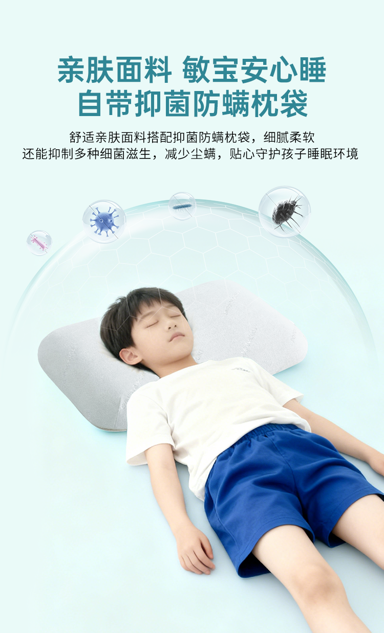 雅芳婷健儿枕枕头枕芯儿童单个单人装床上用品记忆棉抑菌防螨