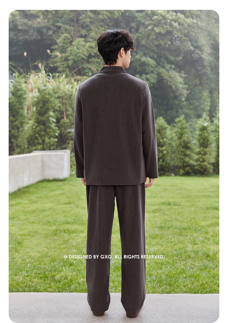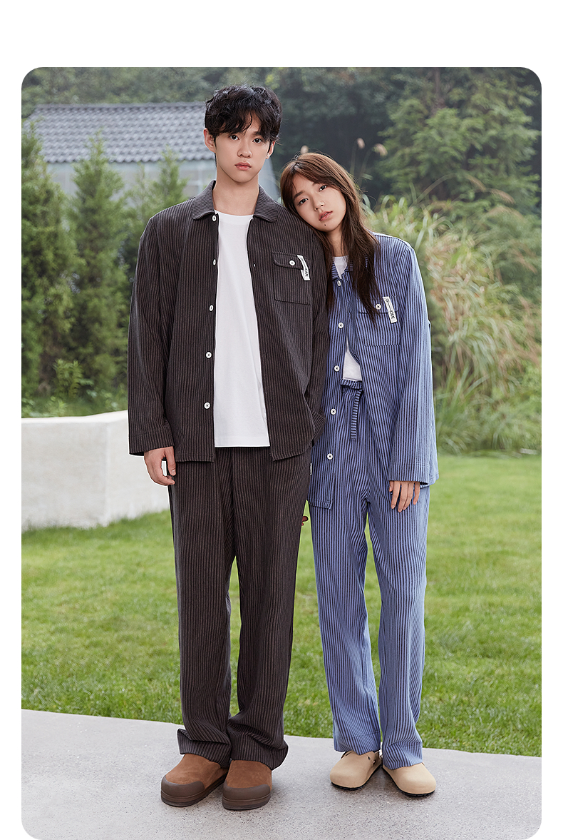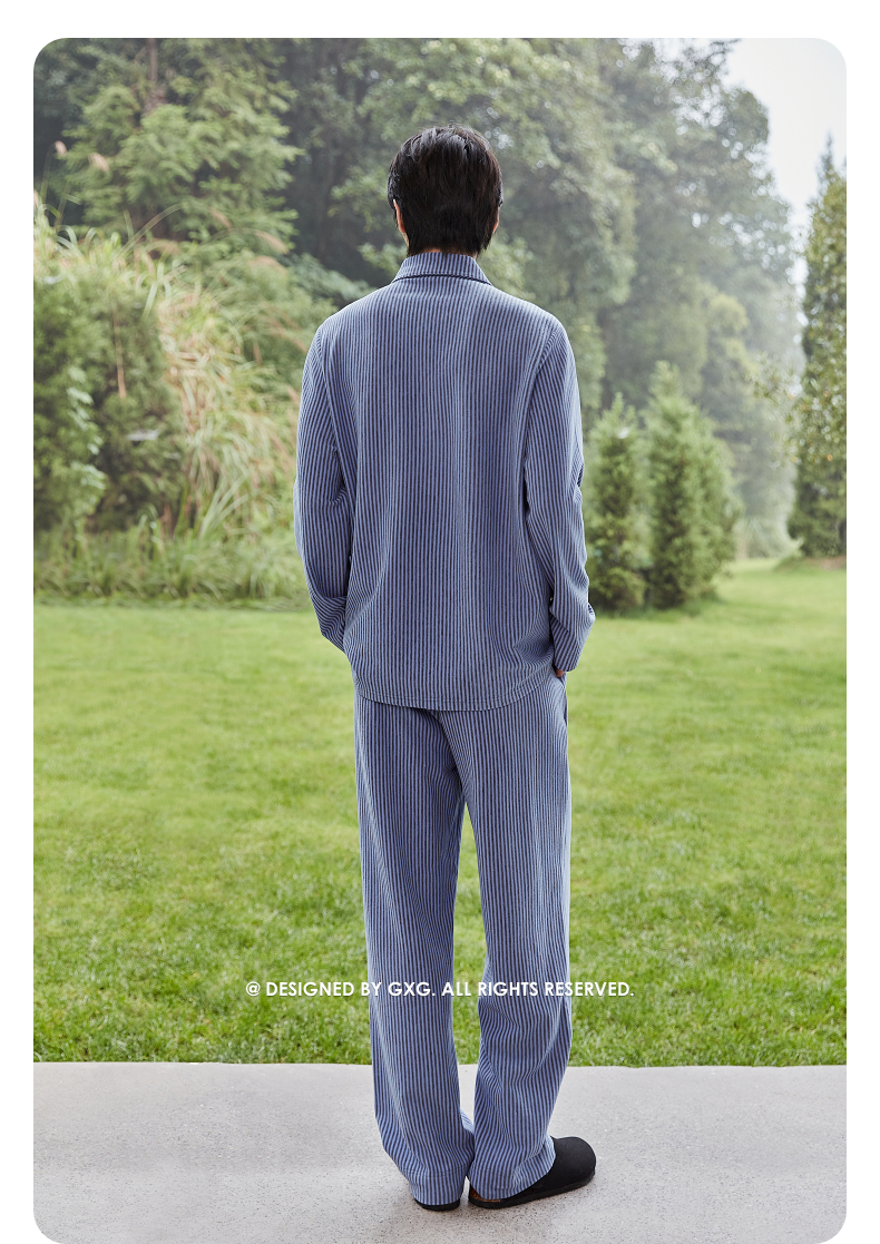 GXG男士家居服 肌理感针织条纹长袖睡衣舒适柔软休闲时尚睡衣套装