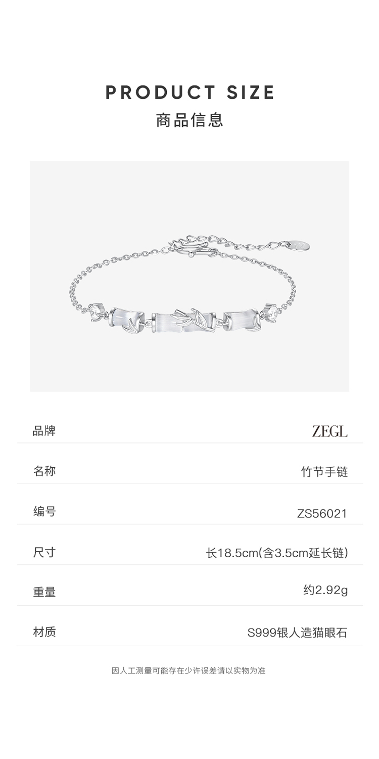 ZEGL999纯银竹节手链女2024年新款轻奢小众精致猫眼石新中式手饰