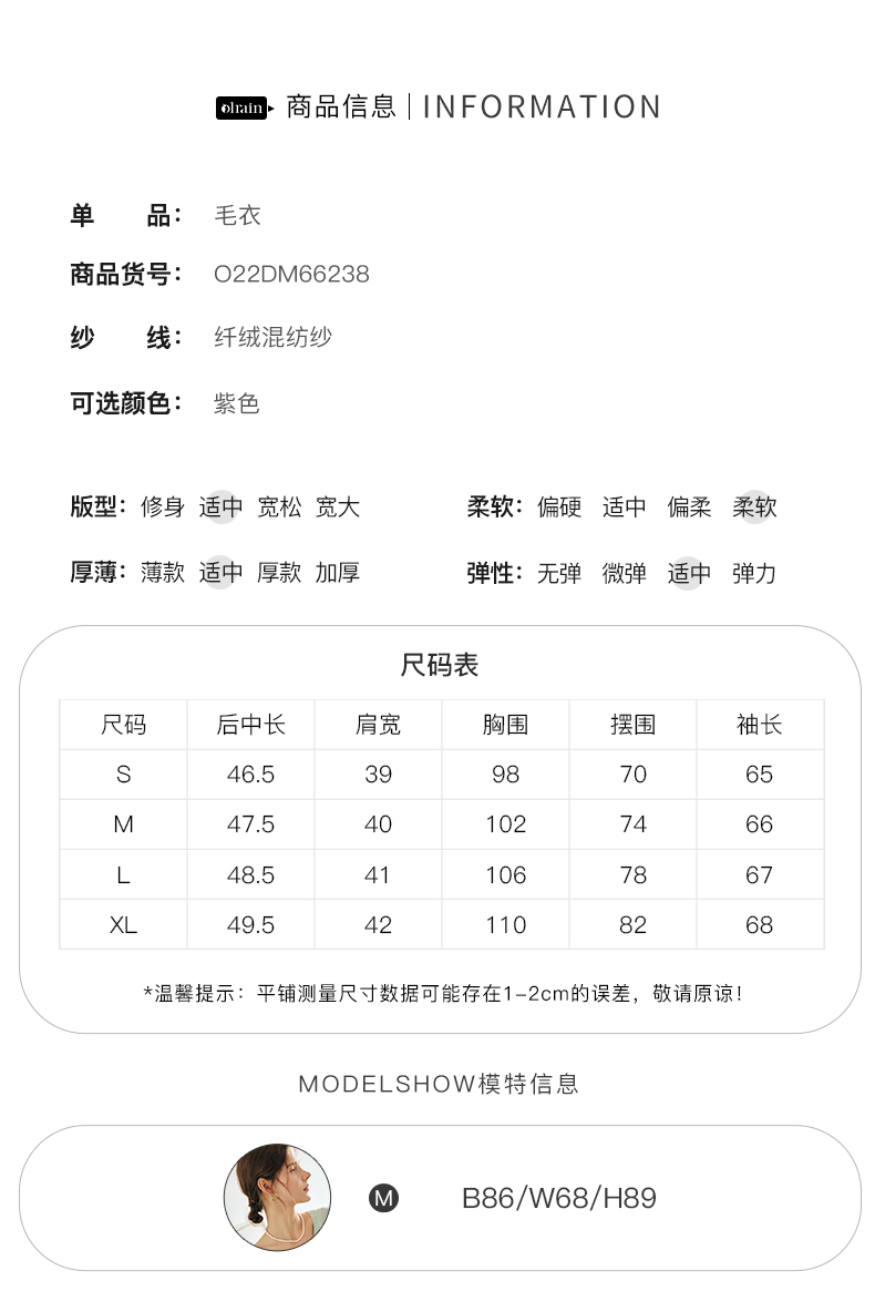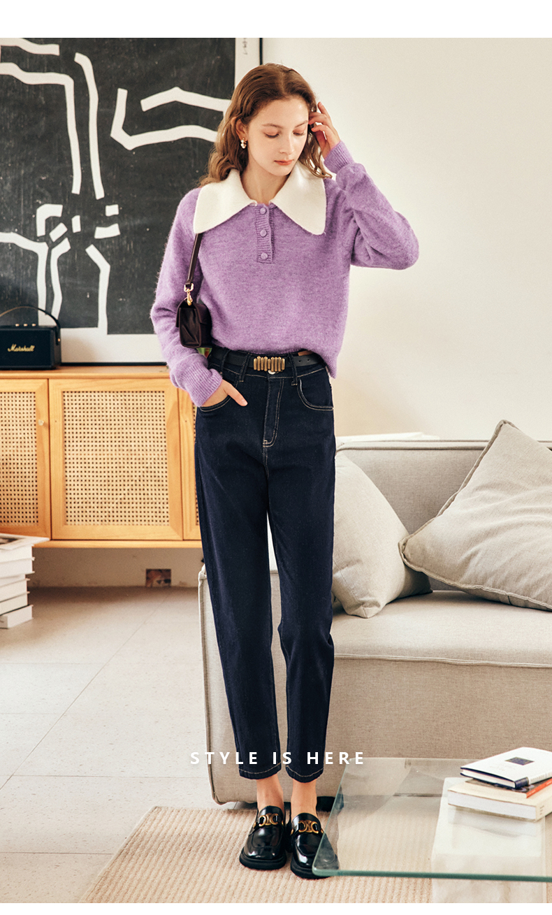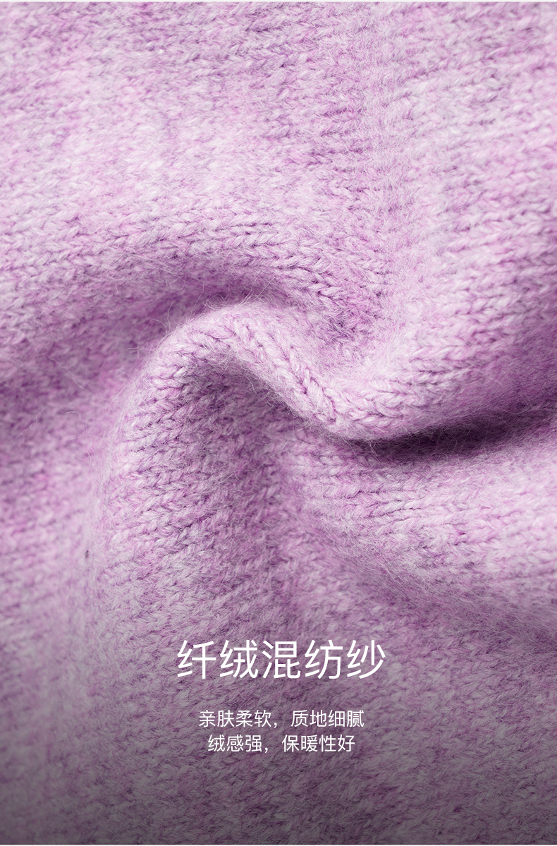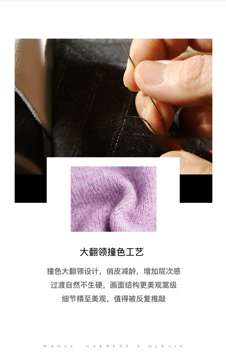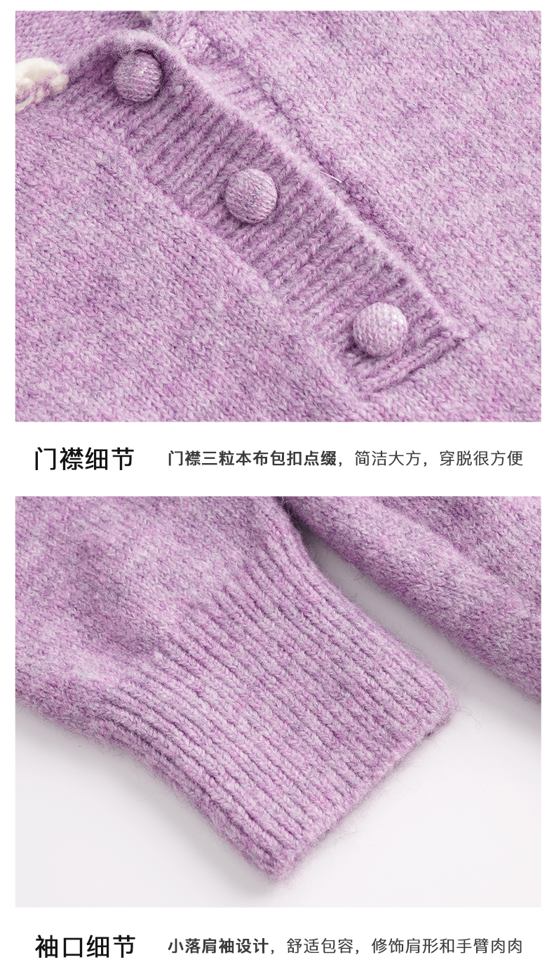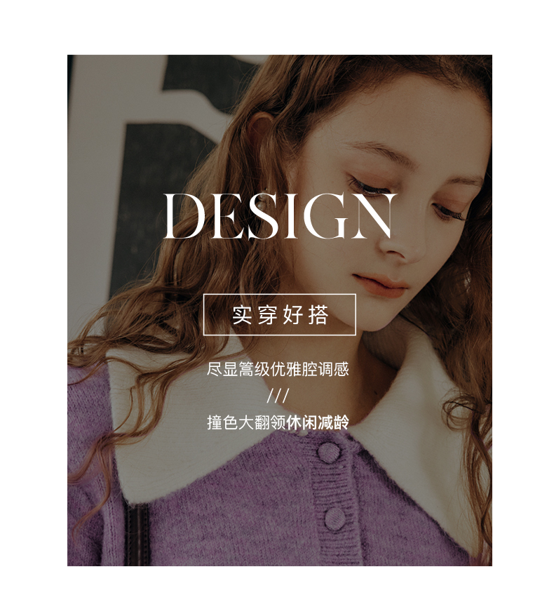 OLrain欧芮儿法式紫色翻领毛衣女秋冬2022年新款宽松撞色针织上衣