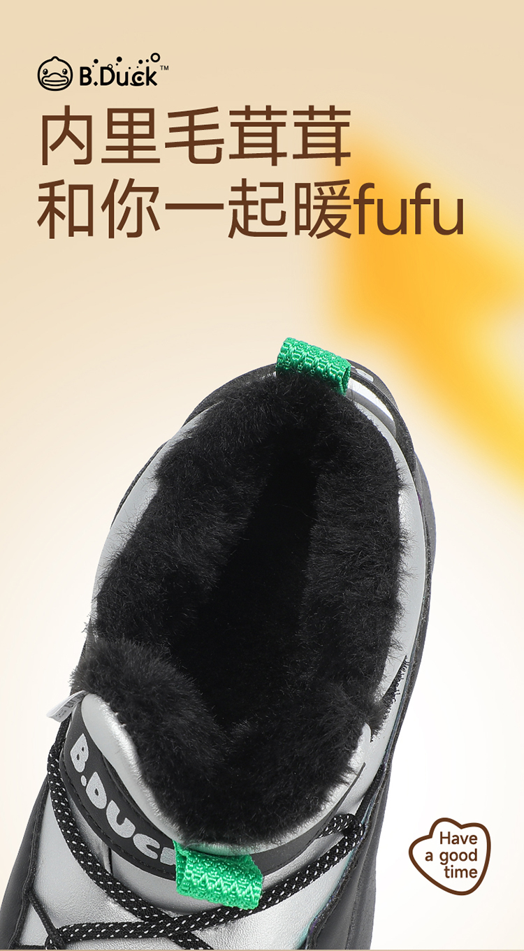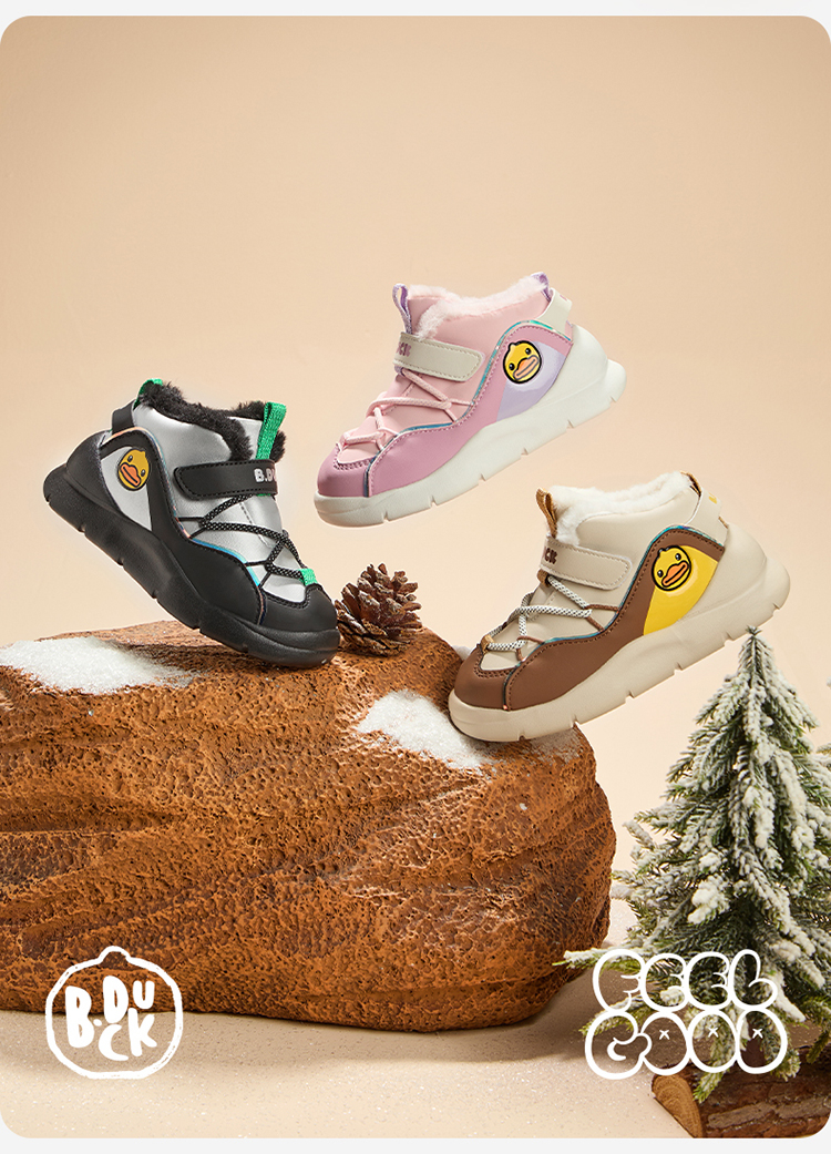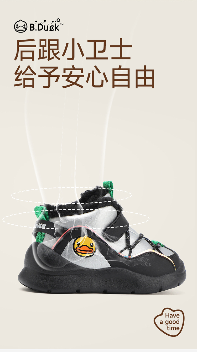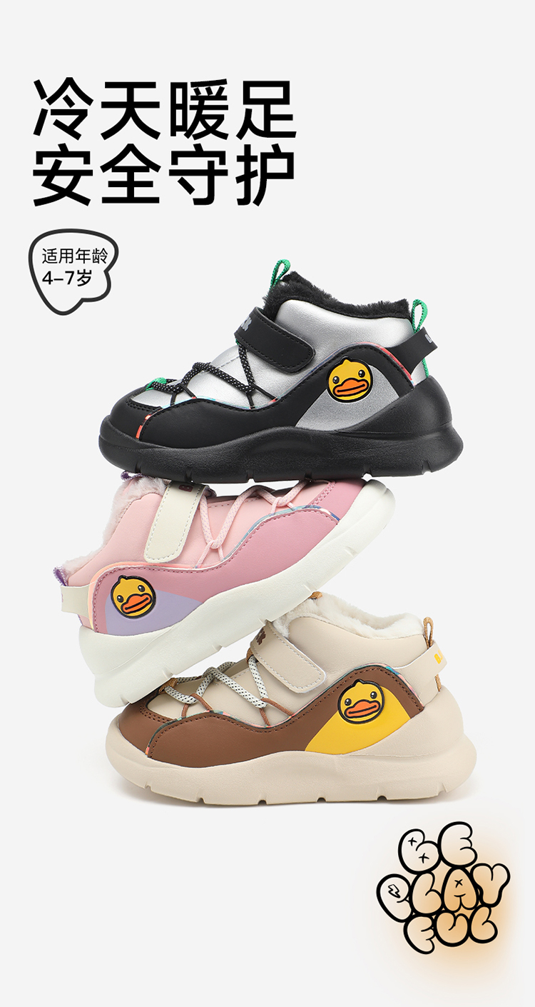 B.Duck小黄鸭童鞋冬季男女童高帮运动鞋保暖棉鞋26-30 B5586854