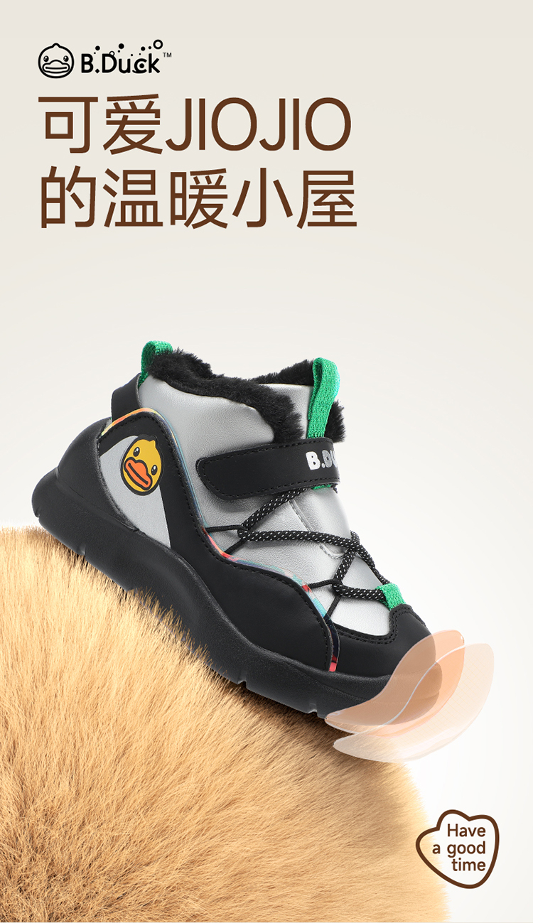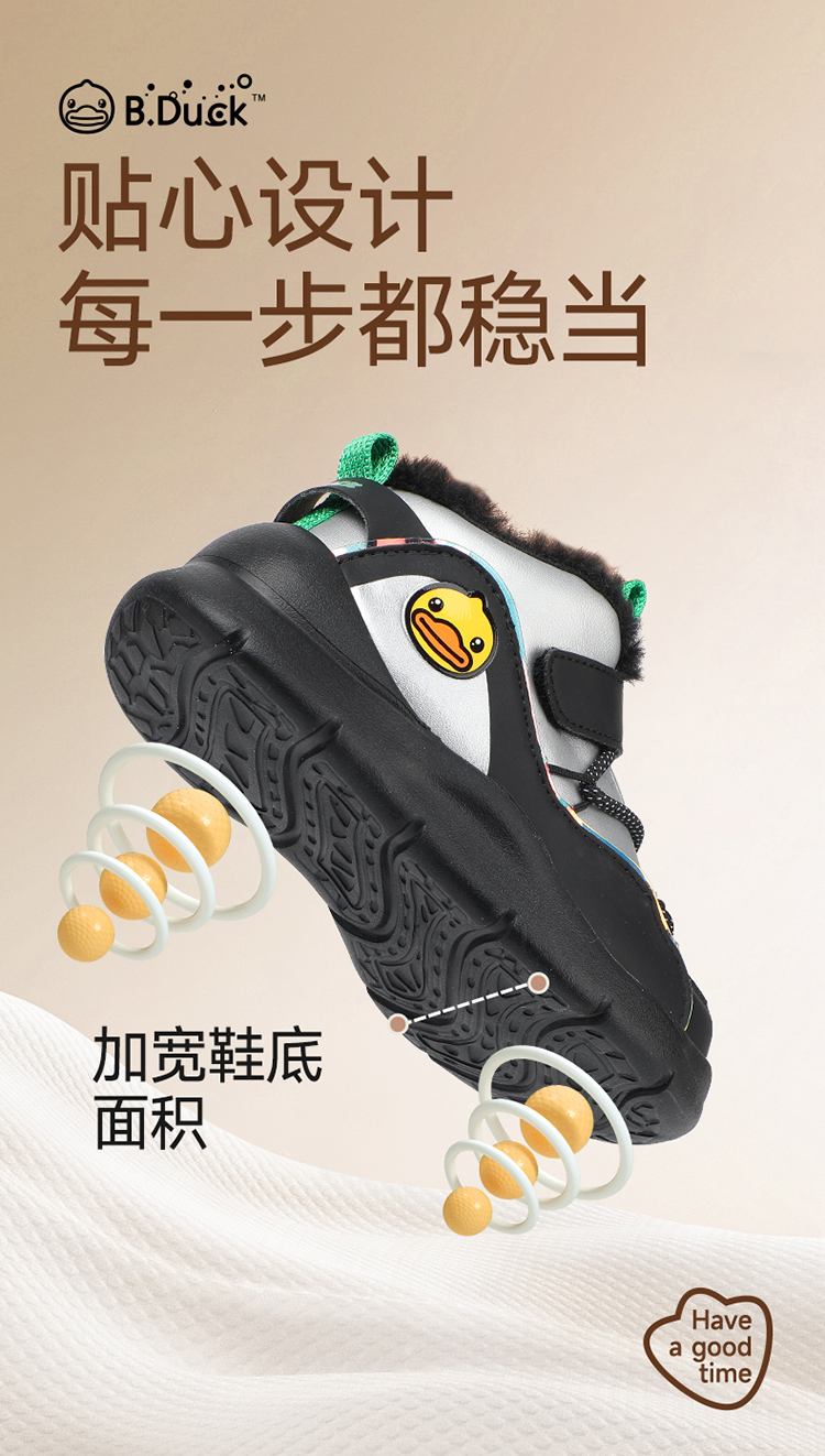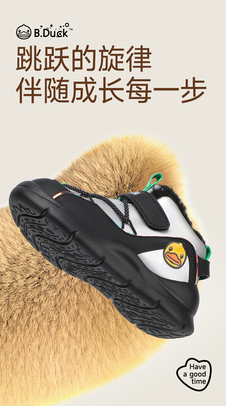 B.Duck小黄鸭童鞋冬季男女童高帮运动鞋保暖棉鞋26-30 B5586854