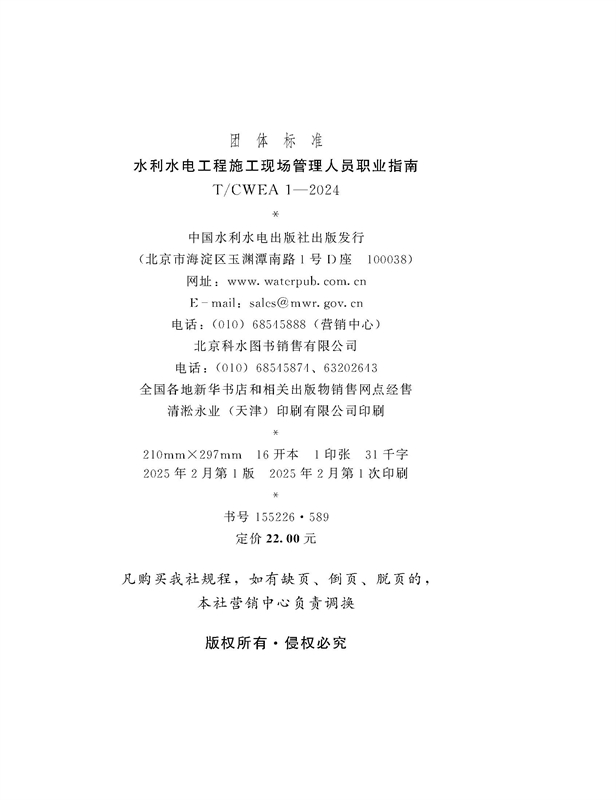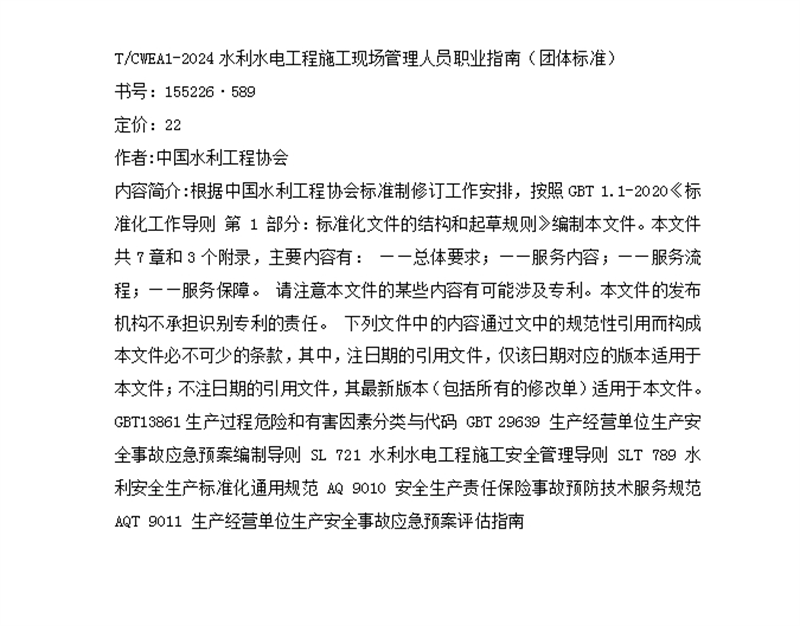 T/CWEA1-2024水利水电工程施工现场管理人员职业指南(团体标准)