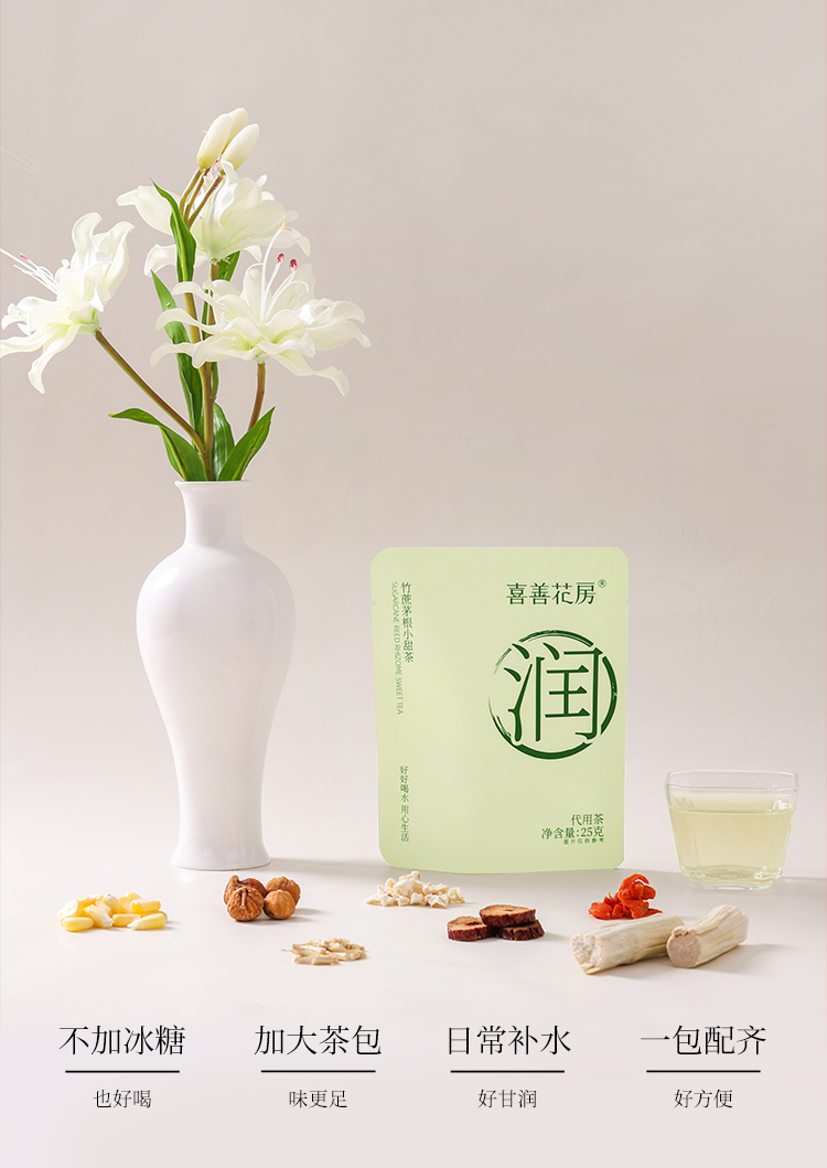 喜善花房 竹蔗茅根茶 润燥茶 0添加剂 全家爱喝【鱼圈vip福利】