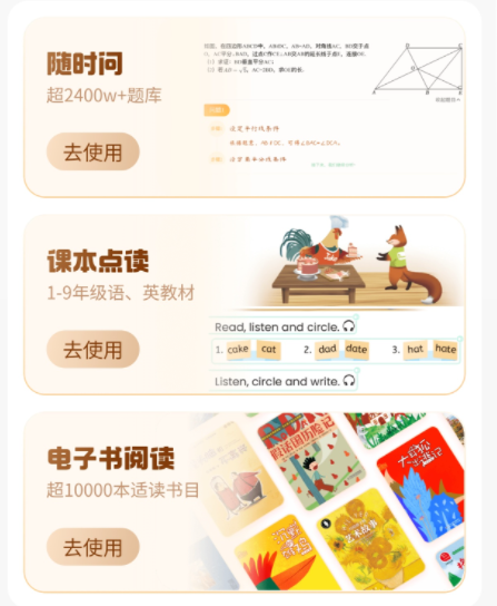 7、赠品:1年学而思网校vip功能,包含👇送1年随时问拍搜功能送1年1-9年级所有教材的点读