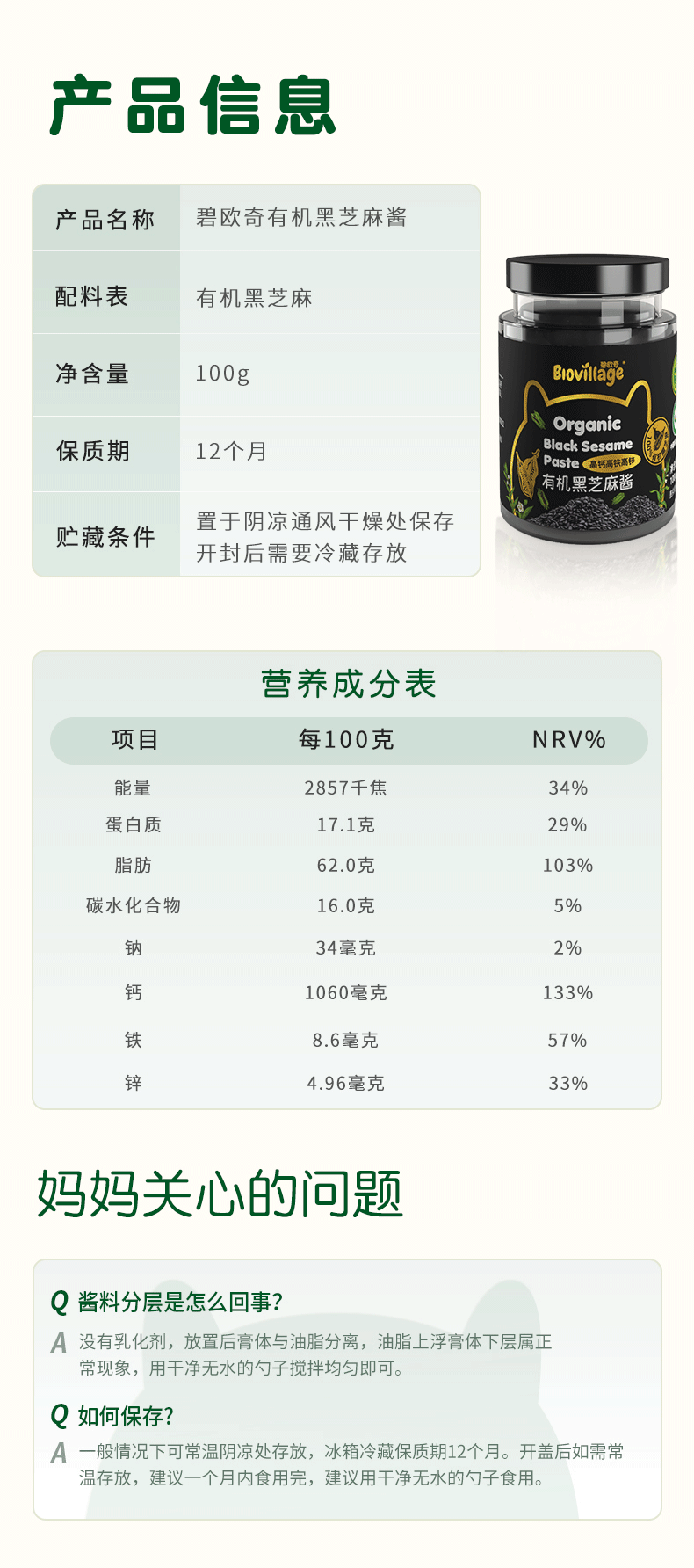 【有机0添加】碧欧奇高铁高锌高钙有机黑芝麻酱