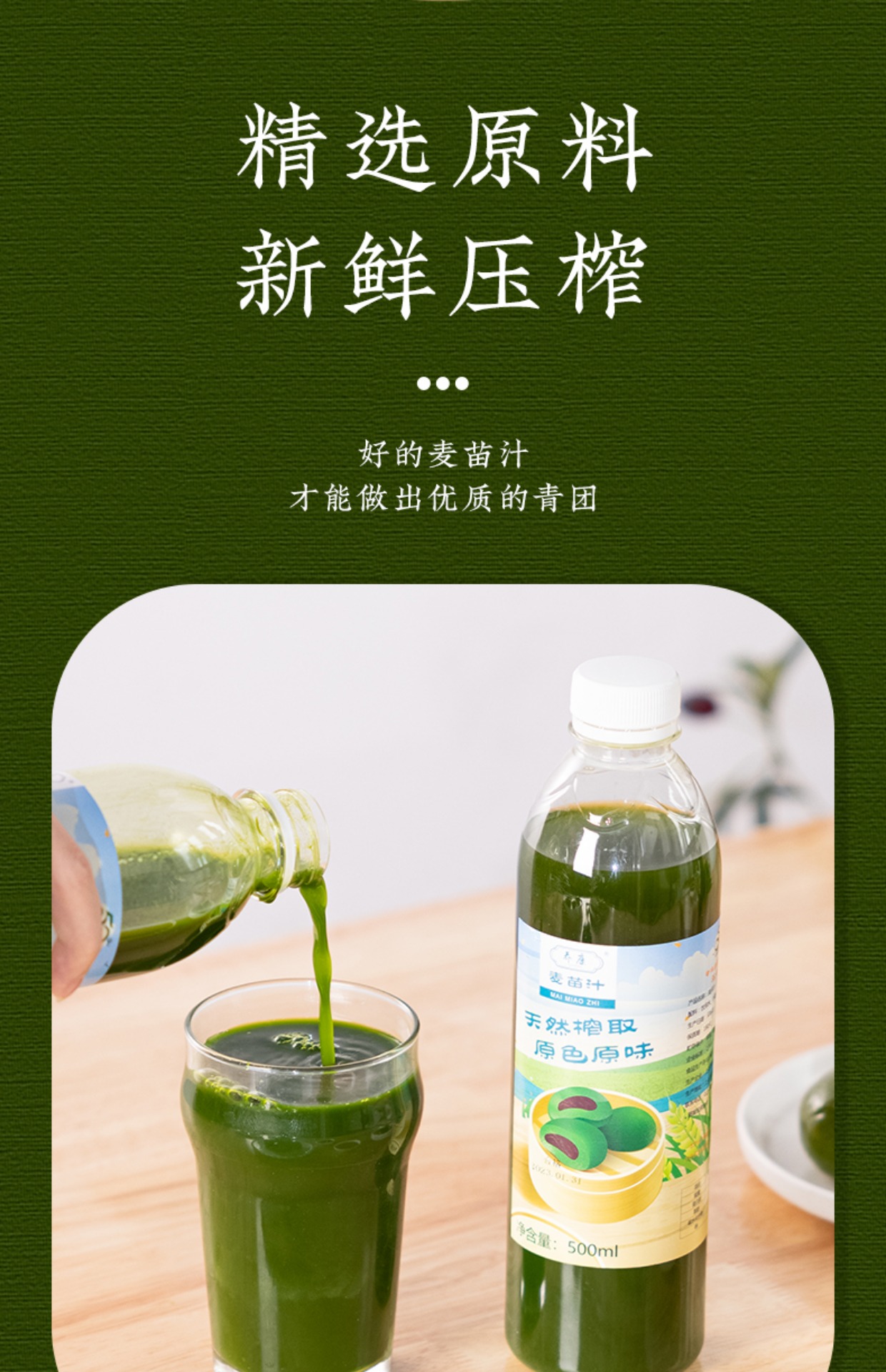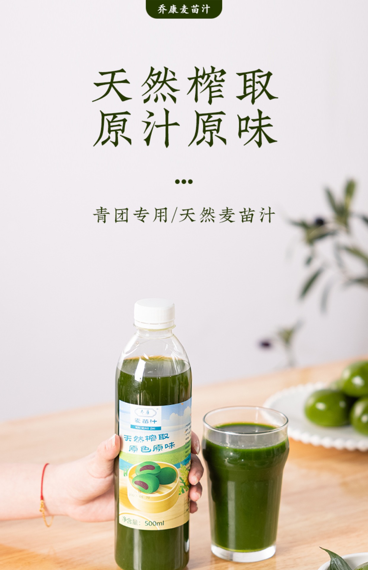 500ml 乔康 麦苗汁 麦青汁 青团专用青汁 家用小麦汁青麦汁