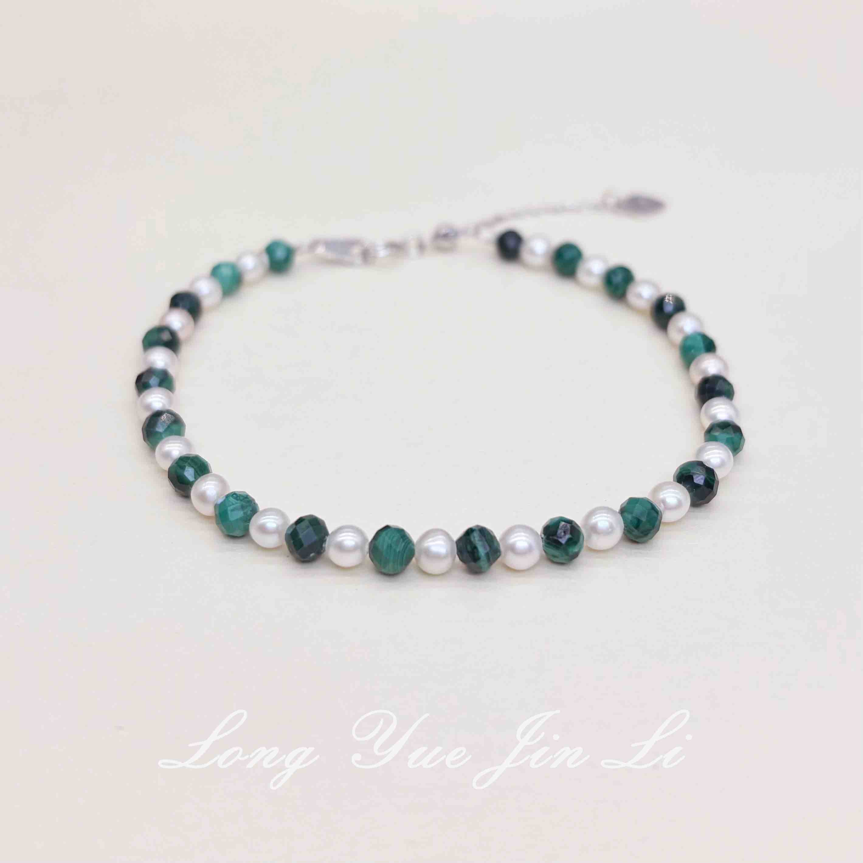 孔雀石小米珍珠手链