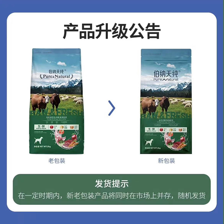 伯纳天纯狗粮生鲜农场狂欢成犬幼犬全犬期通用粮2kg全价全犬