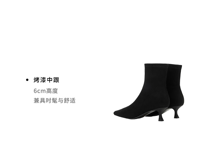 Westory2025年冬季小方头中跟弹力收腿靴简约百搭短靴S25DS85741