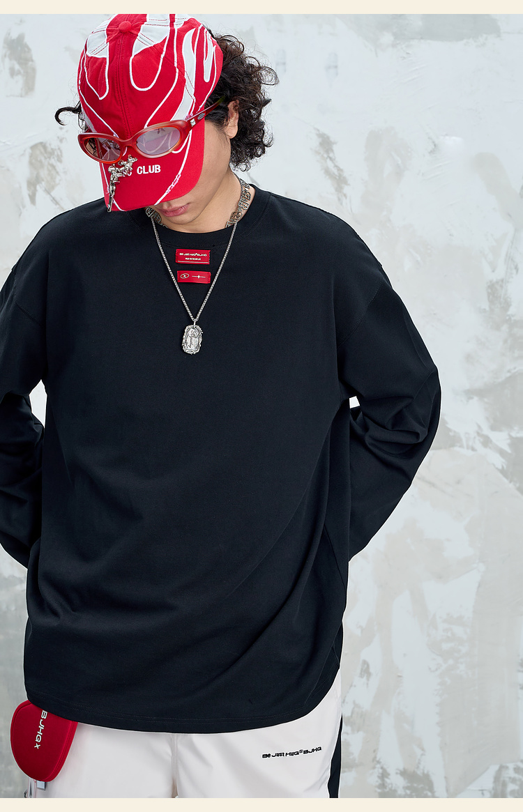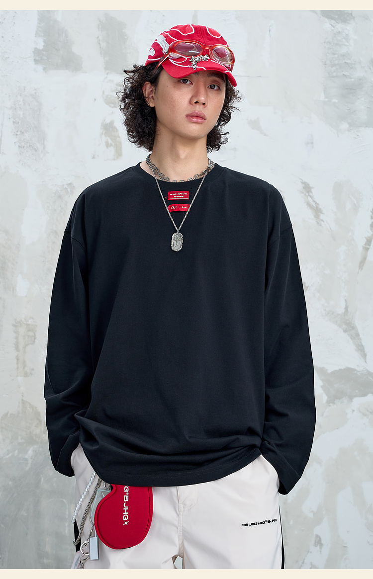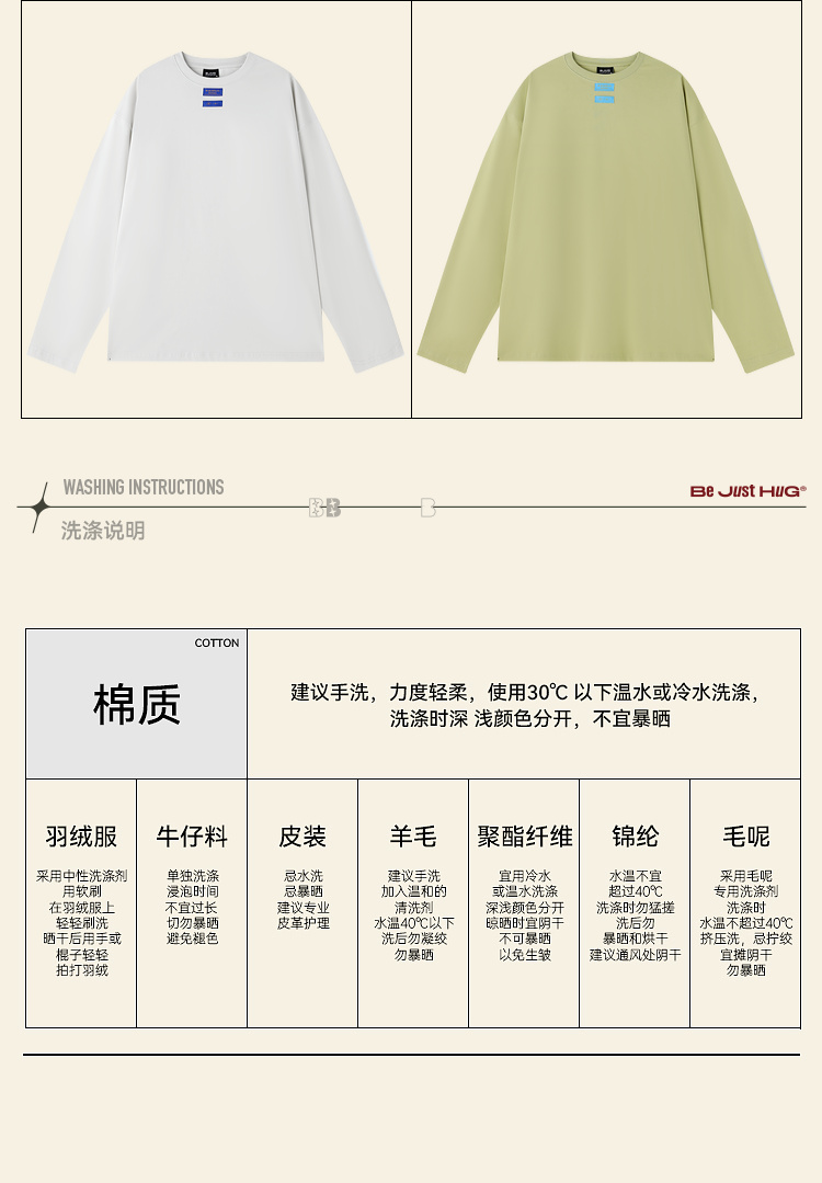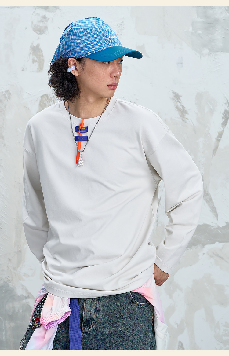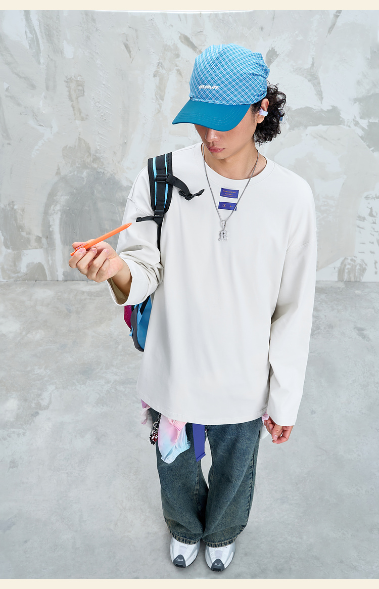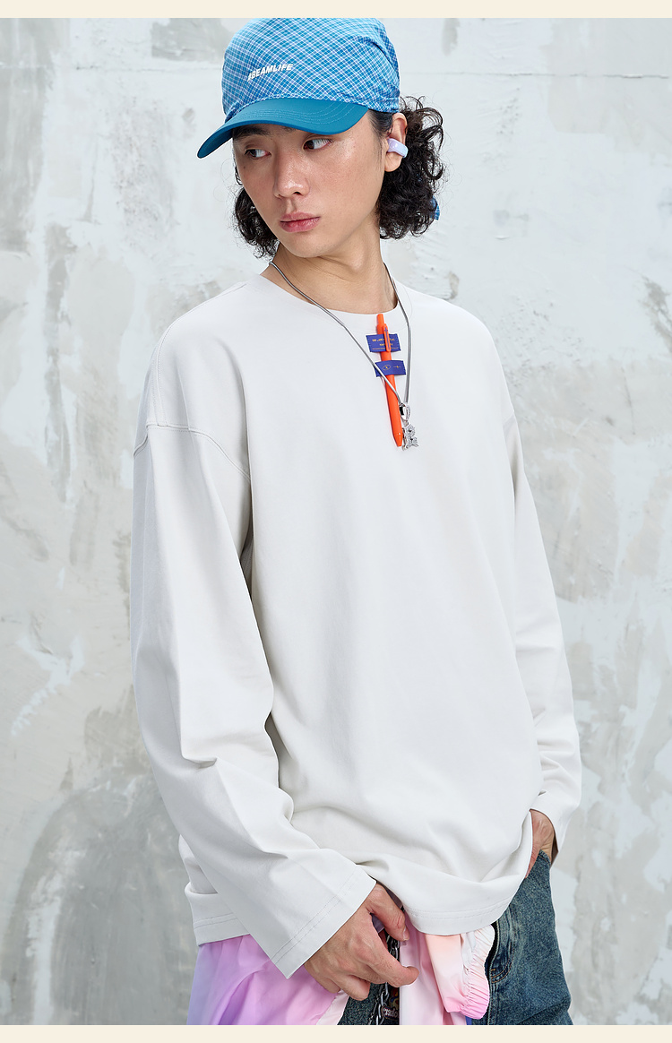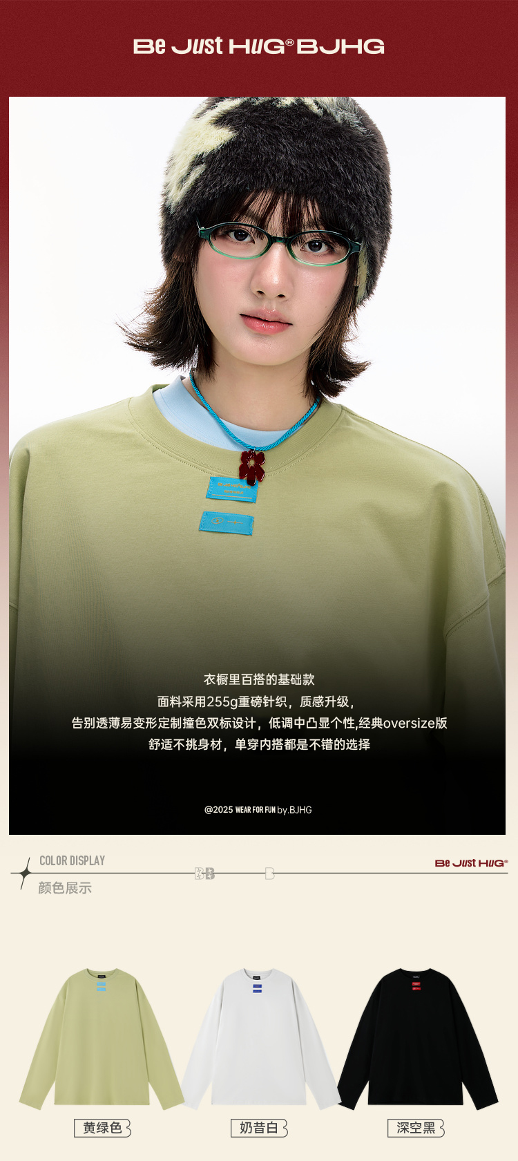 BJHG不计后果撞色长袖t恤男秋季2025新款简约宽松抗菌功能性T恤女