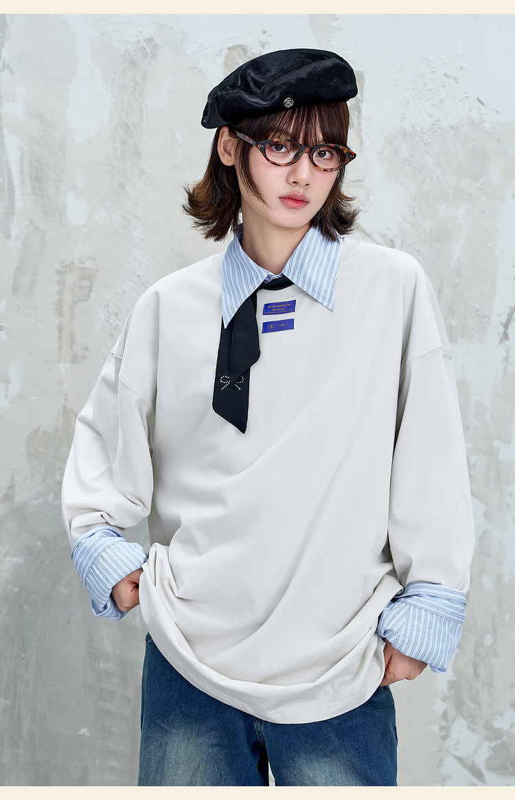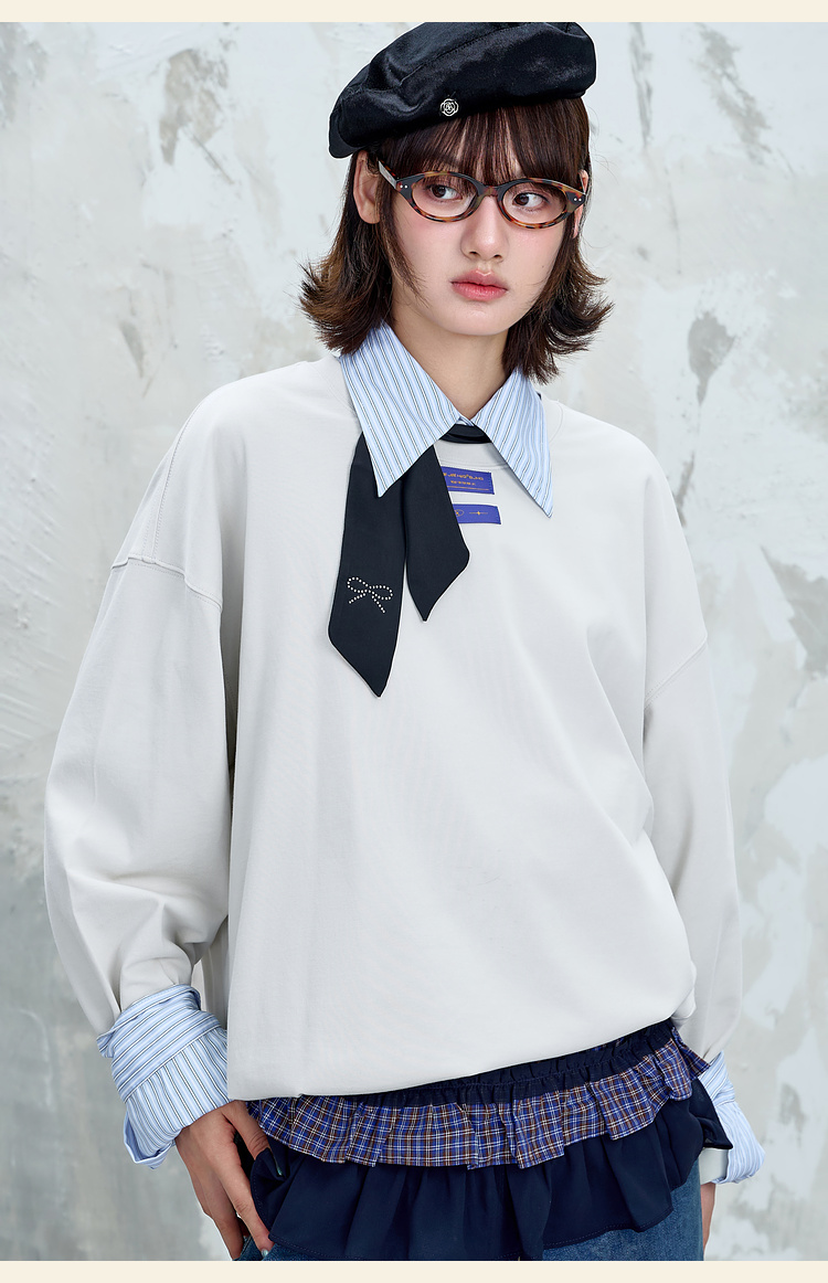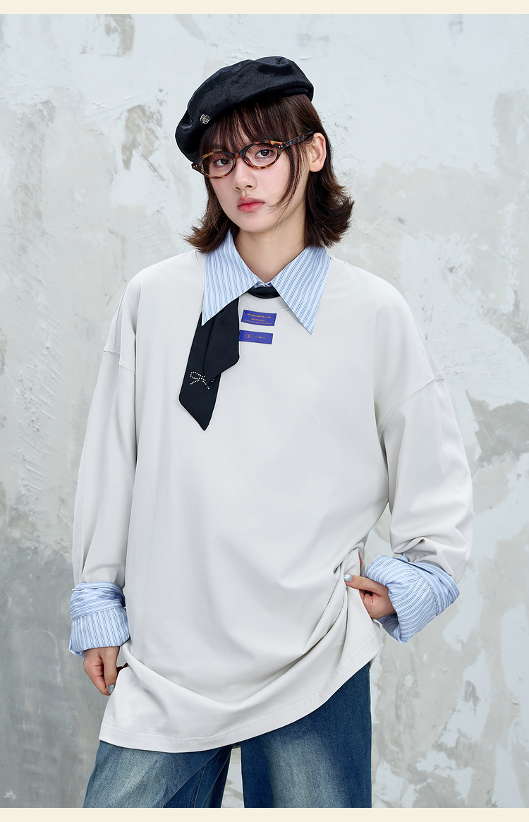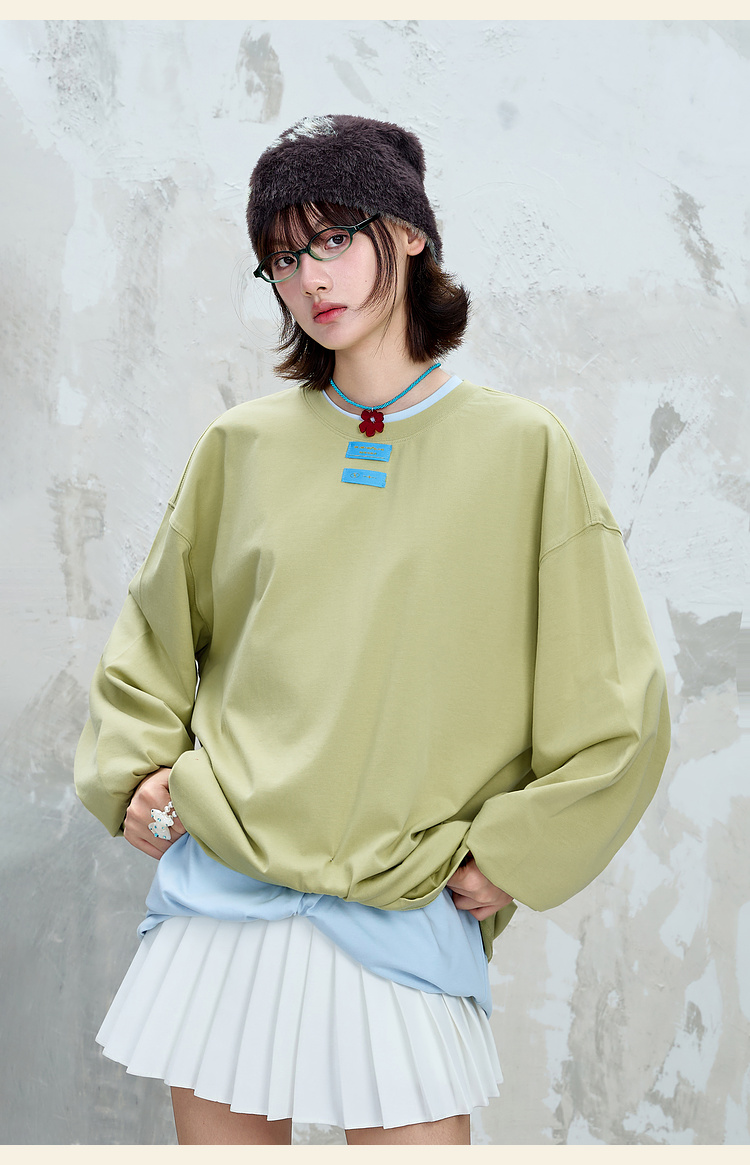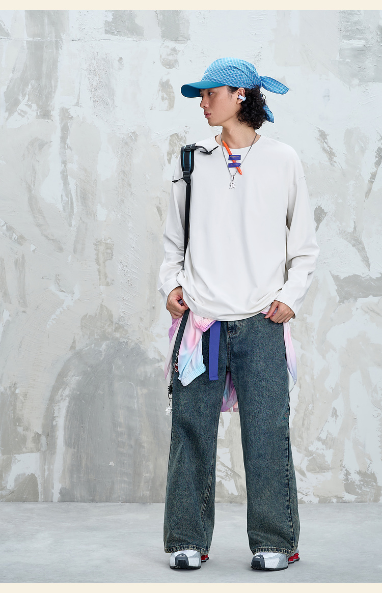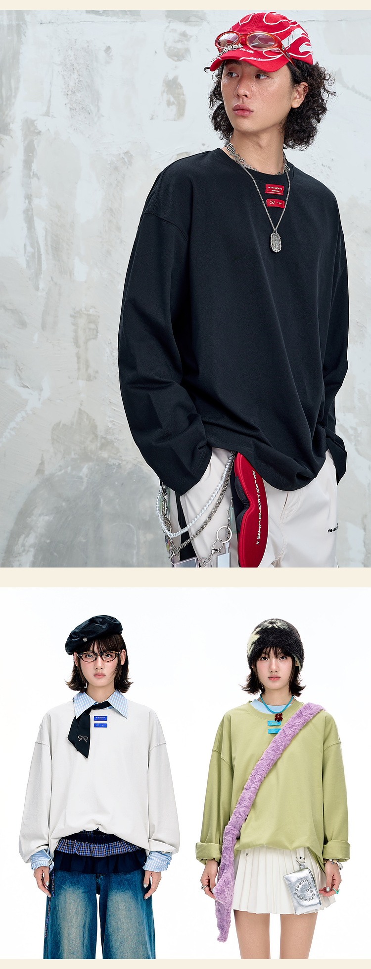 BJHG不计后果撞色长袖t恤男秋季2025新款简约宽松抗菌功能性T恤女