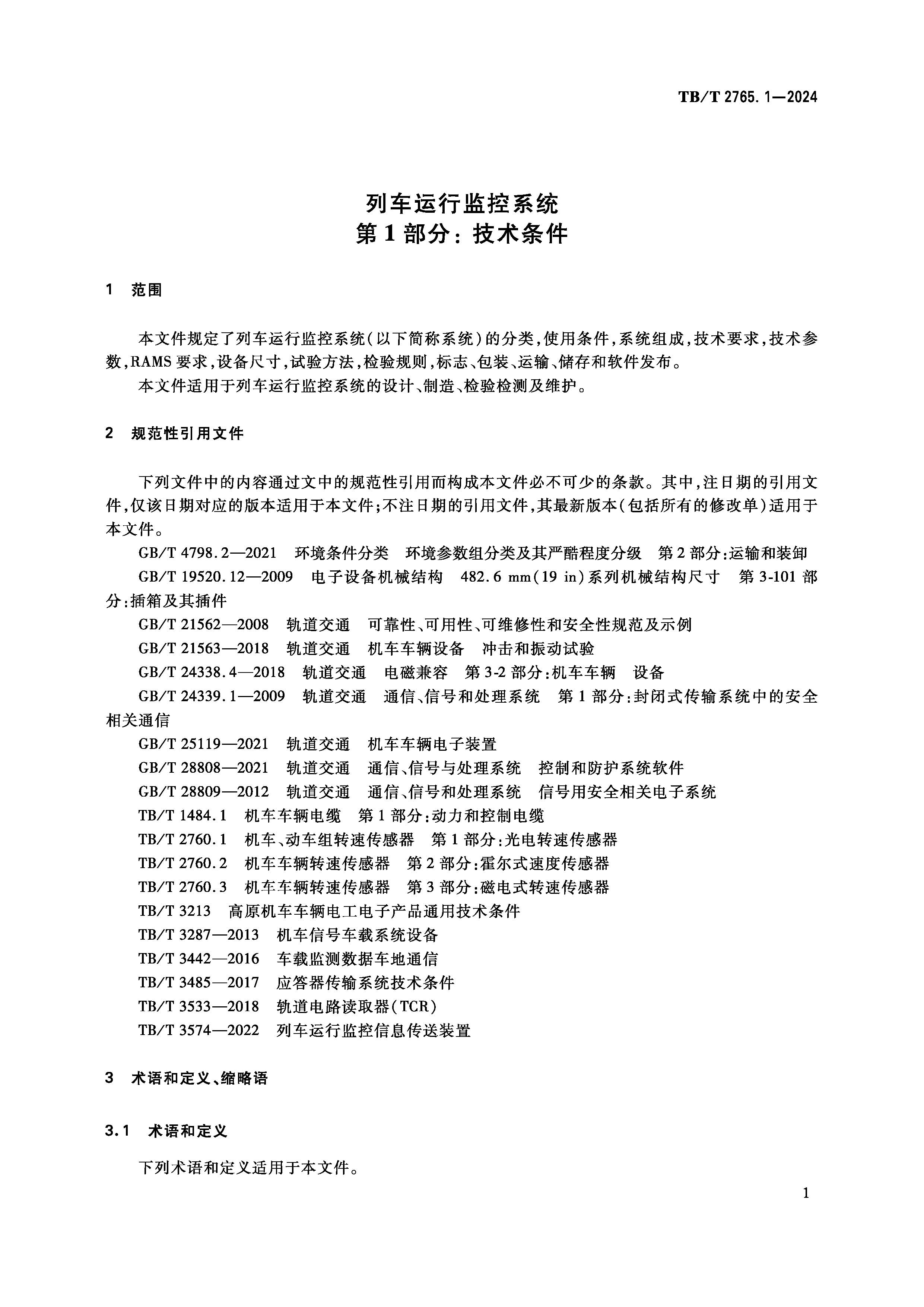 7165 列车运行监控系统 第1部分:技术条件(TB/T2765.1-2024)