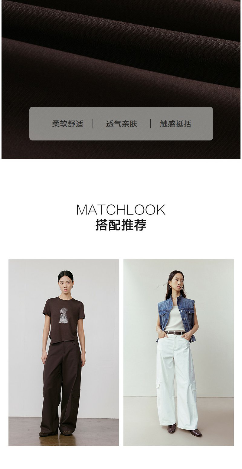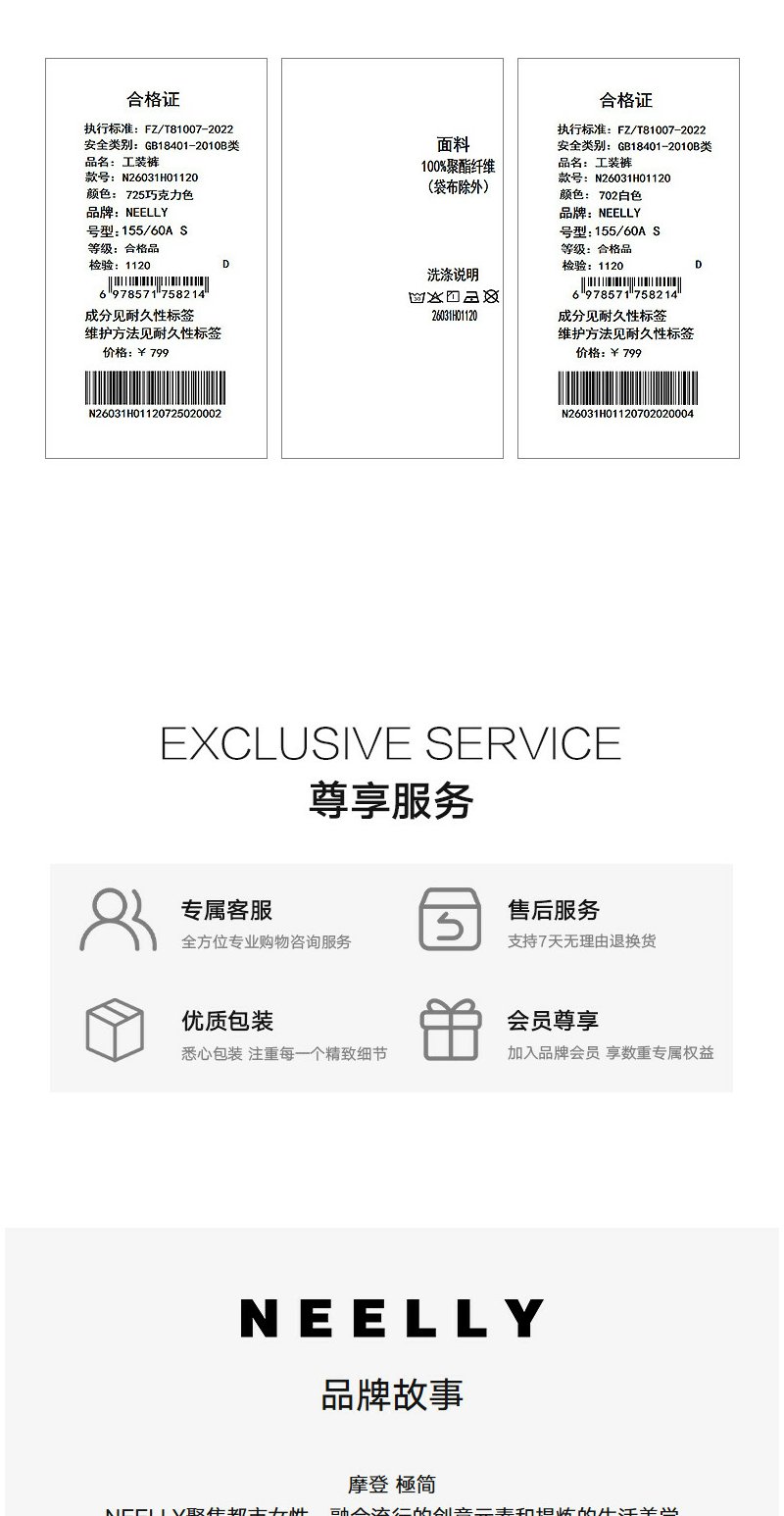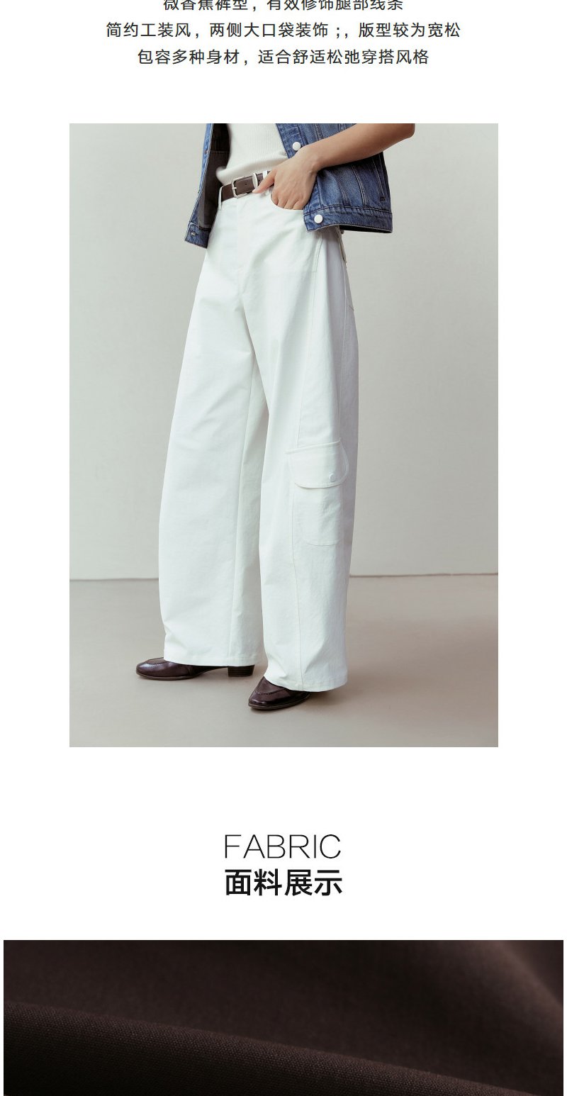 NEELLY纳俪商场同款春新款时尚休闲百搭工装阔腿裤女宽松舒适长裤N26031H01120