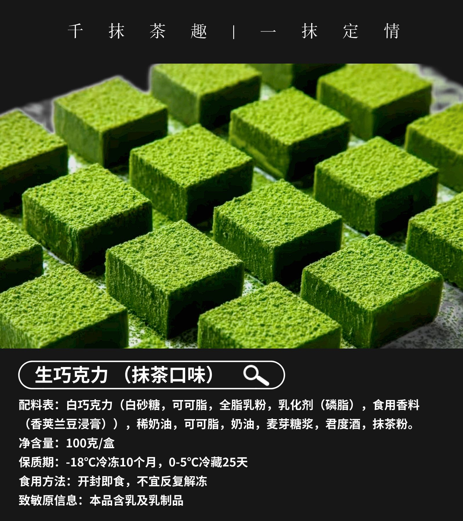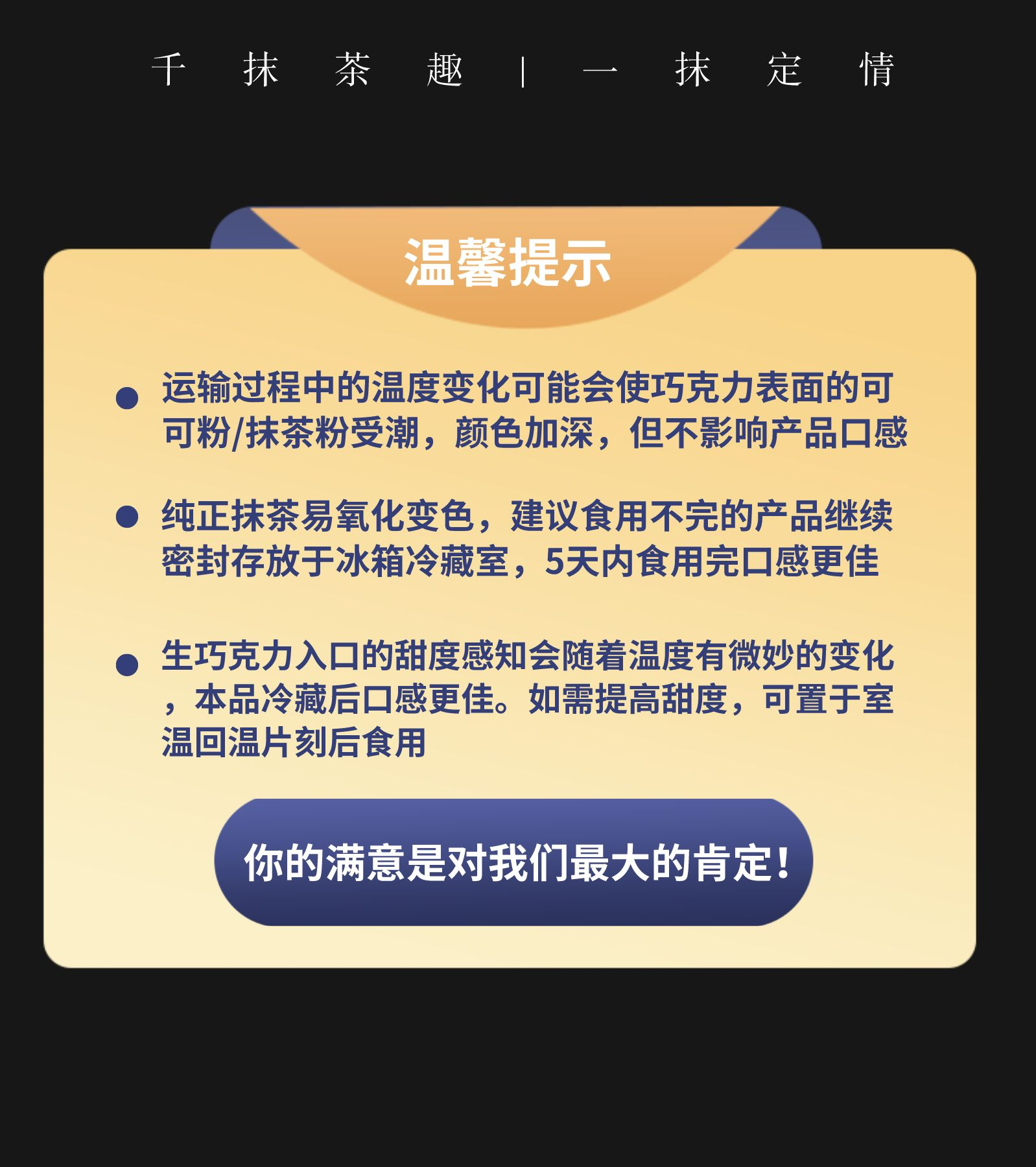 【分销】【千抹茶趣】浓醇生巧进口纯可可脂巧克力,入口即化,不出国门感受京都宇治风味。顺丰保温包邮到家。