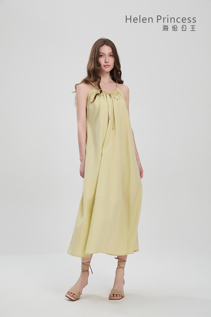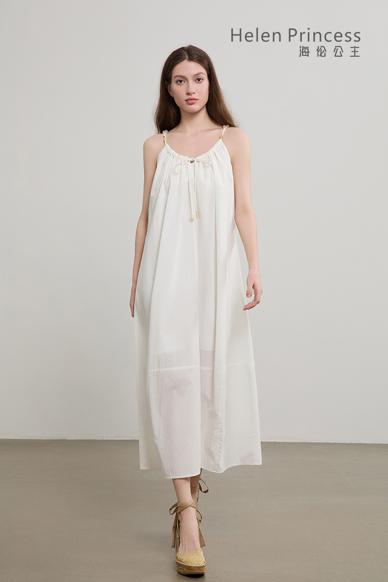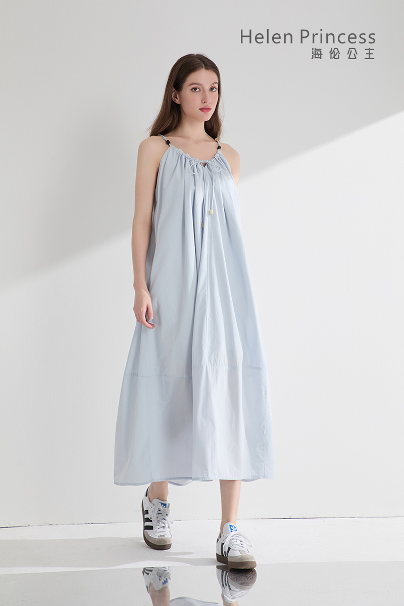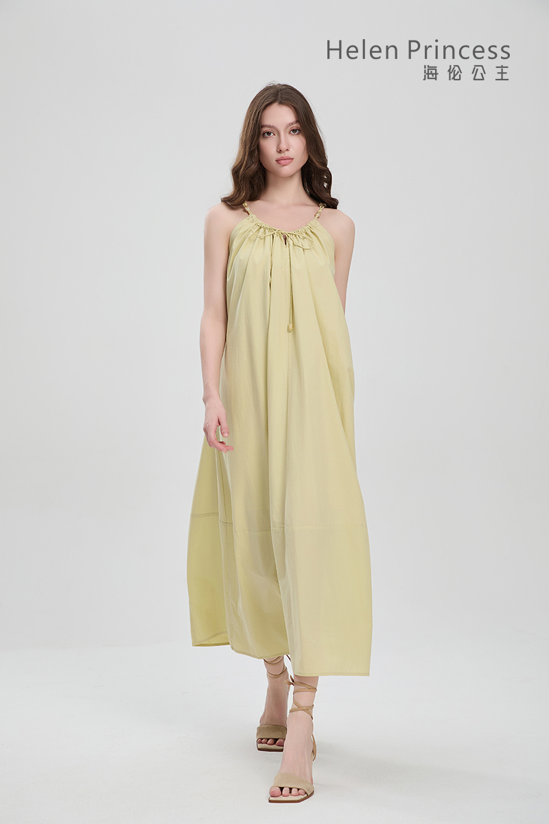 吊带设计,肩带上点缀着小巧的串珠装饰,增添了几分精美感。领口处的抽皱系带设计丰富了整体的层次感,营造出简约又浪漫的度假风氛围感,两侧有隐形口袋设计,实穿性强。