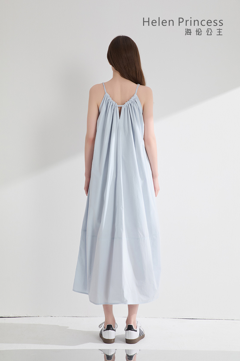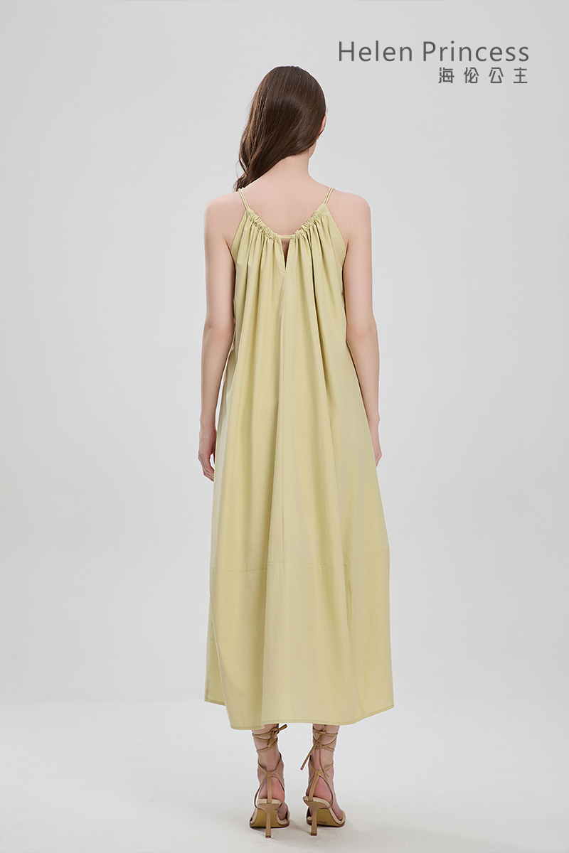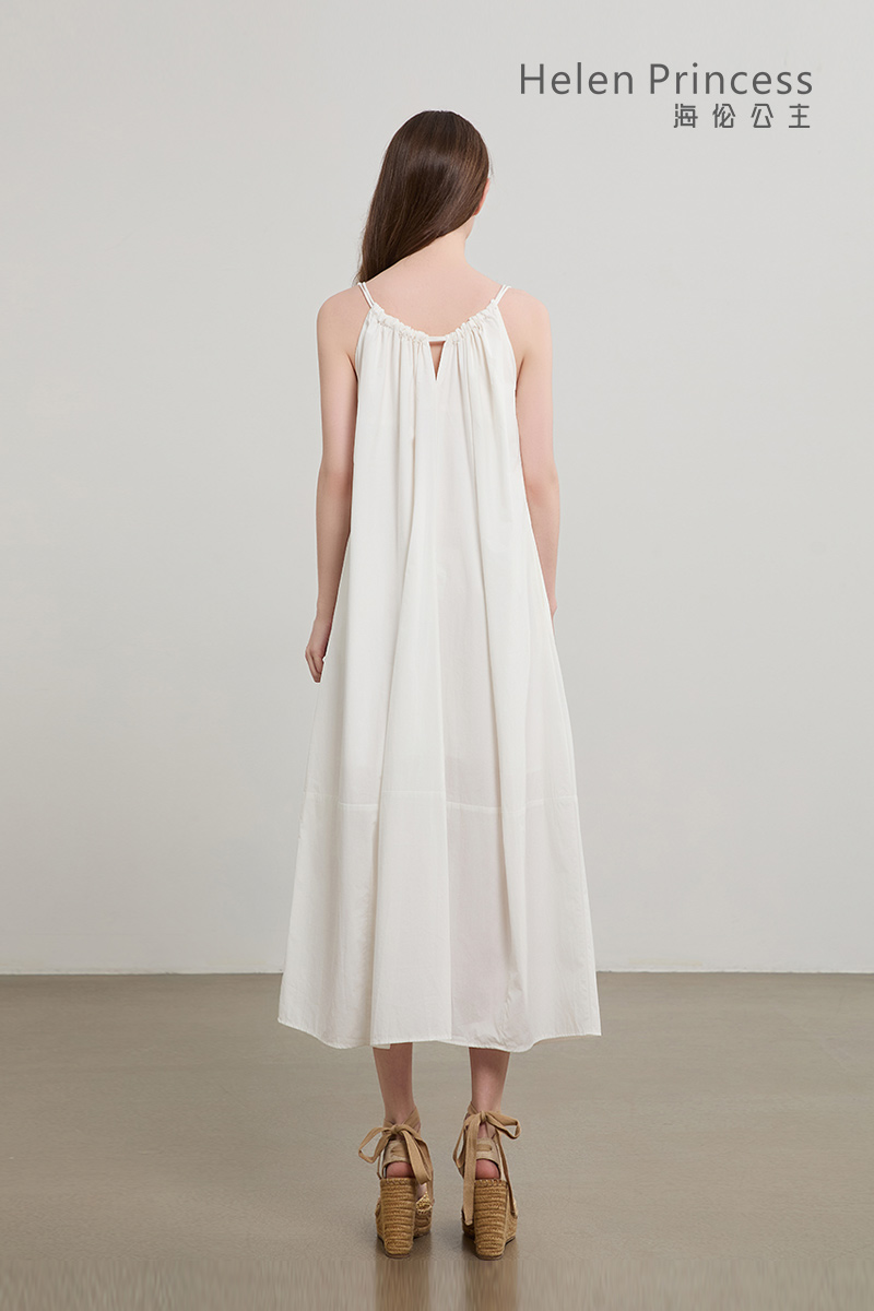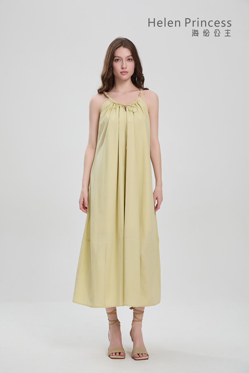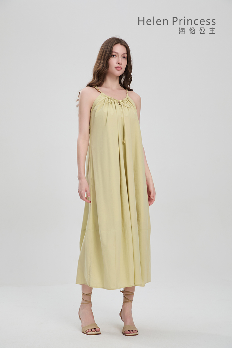 吊带设计,肩带上点缀着小巧的串珠装饰,增添了几分精美感。领口处的抽皱系带设计丰富了整体的层次感,营造出简约又浪漫的度假风氛围感,两侧有隐形口袋设计,实穿性强。