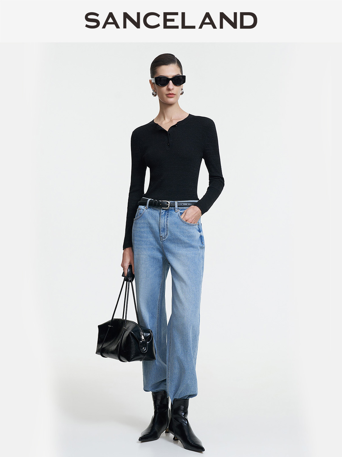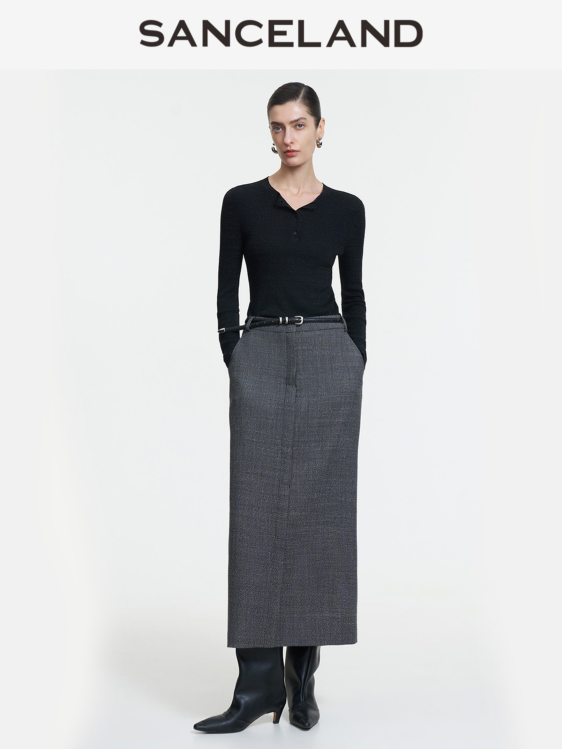三石一澜SANCELAND女装精纺绵羊毛圆领毛衫打底SK11801050