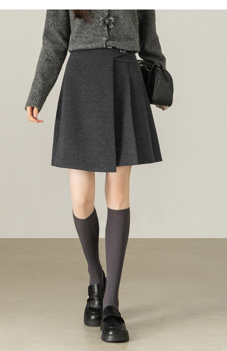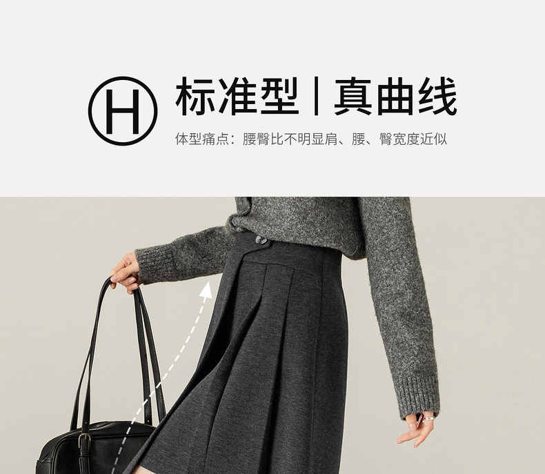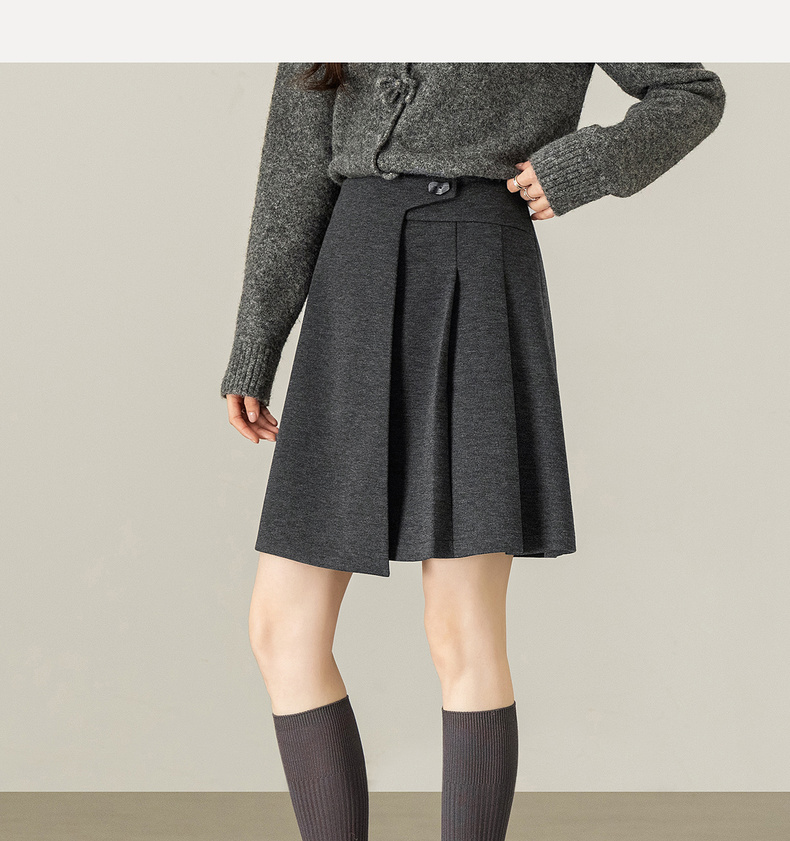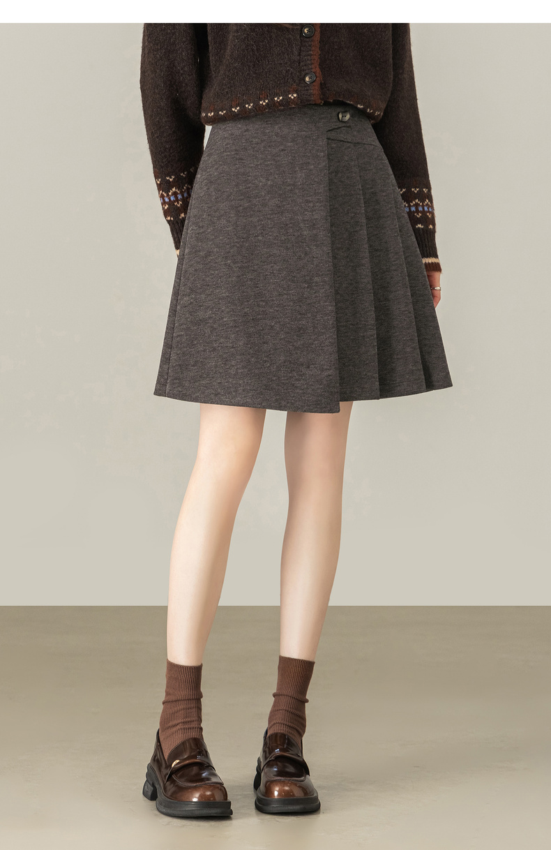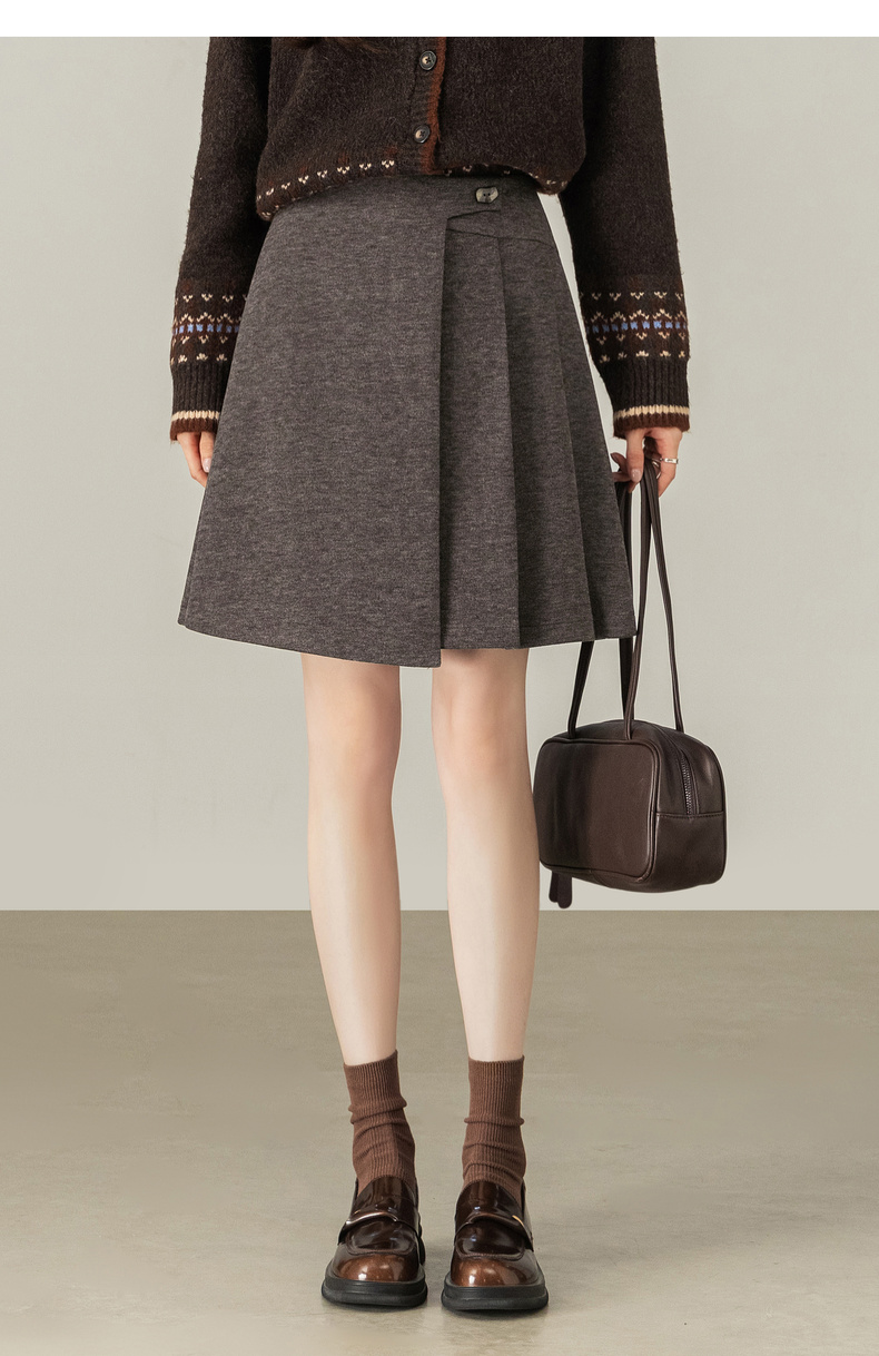 【内购】【含绵羊毛含醋酸】小个子通勤高腰压褶藏肉显瘦厚毛呢短款百褶裙-154QB4853