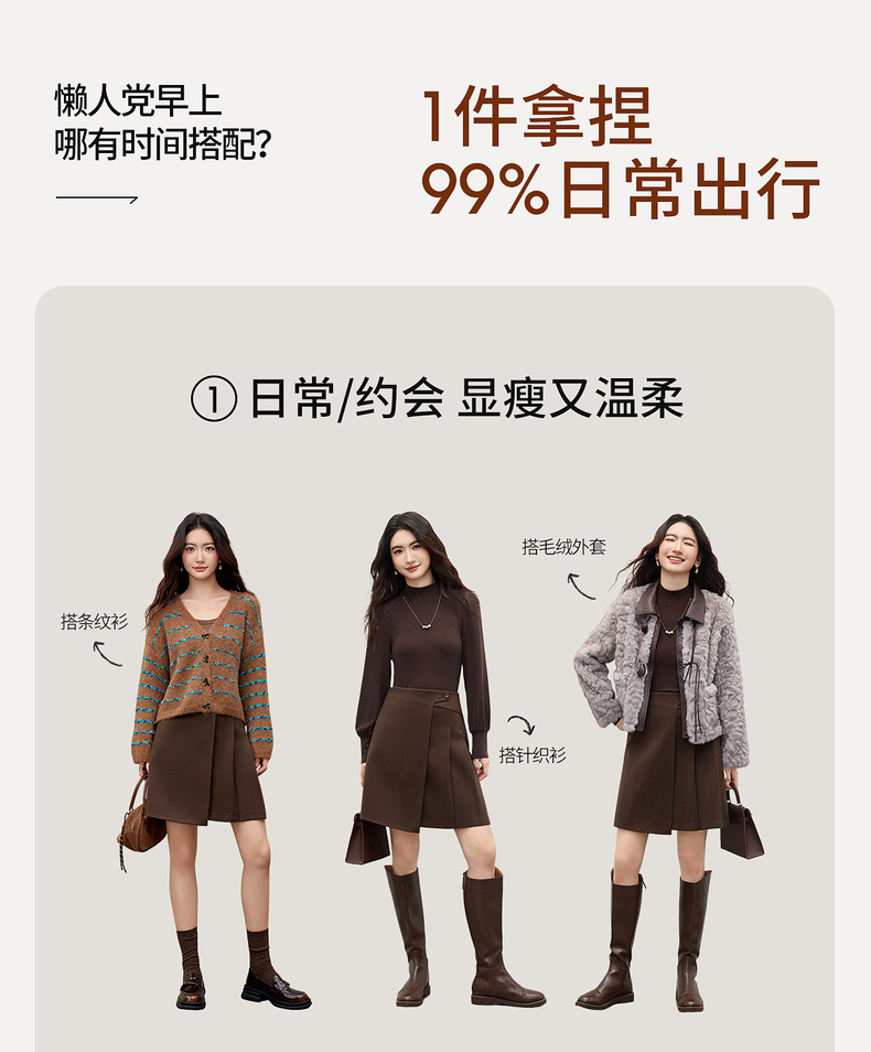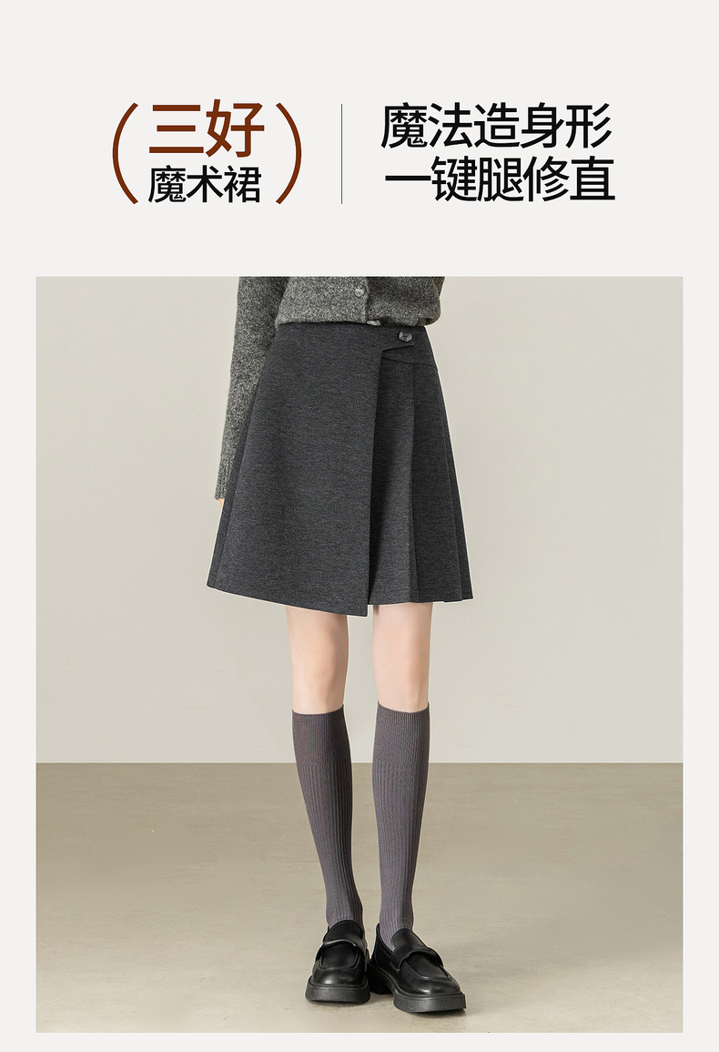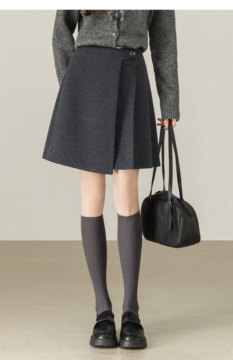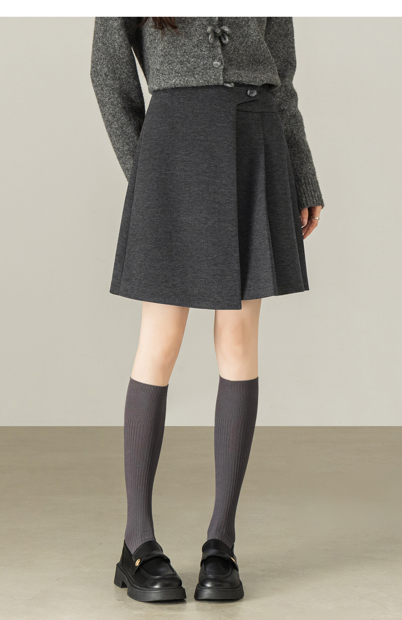 【内购】【含绵羊毛含醋酸】小个子通勤高腰压褶藏肉显瘦厚毛呢短款百褶裙-154QB4853