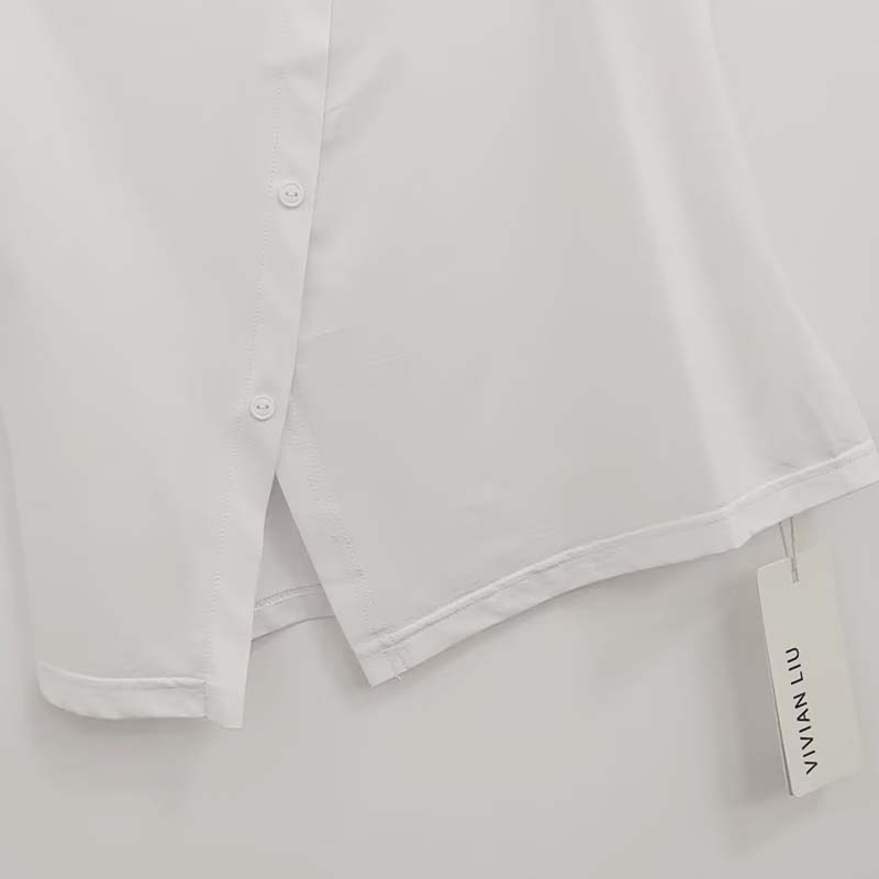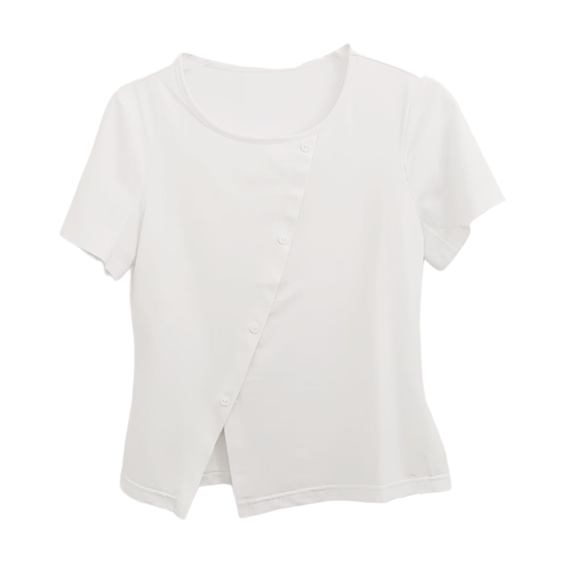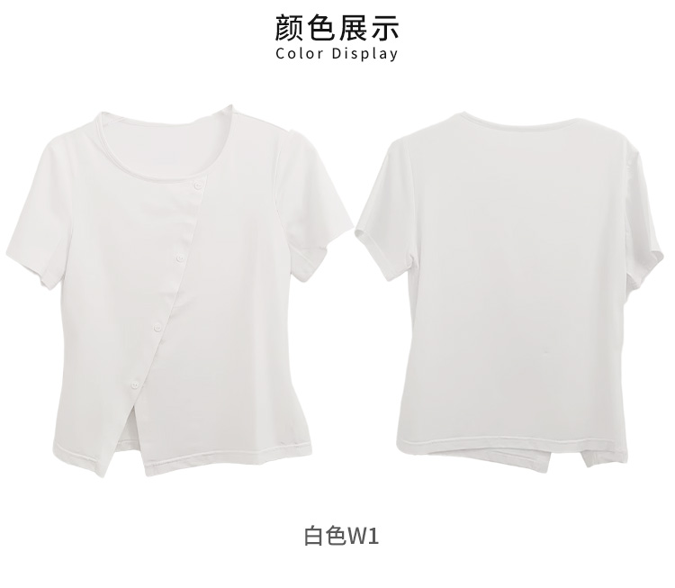VIVIAN LIU薇薇安刘D2457310 夏季新款圆领斜排纽扣短袖针织T恤