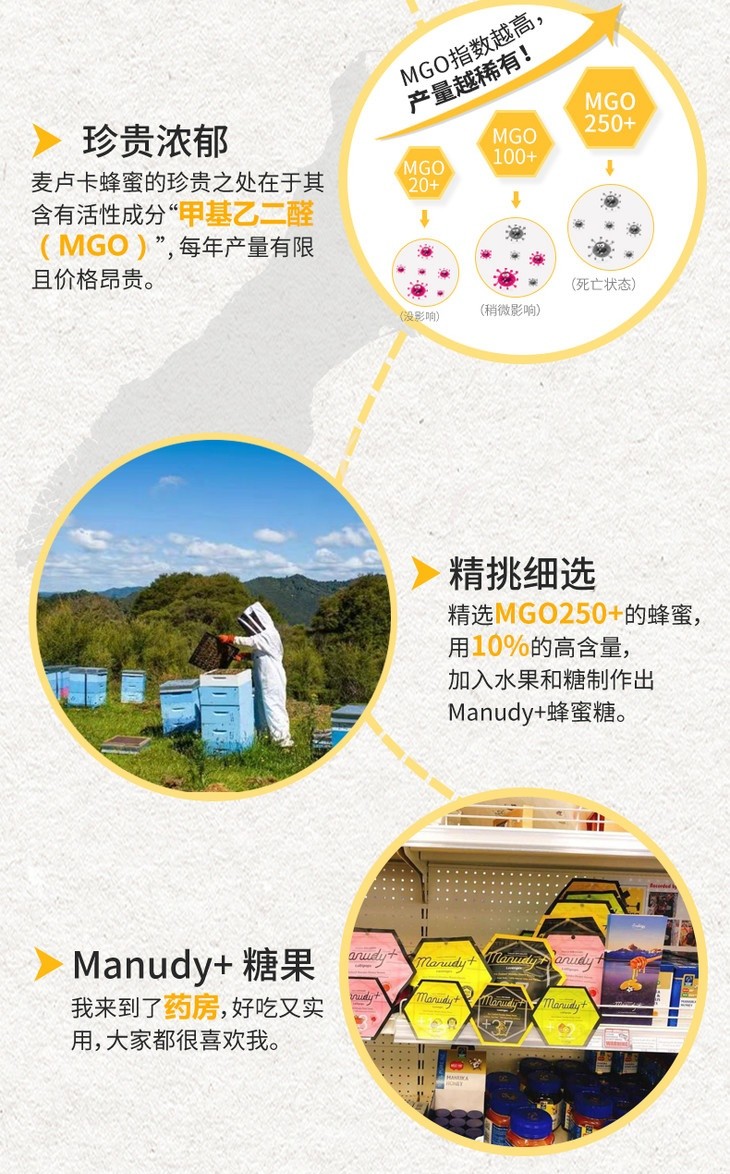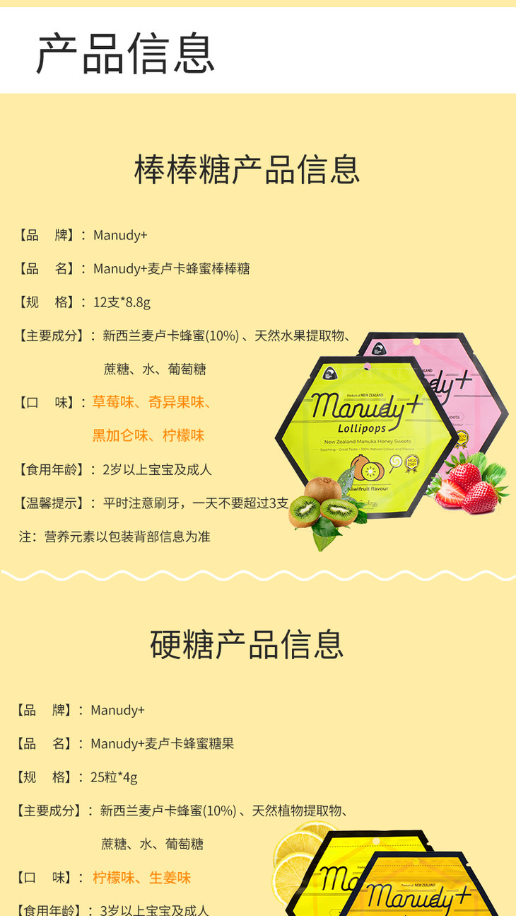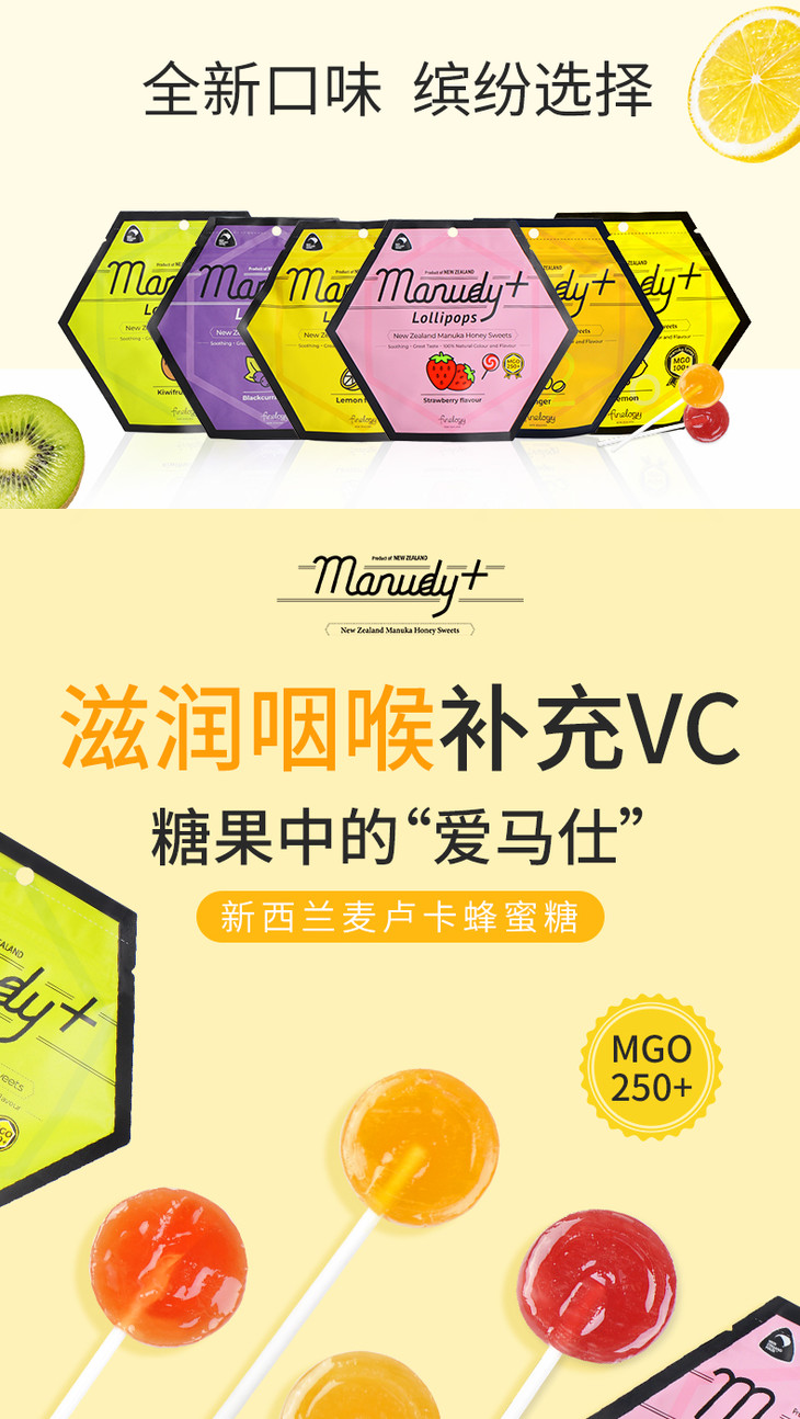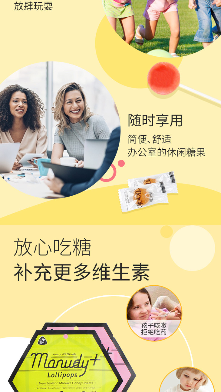 新西兰Manudy+麦卢卡蜜蜂棒棒糖儿童成人零食糖果