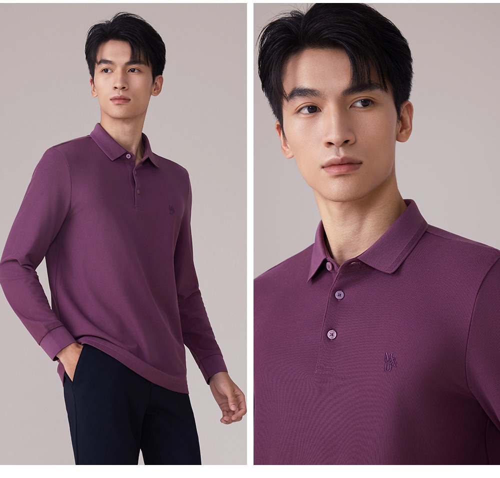MD名盾男士翻领长袖POLO衫商务休闲秋季新款修身桑蚕丝混纺打底衣