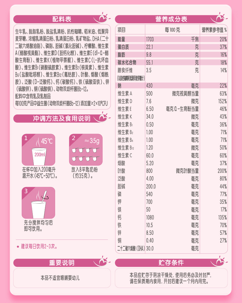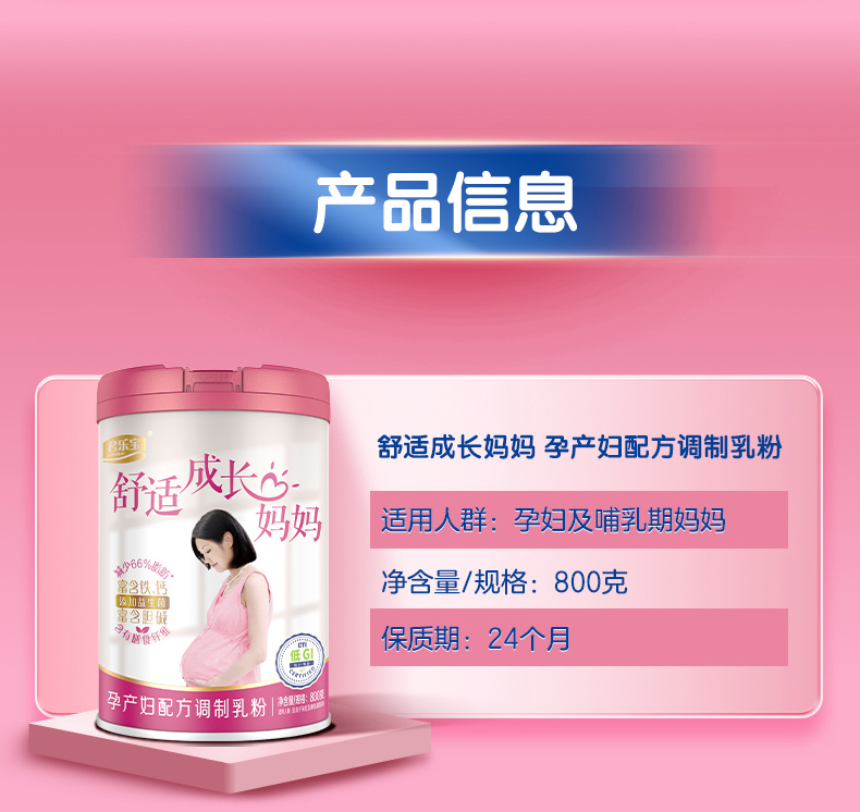 君乐宝舒适成长妈妈孕产妇配方调制乳粉听装800g