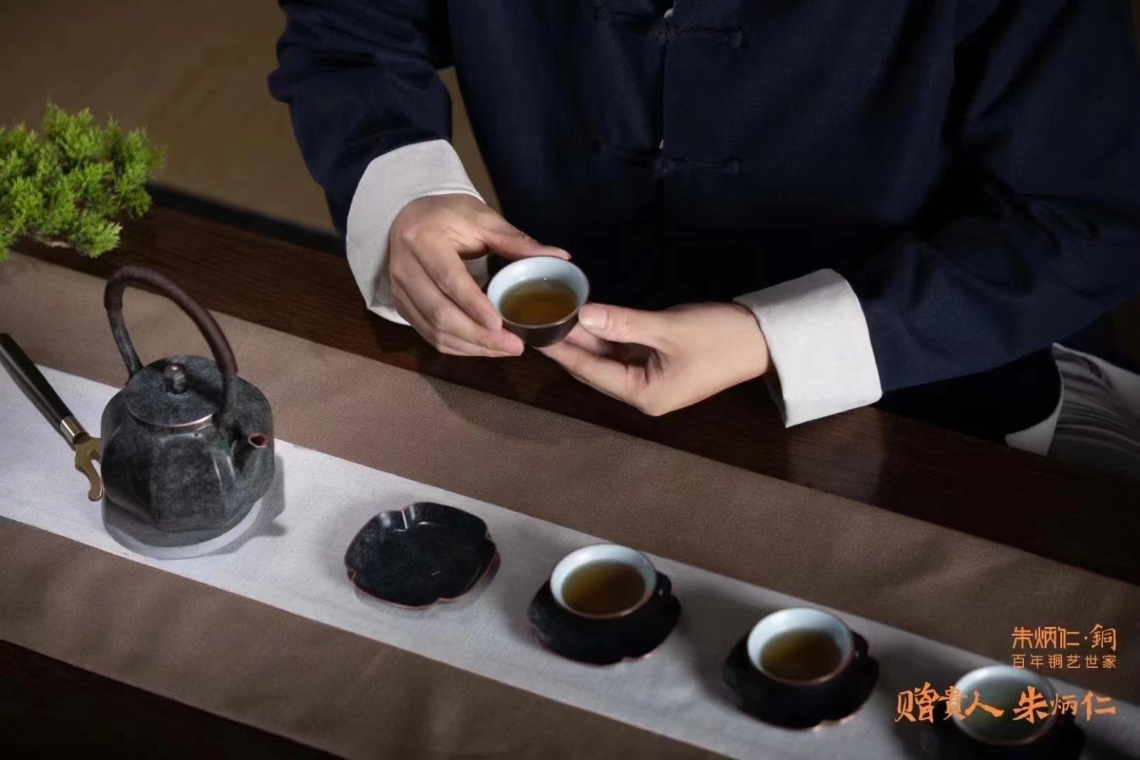 朱炳仁铜 大雅君子茶礼套装 铜器铜壶香插喝茶礼盒 儒学 非遗礼品