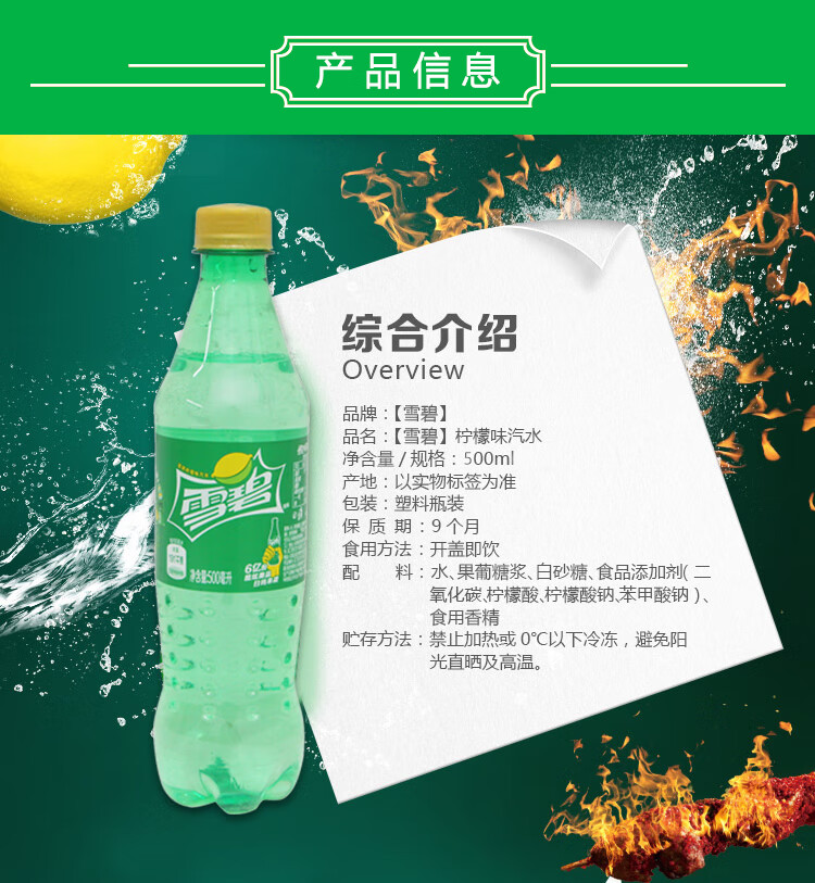 雪碧(Sprite) 清爽柠檬味汽水 柠檬味 500ml/瓶