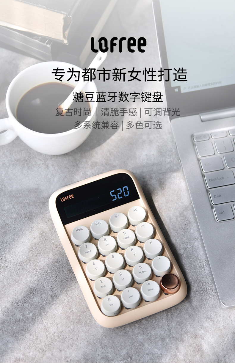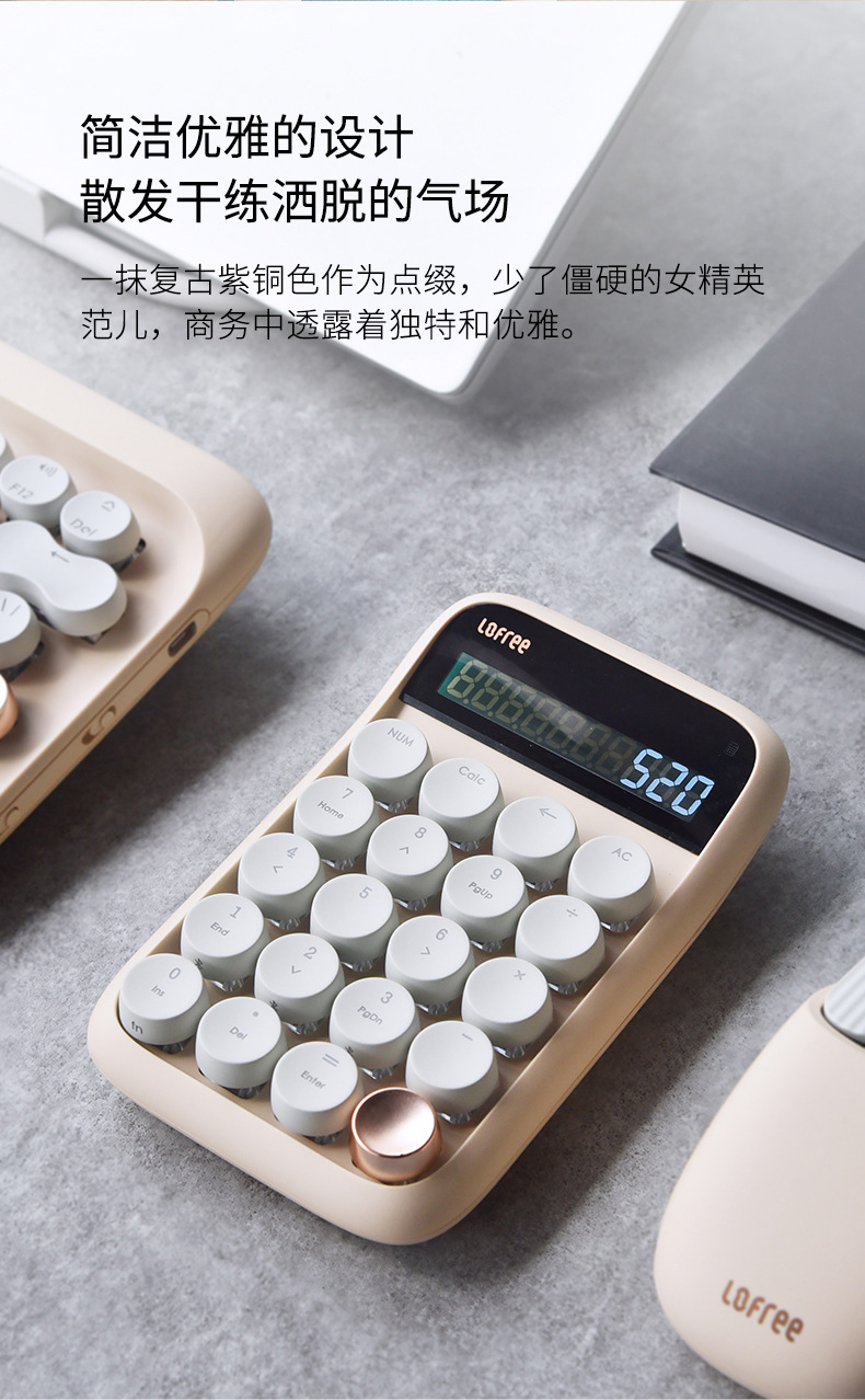 洛斐蓝牙计算器EH113-奶茶 多功能无线数字小键盘个性礼品