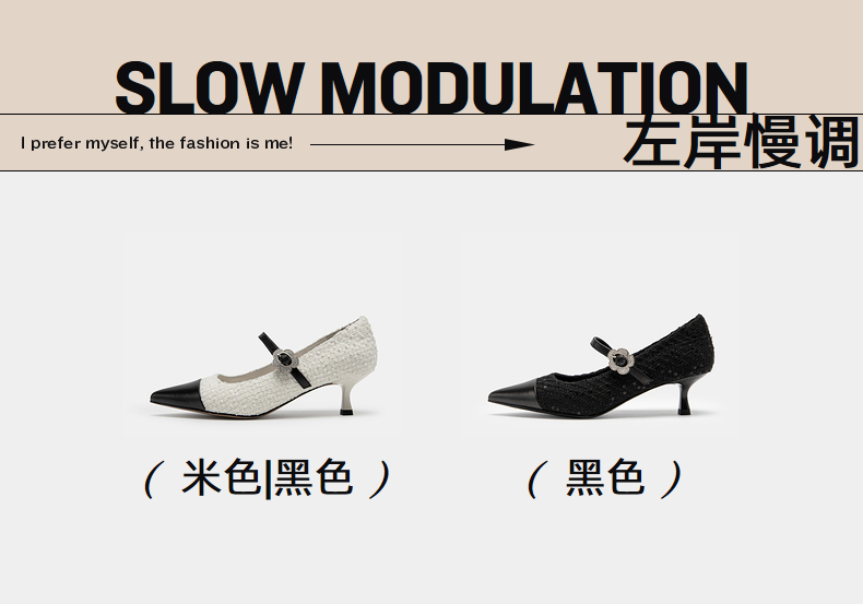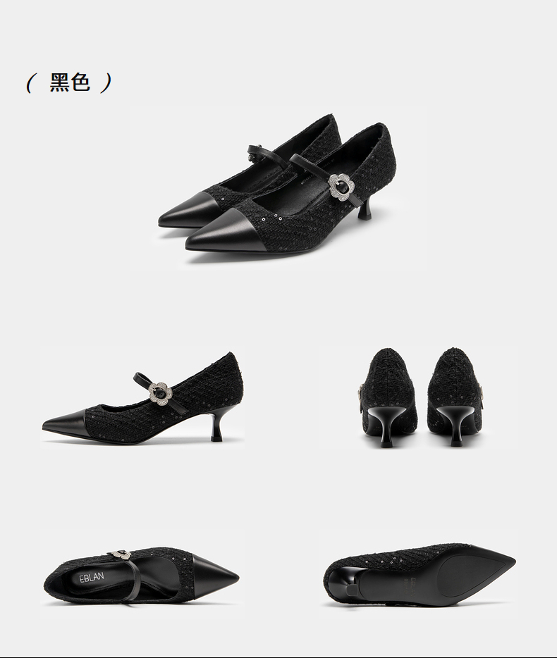 伊伴秋季女鞋小香风单鞋高跟鞋尖头气质通勤鞋细跟单鞋B23421178