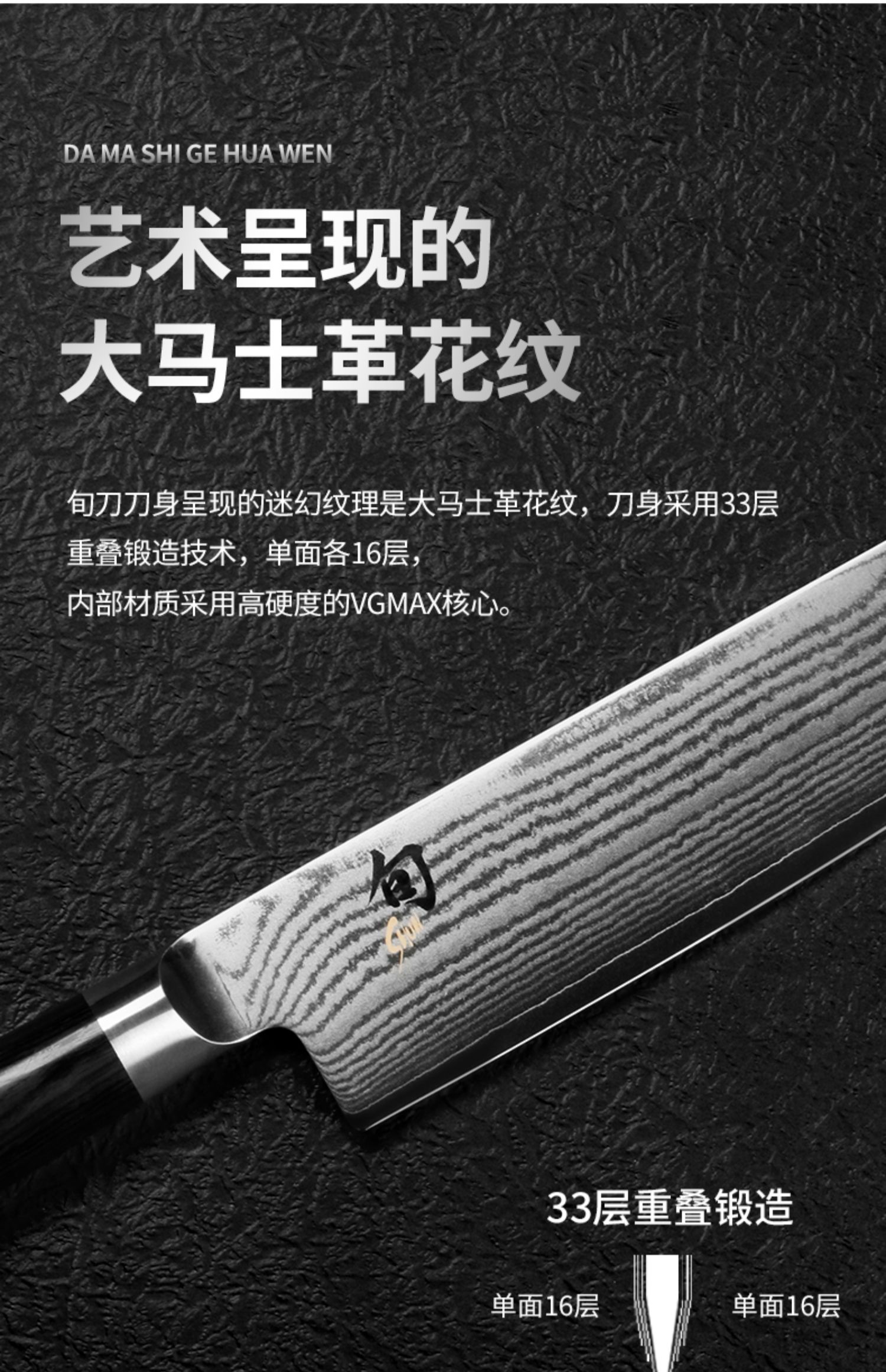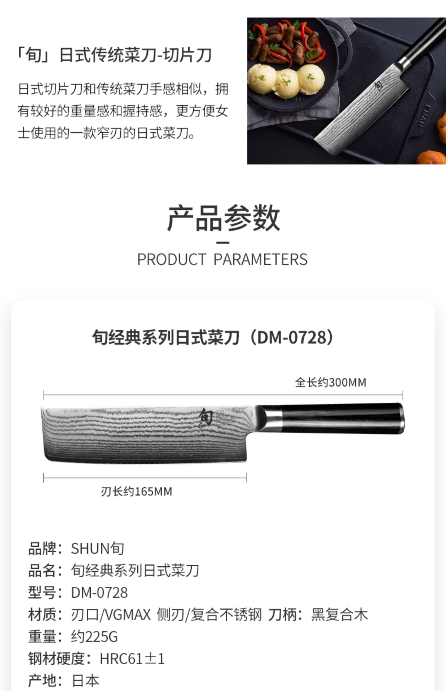旬刀日本进口大马士革钢日式菜刀切菜切肉片多功能刀