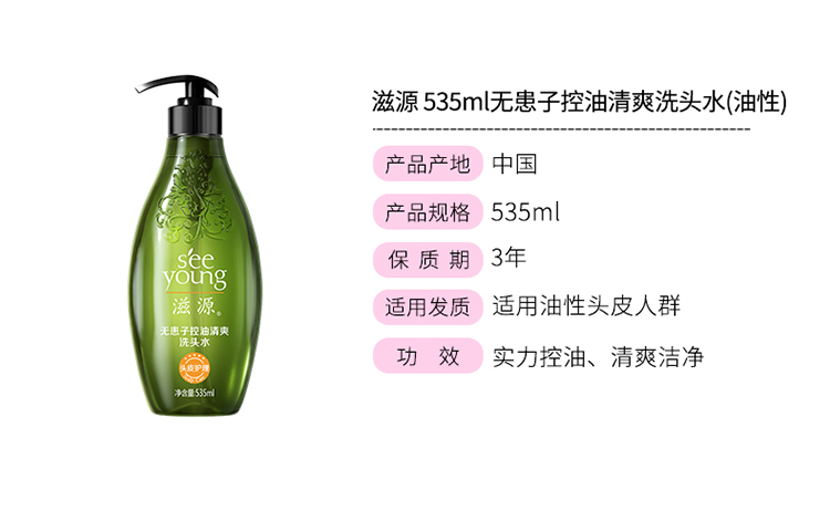 滋源丨 无患子控油清爽洗头水 535ml/瓶(油性)