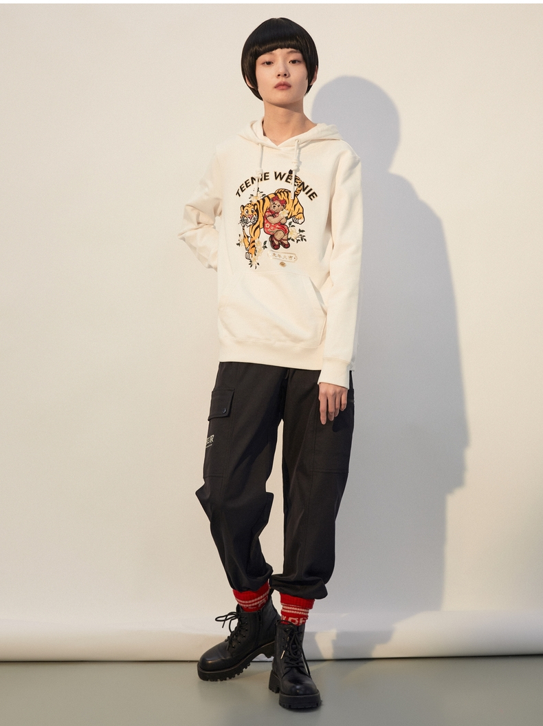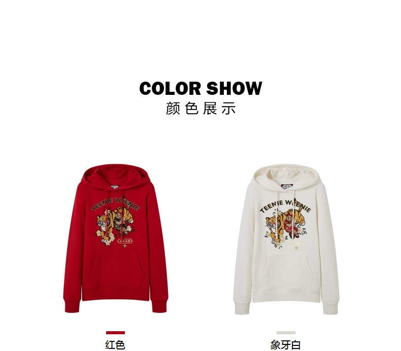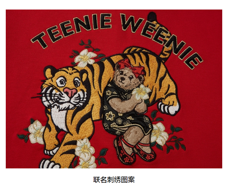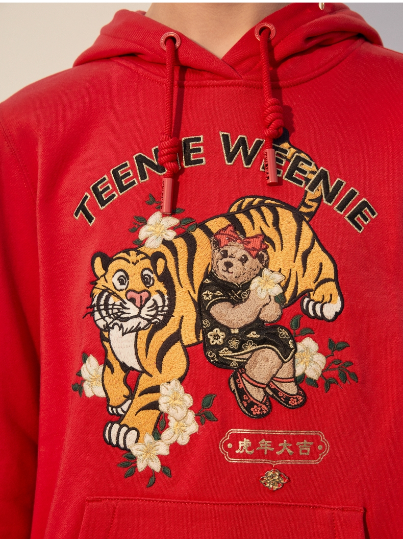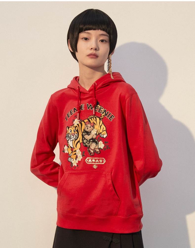 TeenieWeenie小熊春季新款国潮卡通刺绣红色连帽卫衣TTMW221103L