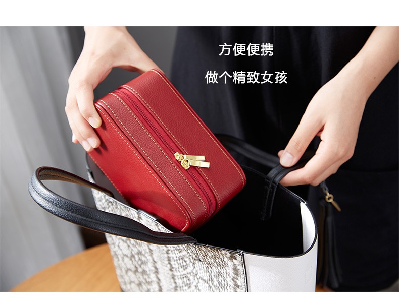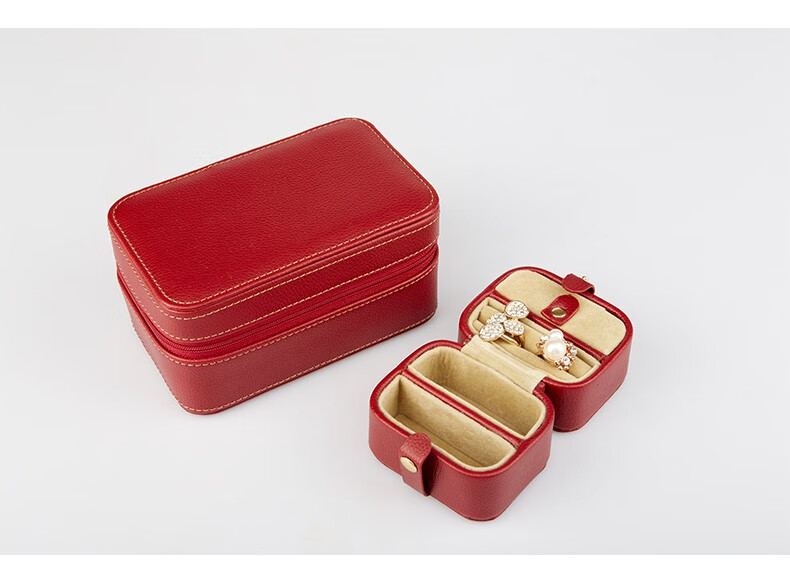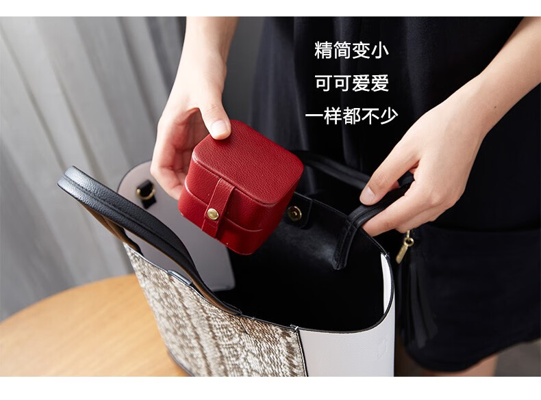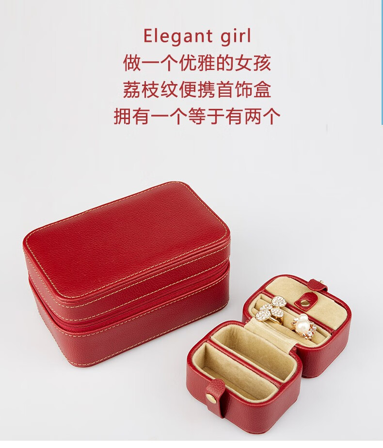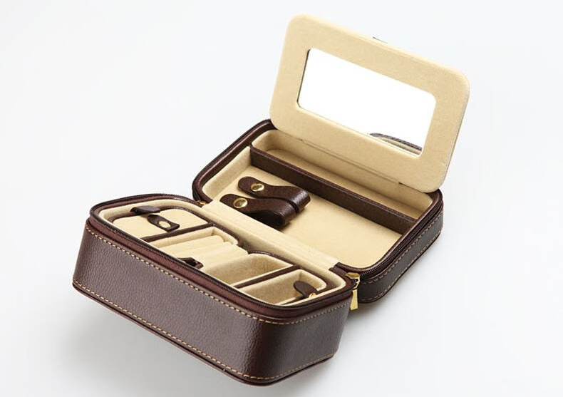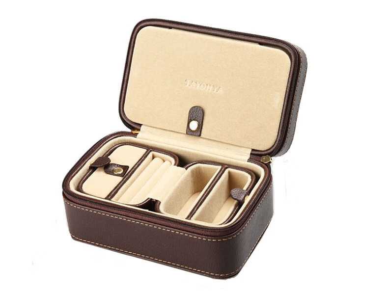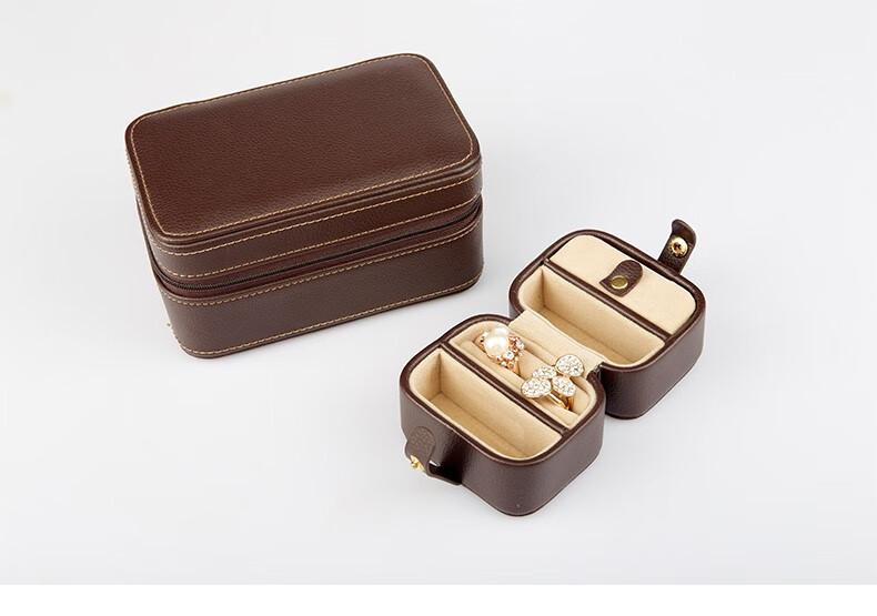 【多样屋专柜】多样屋PU革荔枝纹携带首饰盒两件套 化妆盒饰品项链盒礼物/咖啡