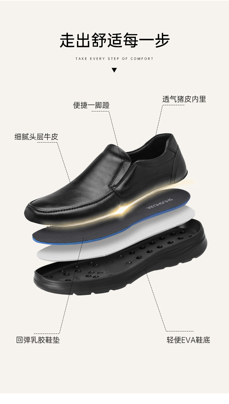【轻便一脚蹬皮鞋】通勤商务正装皮鞋 快速穿脱牛皮皮鞋