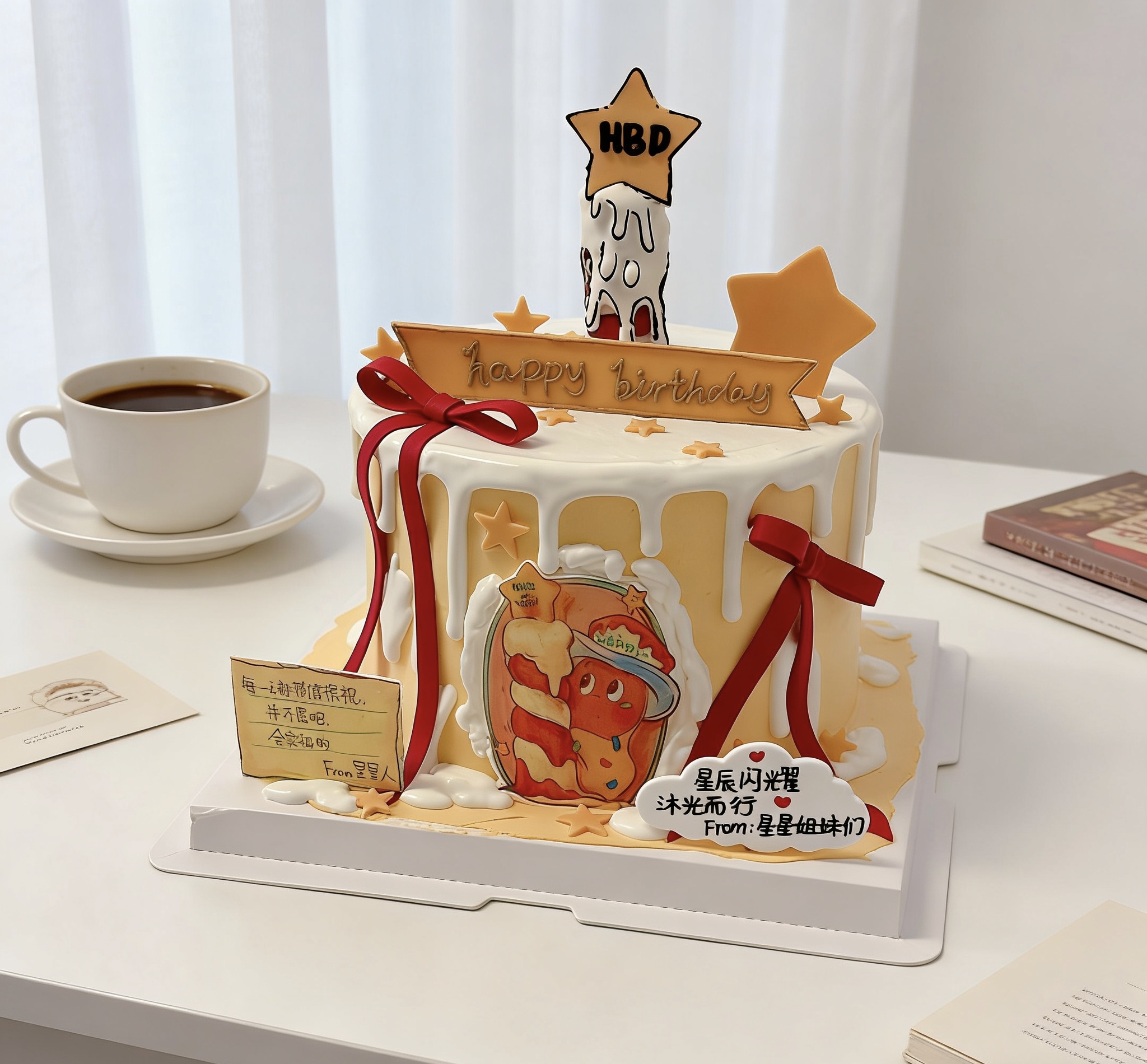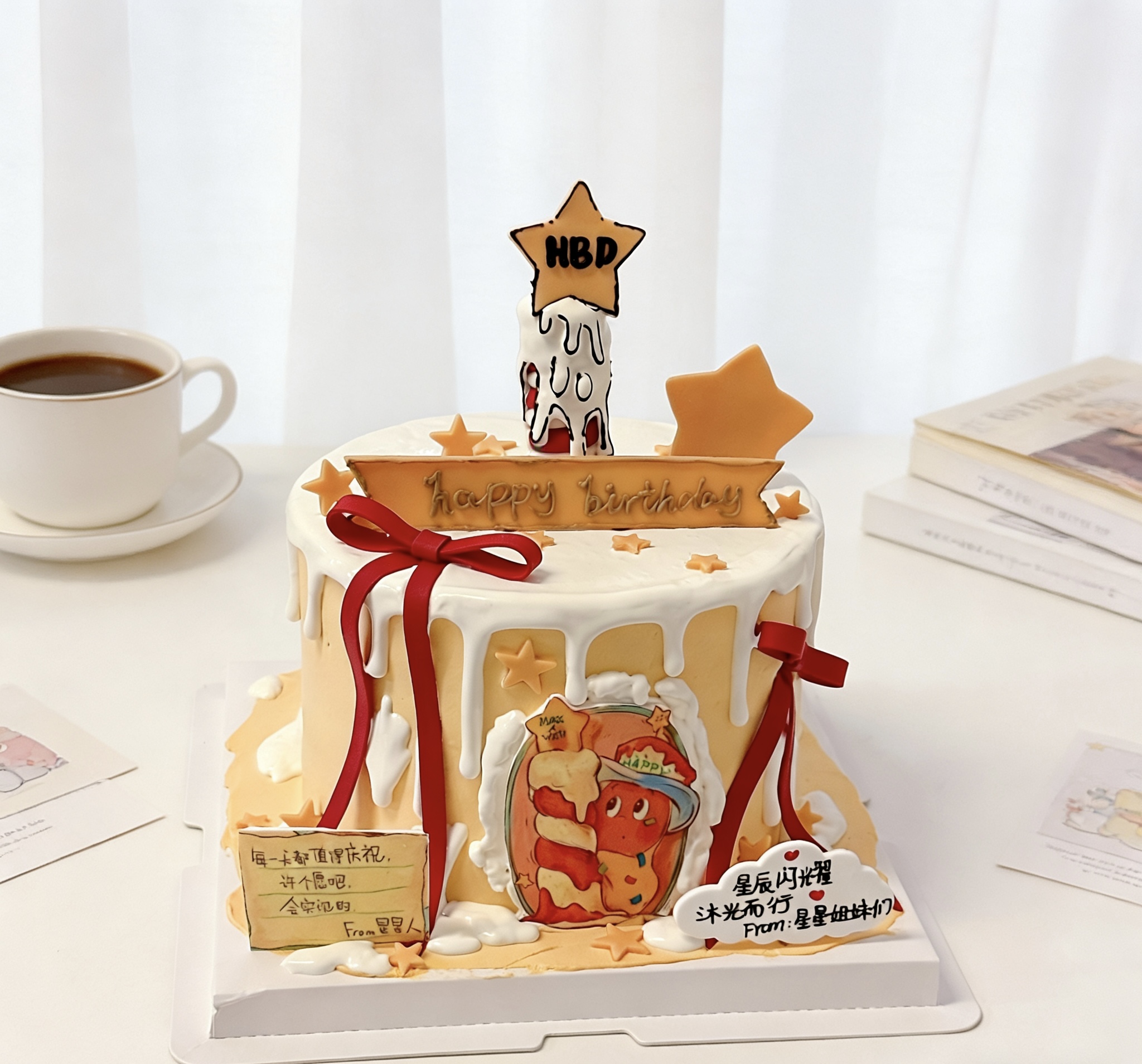 星星人蜡烛蝴蝶结卡通蛋糕-低糖处理无添加