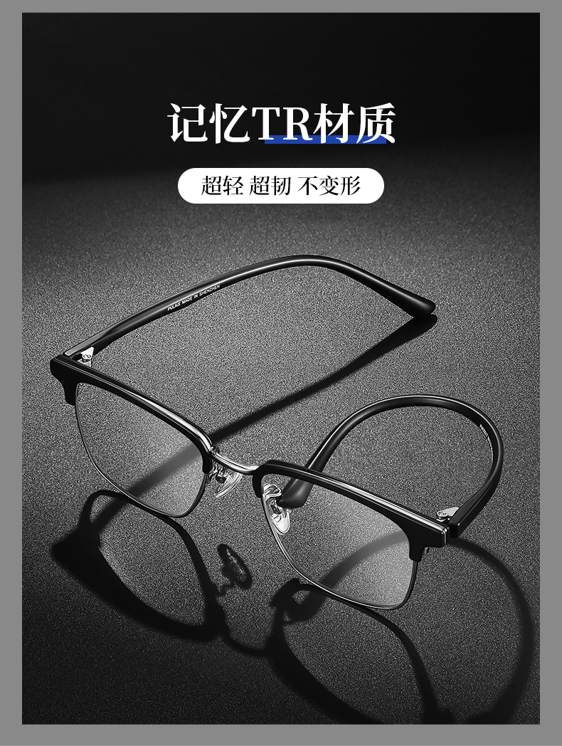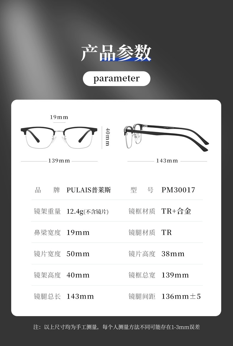 普莱斯光学镜框PT19651 商务经典 超轻钛架 经典半框 双色可选