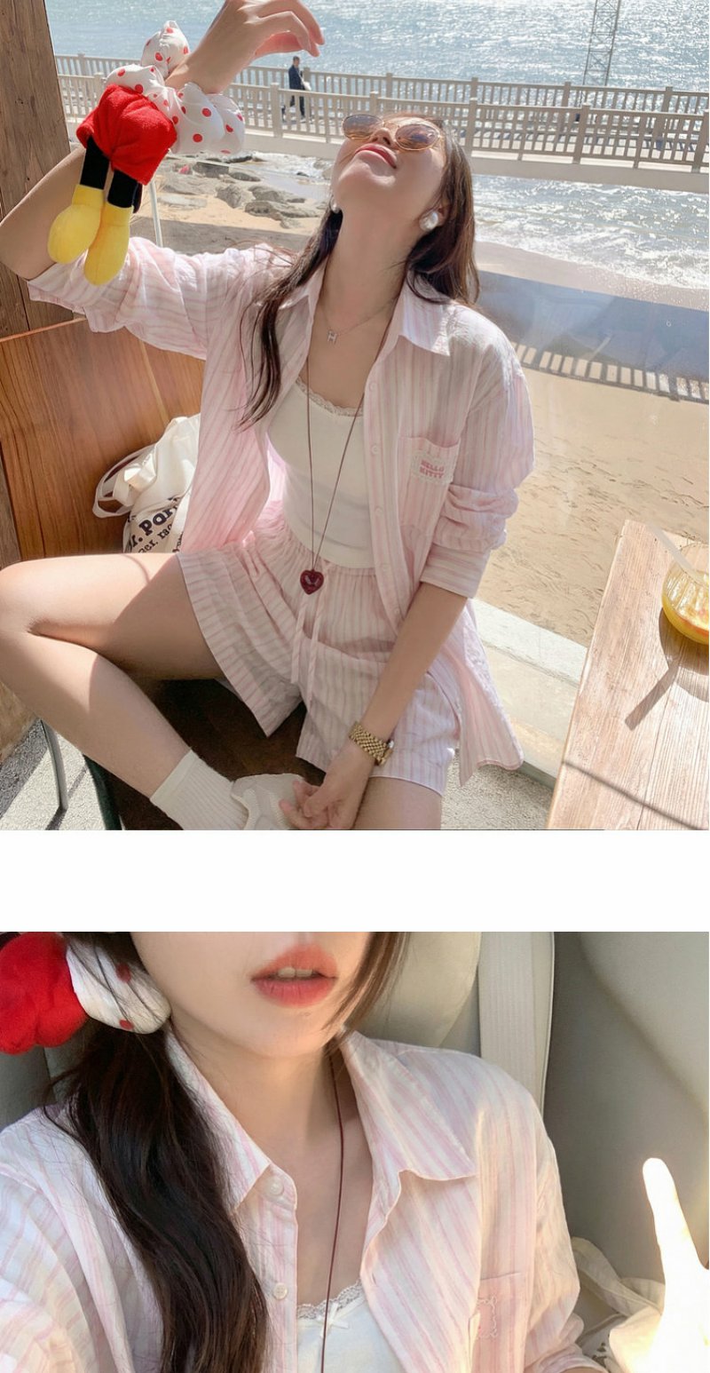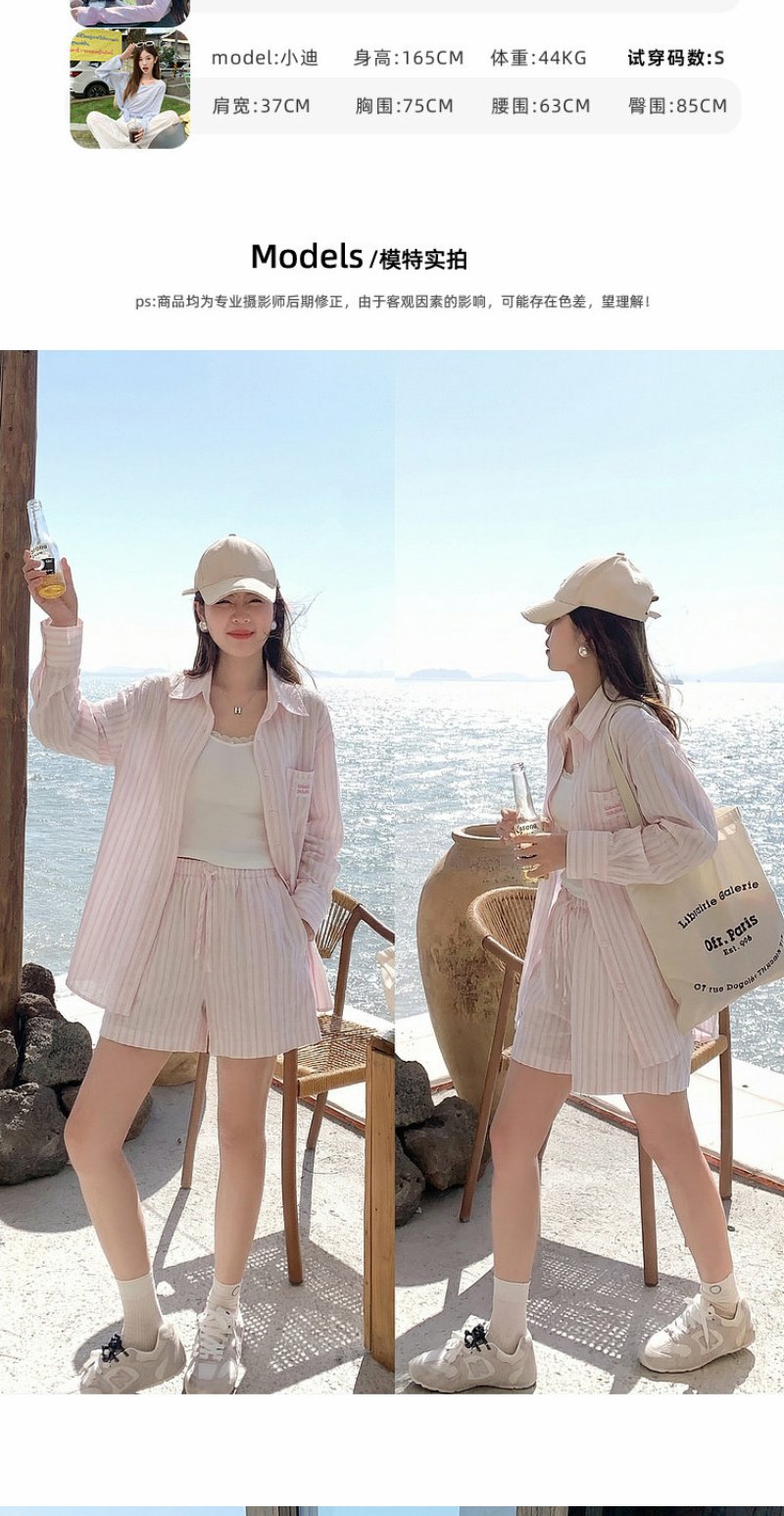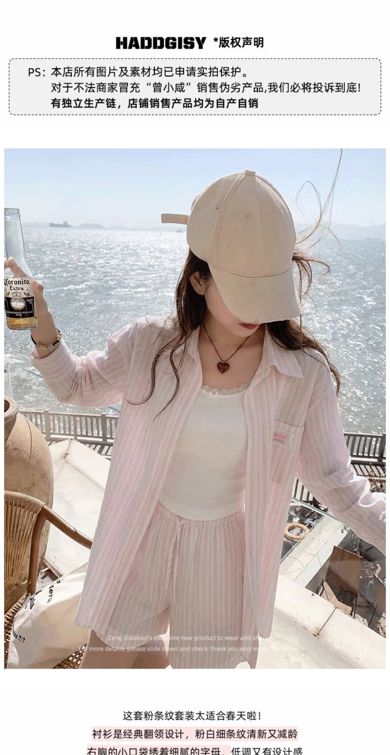 <曾小咸推荐>粉色少女条纹衬衫套装【预售7-15天发货】
