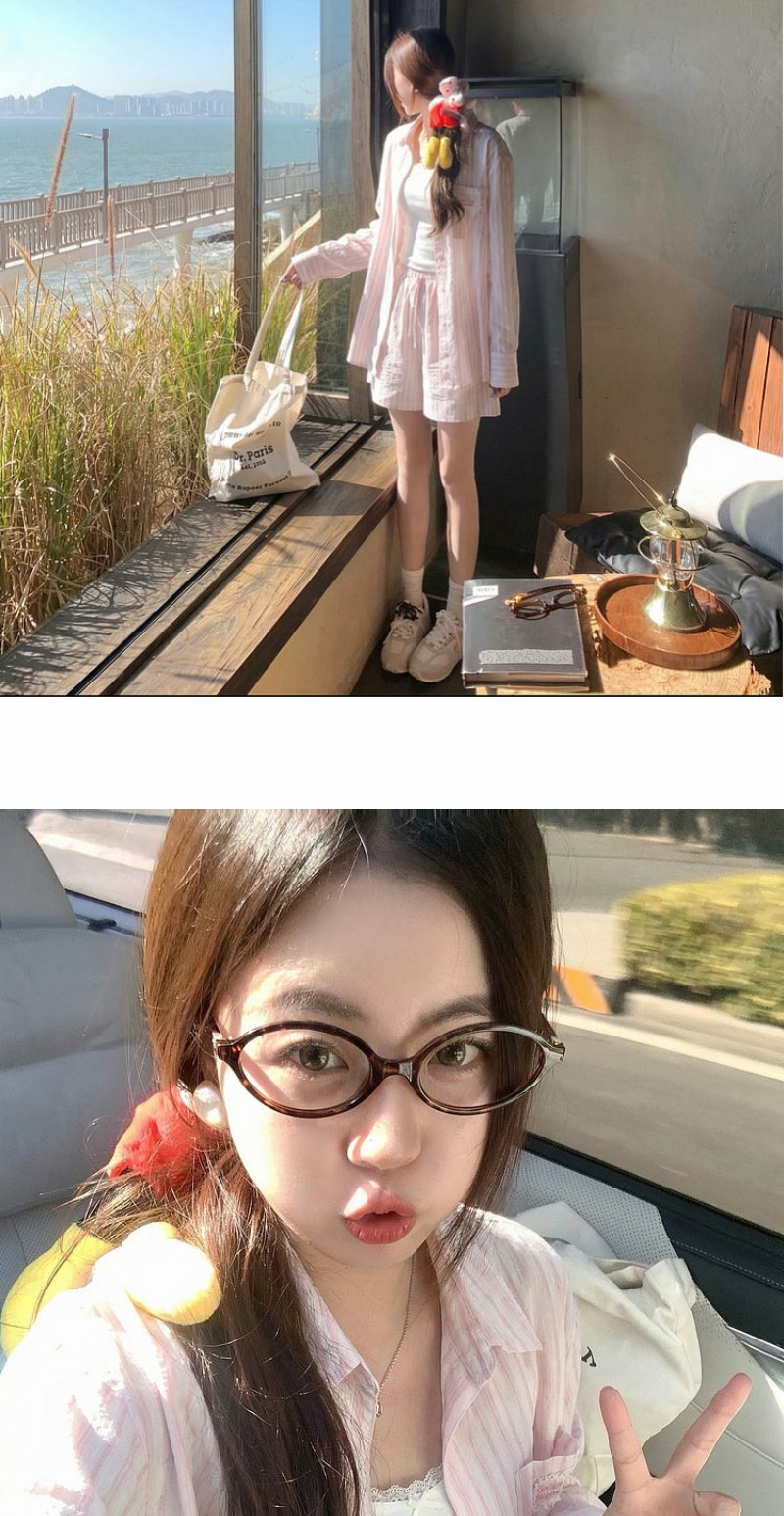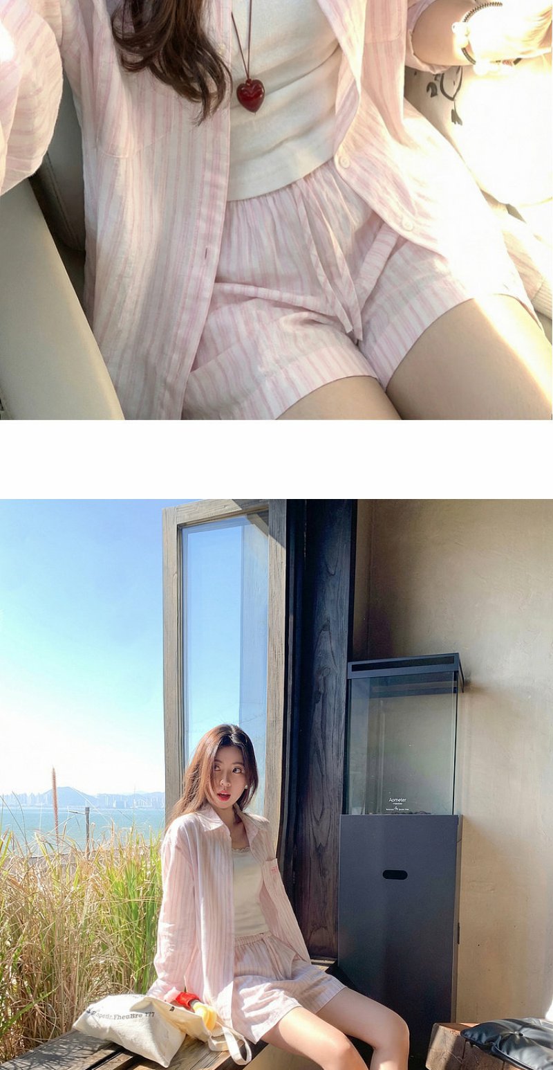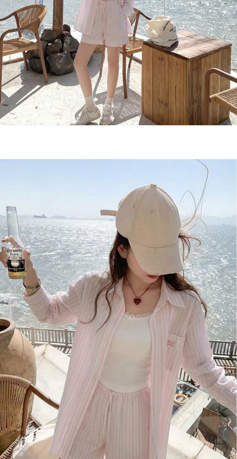 <曾小咸推荐>粉色少女条纹衬衫套装【预售7-15天发货】