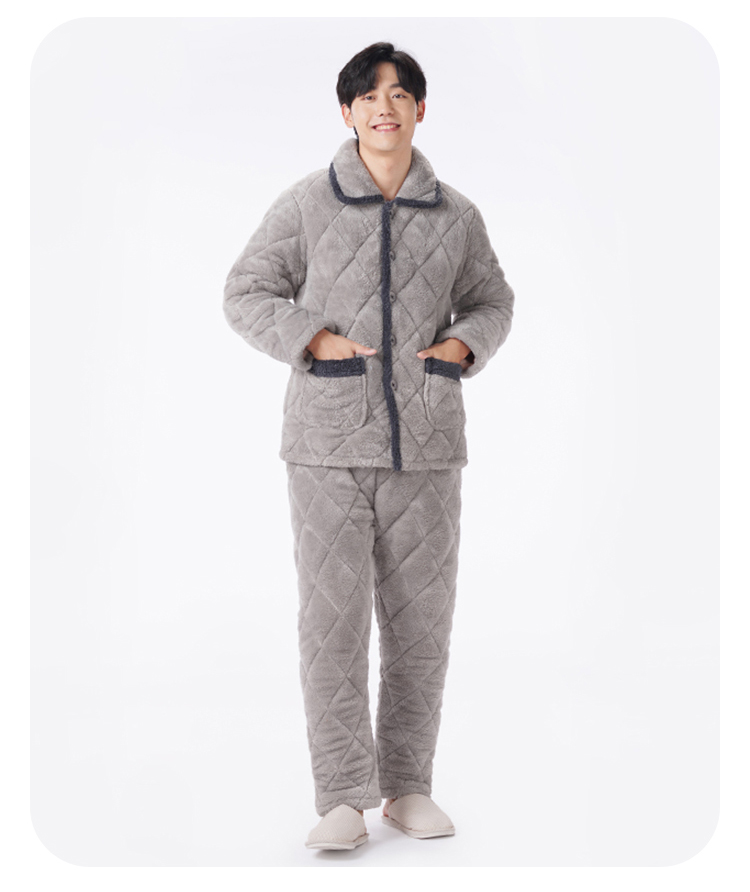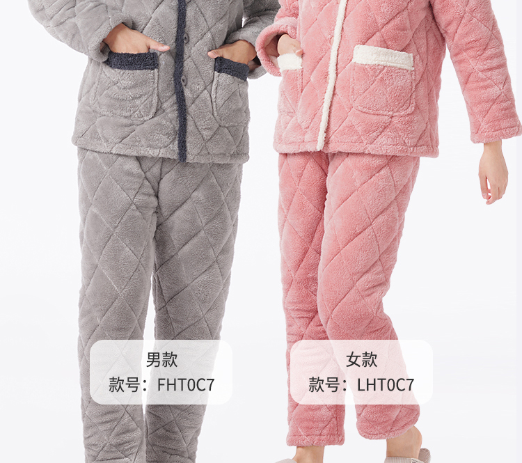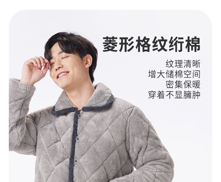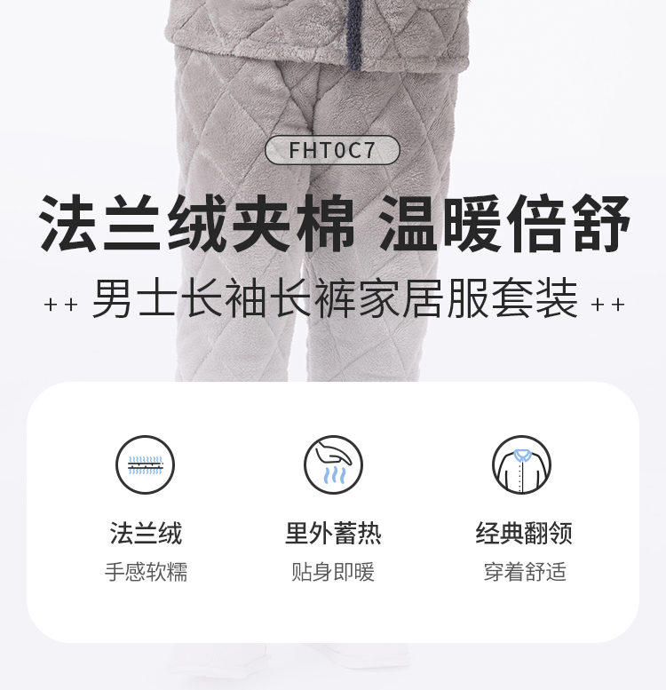 都市丽人都市锋尚睡衣亲情蜜语长袖法兰绒夹棉加厚男士加夹棉套装FHT0C7