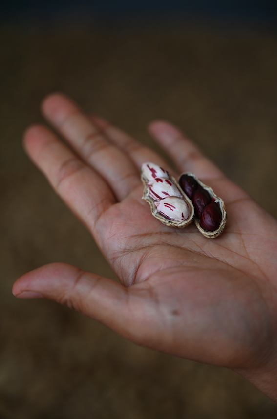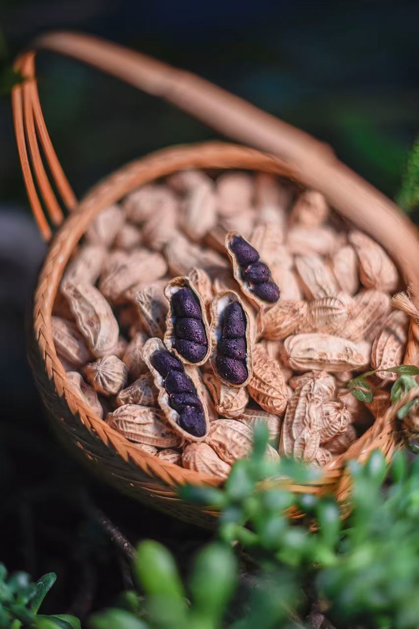 又叫“七彩野地花生”,生长于缅甸,产量不多,果仁身披奇妙彩色外衣属珍稀品种。