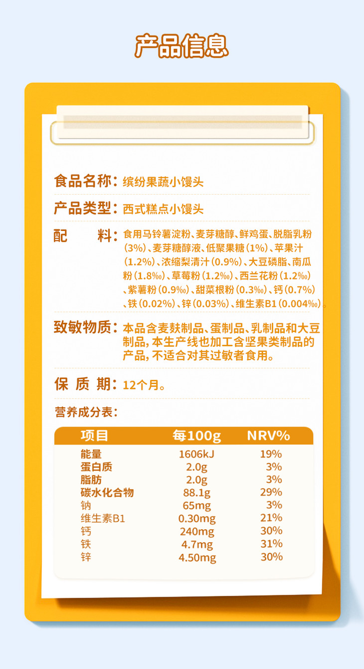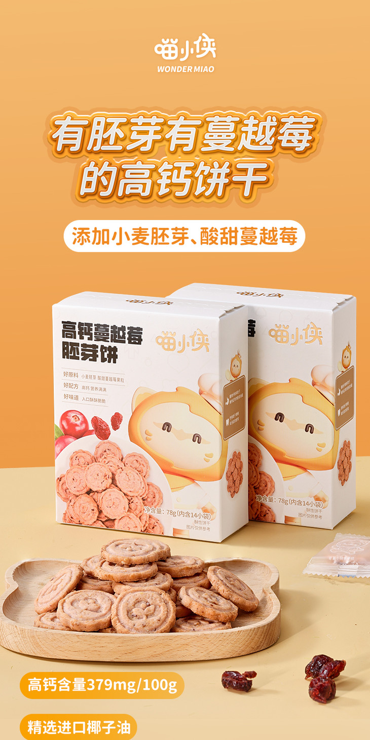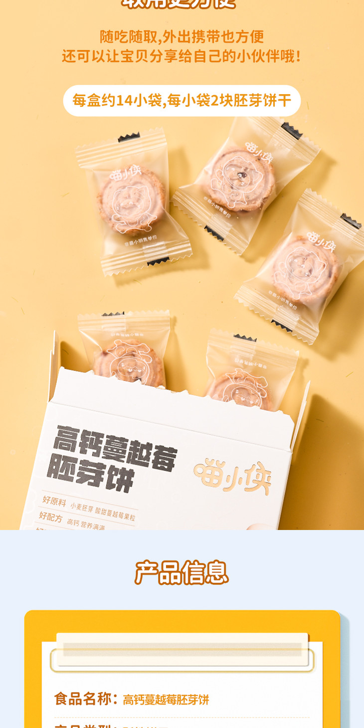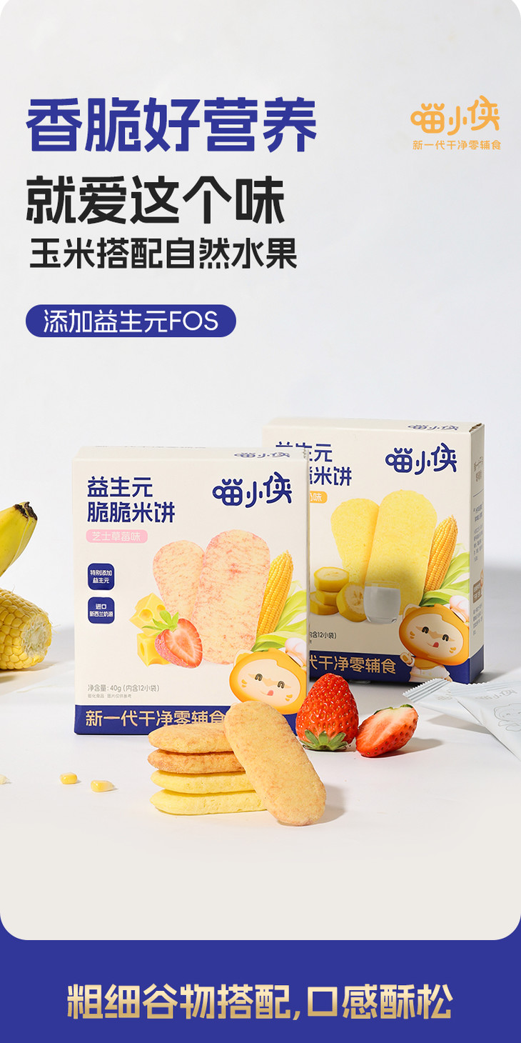 【39.9任选4件| 单件不发】喵小侠益生元脆脆米饼40g/缤纷果蔬小馒头100g/生牛乳奶米饼24g/蔓越莓胚芽饼78g/高钙谷物棒30g加铁胚芽面175g