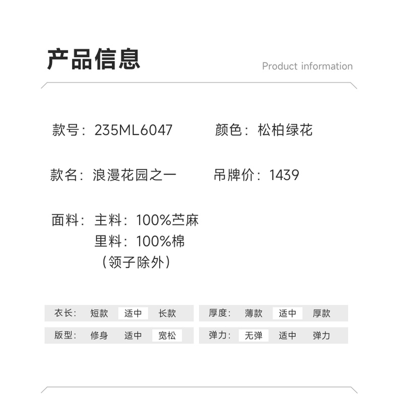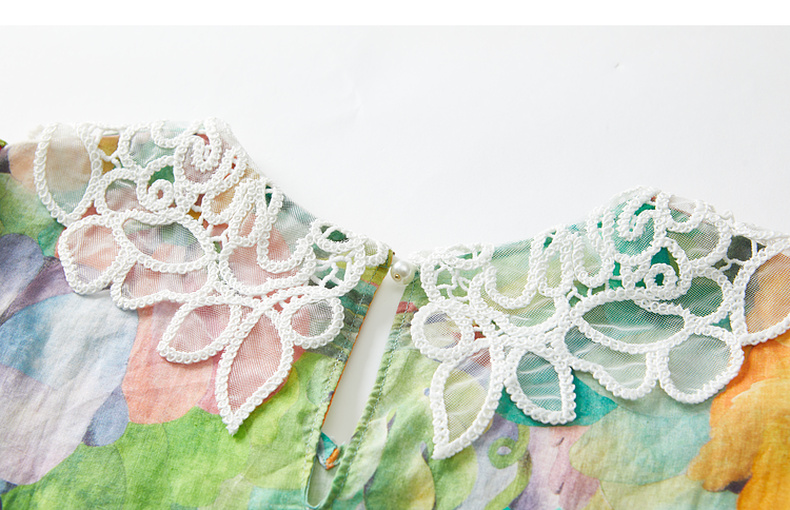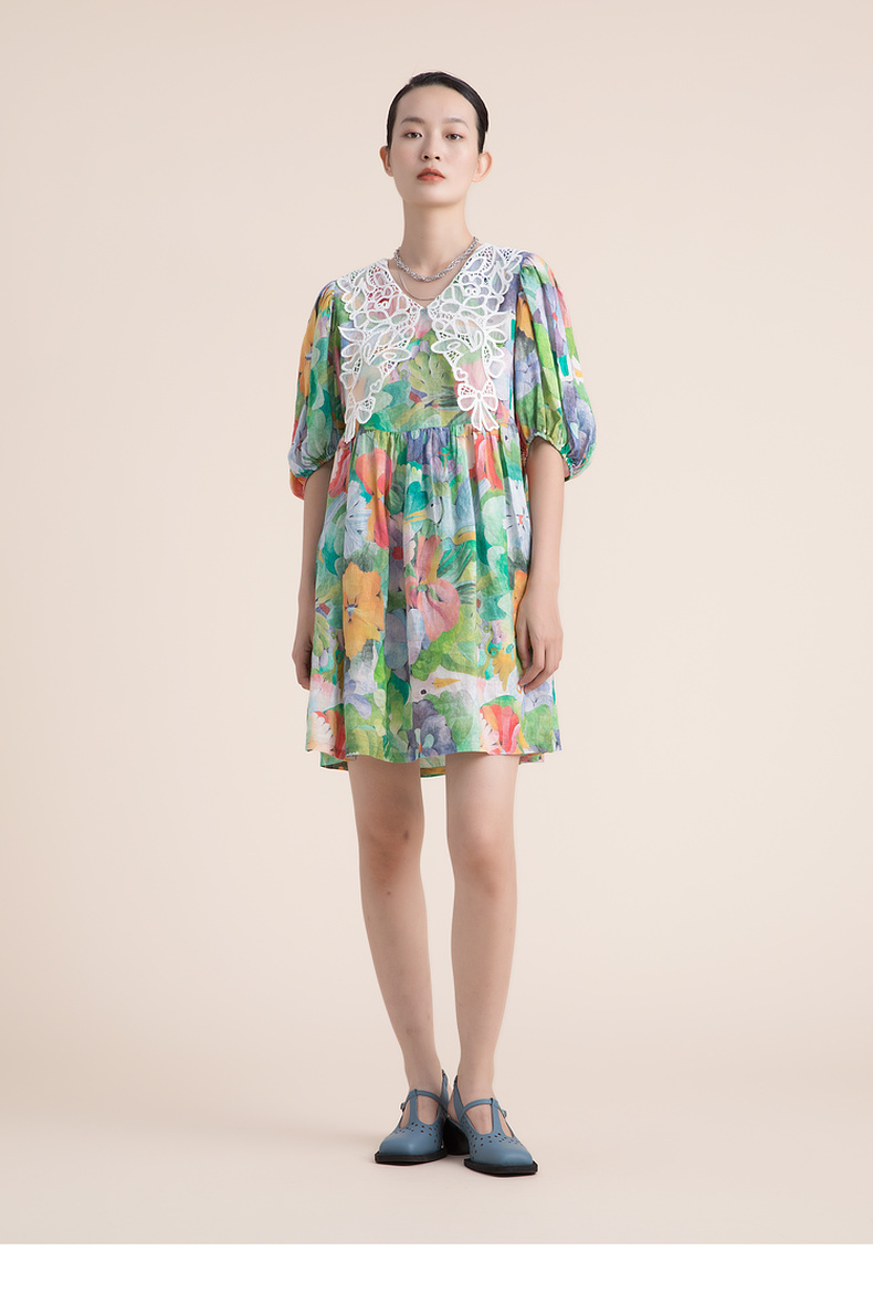 谜底连衣裙2023夏季新款苎麻透气高腰中裙蝴蝶领花裙子235ML6047